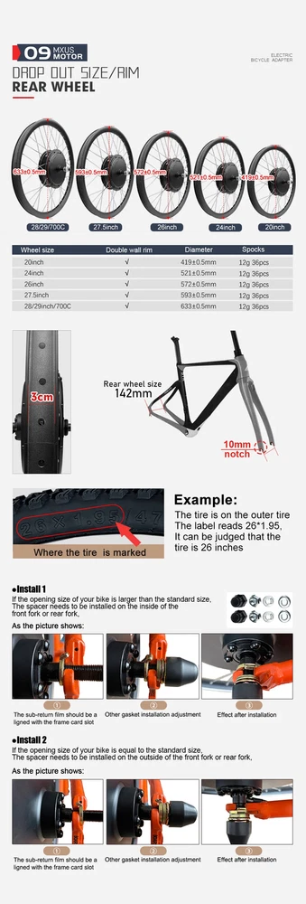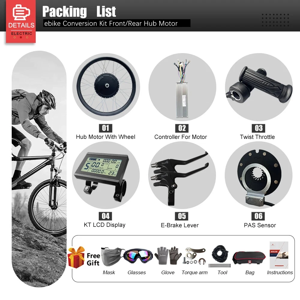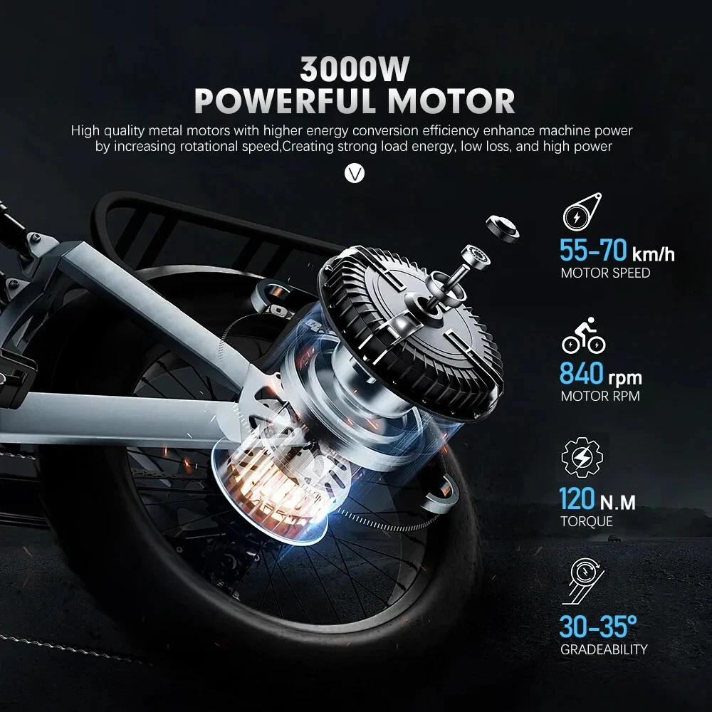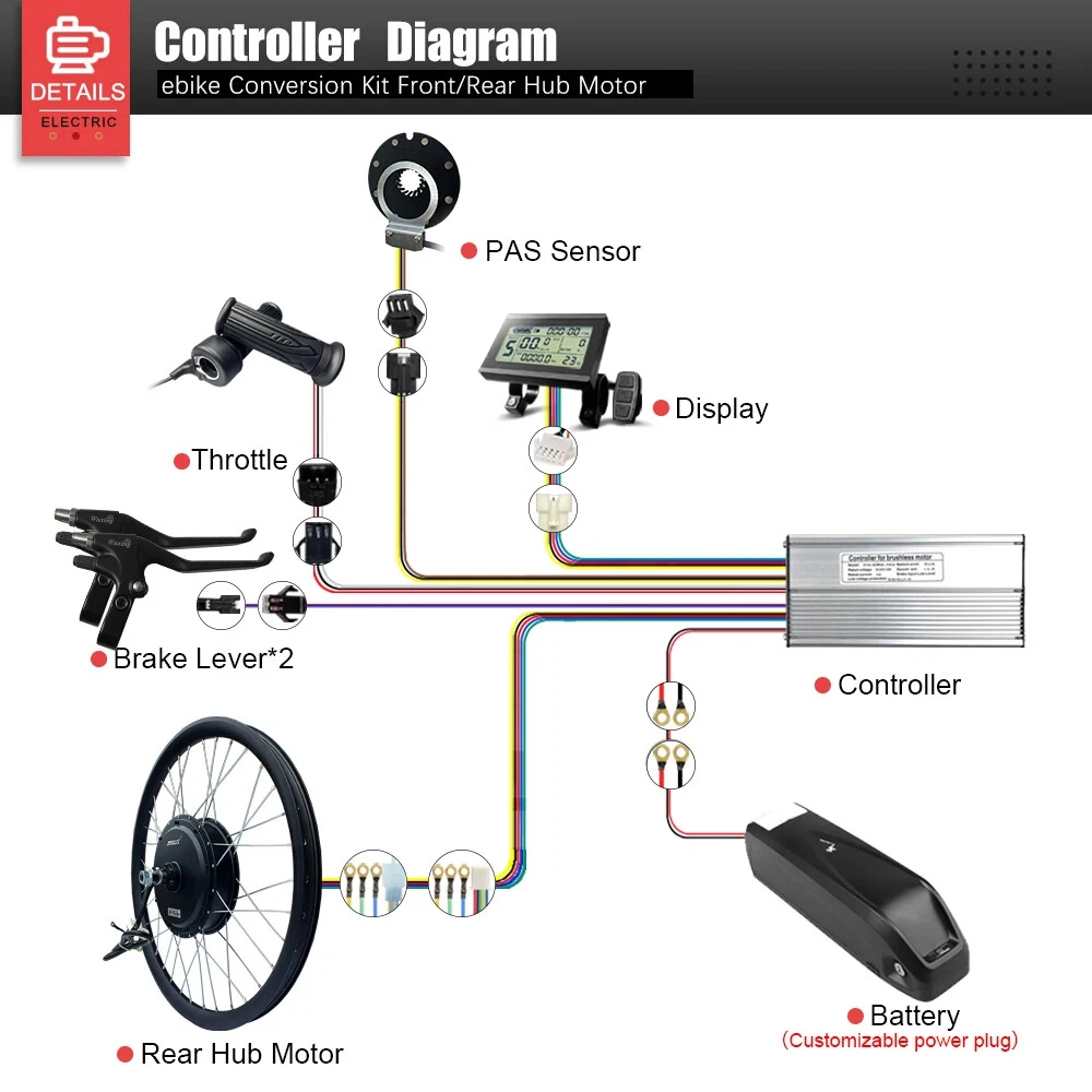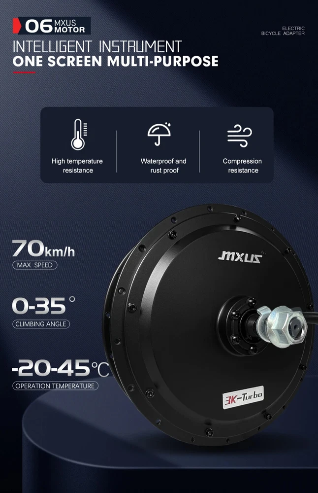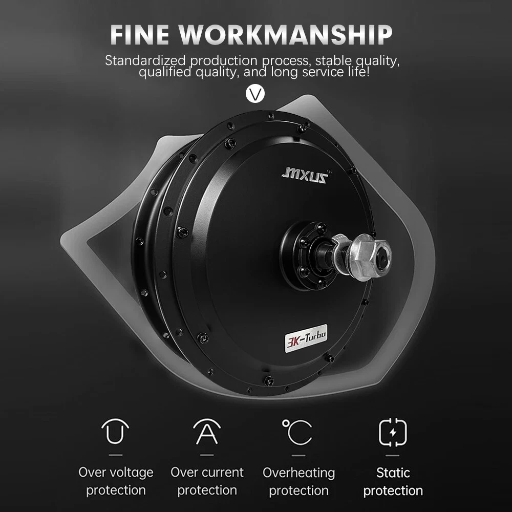 72V 3000W Motor Specification: ●Rated Speed(KM):55-70km/h ●Rear Fork size(mm):142mm ●Speed (Rpm):840rpm ●Torque (N.M):120n.m ●Motor weight (kg): about 8.8kg 50A Controller: Attention: The maximum current that the controller can pass is 50A, please do not exceed it, and we refuse to compensate for damage to the controller due to this ●Dimension: 236* 88 * 42 mm ●Weight: 800g ●Cable length : all about 13-15cm ●Mosfets : 18 mosfets ●Maximum current: 50±1A ●Rated voltage: DC56V-90V ●Speed set: 1-4.2V ●Rated current: 25A ●Brake input : Low-Level ●Low voltage protection: DC56±0.5V Packaging List ●1 PCS * Hub Motor with Rim and Spokes ●1 PCS * Motor Controller ●1 PCS * Display ●1 PCS * Thumb Throttle (We default to ship thumb throttle, it can be changed to twist throttle if you need) ●1 PCS * PAS Sensor ●1 Pair * Brake Levers(We default to shipBrake Levers, it can be changed to Brake Sensors if you need) Gifts: 1 * Controller Bag( not battery)+1*Install cable ties and stretch film+1*Installation Manual