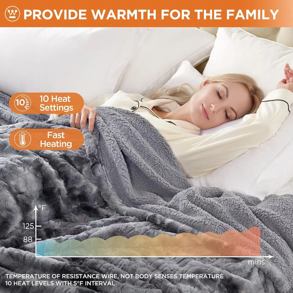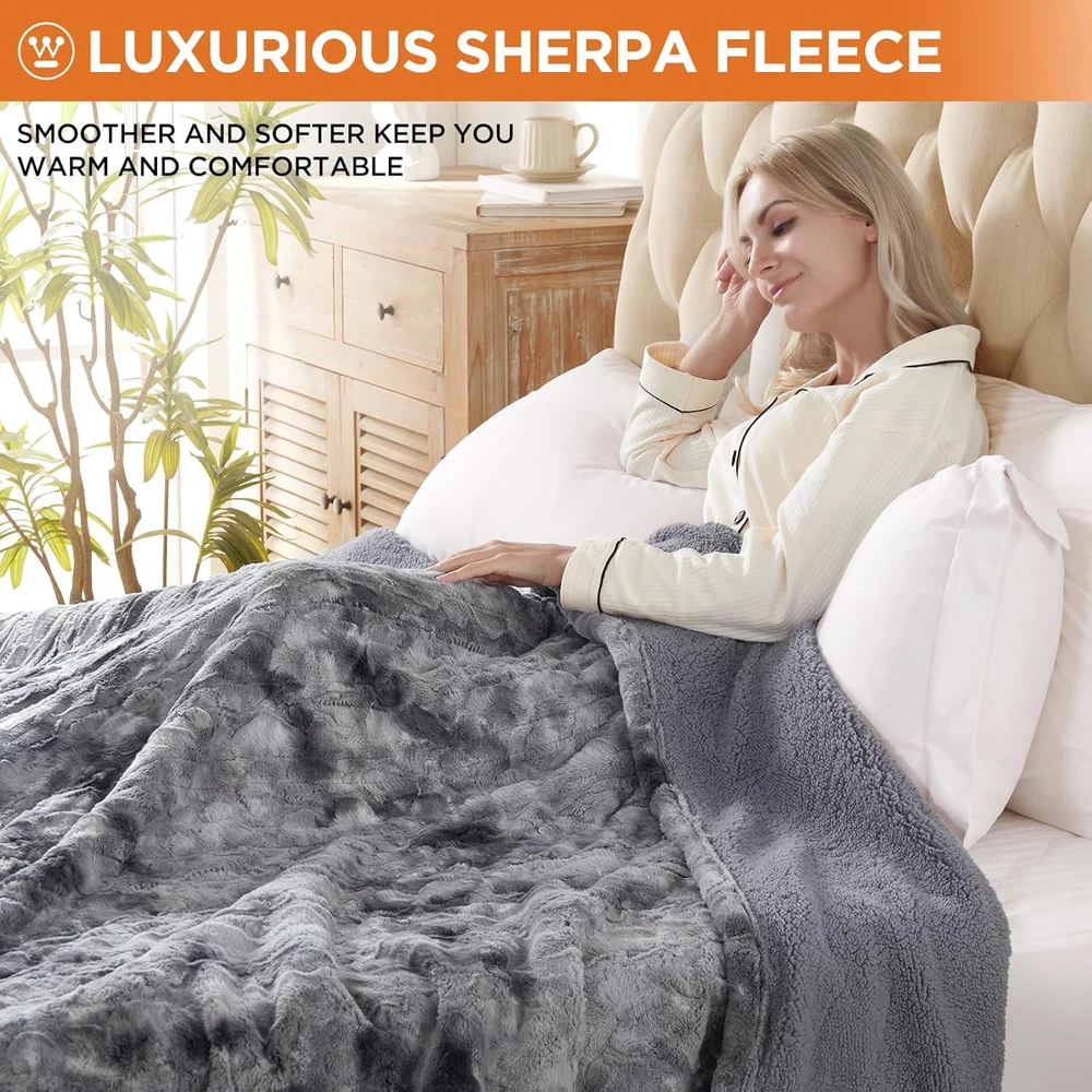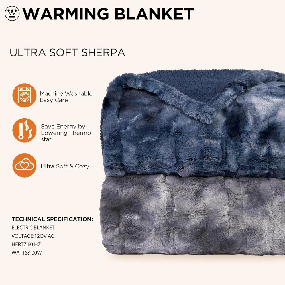 Store New Arrivals Add to Favorite View Feedback Contact Electric Blanket Full, Faux Fur Heated Blanket with 10 Heating Levels & 1-12 Hours Auto Off, Soft Cozy Sherpa Heated Blanket Washable Blanket (80" X 84" Full Size, Grey) Description Fabric Warmth Description Heavyweight Style Modern Number of Items 1 Unit Count 1.0 Count Color Grey Pattern Tie Dye Product Dimensions 80"L x 84"W Material fleece, faux wool, sheepskin wool Fabric Type Faux Fur Item Weight 7.54 pounds Theme Plain Fill Material Faux Fur Age Range (Description) Adult Recommended Uses For Product Napping Seasons Winter Sport Camping Special Feature Automatic,Premium Product Care Instructions Machine Wash Size Full 80" x 84" 【Exquisite tie-dye design】This heated blanket features 260 GSM of premium fleece faux wool on one side and 180 GSM of sheepskin wool on the other side. The material is soft, comfortable, and skin-friendly, providing breathability. With a special dyeing process, this heating blanket becomes the perfect decorative element for your bed, sofa, chair, or couch. It will provide a warm and cozy experience when you are ready to relax. 【Multifunctional controllers】When using our electric blanket, you can flexibly choose 1-12 hours automatic shutdown function according to your needs, which is both safe and energy saving. With 10 temperature Settings that can be controlled between 88°F and 125°F, you can find your most comfortable temperature. In addition, the queen size heated blanket is dual-controlled and can be heated in different zones, independently controlling time and temperature. 【Quick heat-up and memory heating design】 This electric blanket features rapid heating technology, allowing it to quickly reach your desired temperature. Additionally, it has a memory heat design that remembers your temperature settings and maintains them consistently, ensuring you enjoy a personalized and comfortable sleep experience. 【Care instructions】 Our heating blanket is easy to care for. Simply unplug the control and put it in the washing machine. However, please note that it should not be dry cleaned, rinsed, or ironed. When cleaning, make sure the blanket is completely dry before plugging it in. Also, avoid connecting the plug and powering it on when the blanket is wet. 【Safety certifications and quality after-sales service】 Westinghouse electric blankets are ETL and FCC safety certified, ensuring you can use them with confidence. In addition, our products come with warranty service, if you encounter any problems during use, please feel free to . Please read and follow the instructions carefully to avoid damaging the blanket and ensure a comfortable experience. Product Description The video showcases the product in use. The video guides you through product setup. The video compares multiple products. The video shows the product being unpacked. ABOUT US We offer the best prices around on high quality products. Our E-store includes media such as books, movies, music and games while offering electronics, toys, sporting apparel, clothing, tools, general home, garden items and more. SHIPPING We are always working hard to ensure your package arrives as soon as possible. Please understand that some factors like weather, high postal traffic, and the performance of shipping companies are outside of our control. We offer free shipping to the lower 48 states and ship within 2 business days of payment, usually sooner. We do not accept P.O. Boxes. Please provide a physical address. For shipping outside of the continental USA, we only use eBay's Global Shipping Program.The item is shipped to KY and then sent to the rest of the world. International customers are responsible for all duties and taxes. Continue to check out in order to calculate costs for shipping the item to your country. Messages regarding eBay's Global Shipping Program MUST be directed at eBay EXCLUSIVELY. RETURNS We offer a 30-Day Return Policy on items which you are not completely satisfied with. You have the option for a full-refund or an exchange of the item. No returns are available on items shipped outside of the USA. PAYMENT We accept PayPal. CONTACT US This page content is yet to come Please ad us to your favorite seller and visit again later Thank You CUSTOMER SATISFACTION We try our very best to make sure every customer is completely satisfied. If there's a problem, message us! We're happy to help. WE ACCEPT Copyright © 2021 AutoDS. | All Rights Reserved