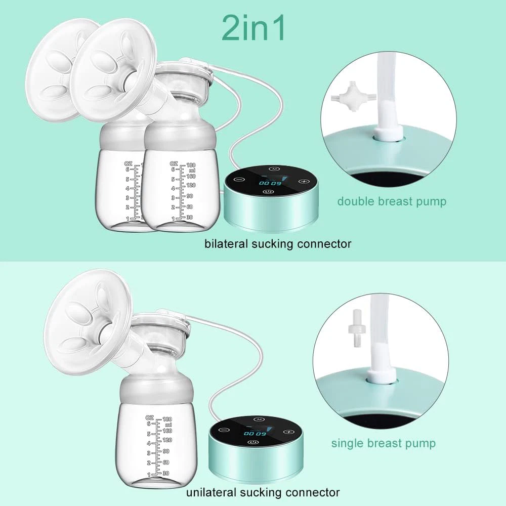 ???3 Modes & 10 Levels & Safe???Automatic breast pumps have 3 modes(Massage, Suction, Bionic), also contains two tubes - Double & Single, give more choices to new mothers. Meet all your needs. ???High Efficiency & Easy to Use???Turn on the electric breast pump and automatically start a gentle pacing mode to stimulate milk flow. It pumps more milk in less time thanks to its 3-phase expression technology.Emovable parts are dishwasher safe. ???Easy to Clean and Compose Double Breast Pumps??? Each component can be flexibly assembled and disassembled. Except for the electrical parts, all other removable parts are dishwasher safe. thanks to its 3-phase expression technology. ???USB Rechargeable Battery Portable Breast Pump???Travel-ready at short time, including a USB charger and built-in lithium battery with large capacity(INPUT: 5V/1A, NOT INCLUDED). A full charge takes about 1.5 hours and can be used 3-4 times. ???3D Soft Massage Cushion???Soft breast cushion massages the areola, and provide a secure seal and snug fit to solve leaking milk.