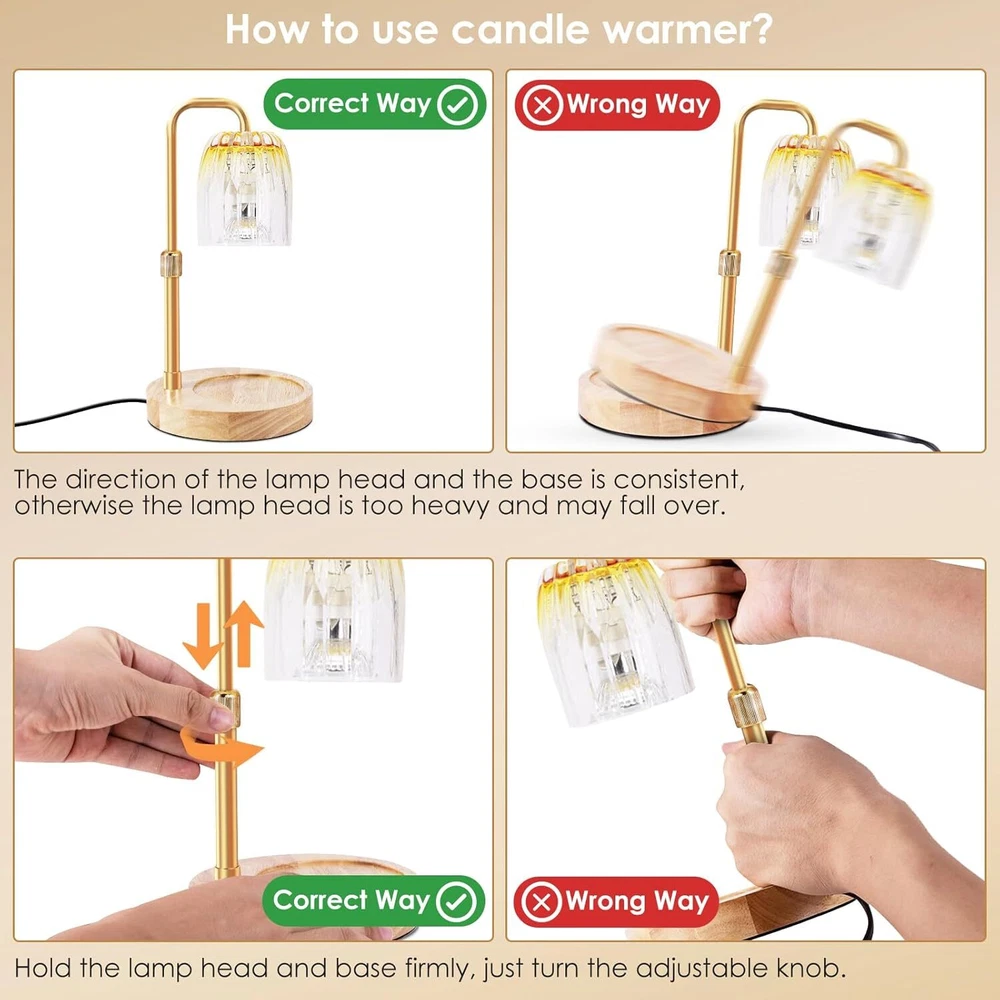 About this item Safety First: The candle warmer uses 50-watt halogen warming bulbs to melt candles with heat energy instead of an open flame, ensuring no smoke and increased safety. Dimmable and Timer Functions: The lamp includes a dimmer for adjusting the brightness and a timer that can be set for 1, 2, or 4 hours, providing convenience and control over the melting process. Versatile Fit: The lamp is designed to accommodate candles of different sizes, up to 6.3 inches in diameter, offering flexibility for various jar candle preferences. Elegant Gift Option: It's an excellent gift for candle enthusiasts, providing an alternative to traditional burning methods, enhancing home decor, and diffusing pleasant fragrances. Easy to Use: The lamp is straightforward to operate and includes a polished finish with a linen shade and metal body, adding a touch of elegance to any room.