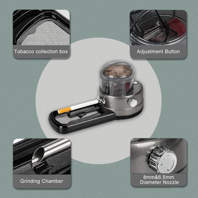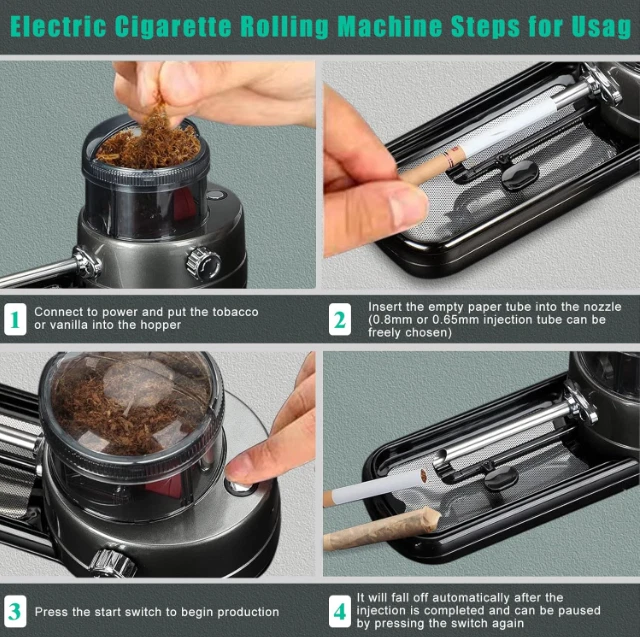 Electric Cigarette Rolling Machine, Portable Tobacco Injector Machine Can Grind US Warehouse - FREE & FAST Shipping in US Product Description: 【High Quality】 The cigarette rolling machine adopts surrounding material and high-quality stainless steel blades, which is safer and more durable, and cuts tobacco evenly with high efficiency; with the characteristics of high power, stability and durability, the machine will not heat or burn the wires 【Easy to use】 Electric cigarette roller machine, suitable for 108mm cigarette paper, 8mm or 6.5mm tubes, just put the tobacco or herbs to be injected into the hopper, start grinding and injecting, cigarettes can be rolled in 10 seconds, save Time and energy, free your hands 【Humanized design】 Electric cigarette syringe, you can adjust the hardness of the cigarette by rotating the button on the machine. There are four levels that can be adjusted. The cigarette rolling machine has a scraper and a filter screen, which is easy to filter fine powder. It is equipped with a tobacco slot that can The remaining tobacco is poured back into the machine and you don't have to worry about spilling it on your table while rolling cigarettes. The smoke roller is equipped with 6 anti-slip pads to ensure comfort and stability during use 【Best Gift】 Electric cigarette roller with power adapter, cleaning brush, screwdriver, scraper, filter, cone loader, easy to use and simple to operate, perfect gift for any smoking lover, also for Father's Day, The best gift for Valentine's Day, Christmas, and birthday parties Feedback: 1.Any question for your order, please contact us in time, we will reply to you within 24 hours and give you a satisfactory answer. 2.If you are satisfied with our products and services, hope to take up your a little precious time to leave feedback reviews for our products.Thanks! 3.Your satisfaction is our effort. Welcome to order again! Have a great day! Our Policy: 100% Satisfaction Guarantee 20% of restocking fee will be charged for return item