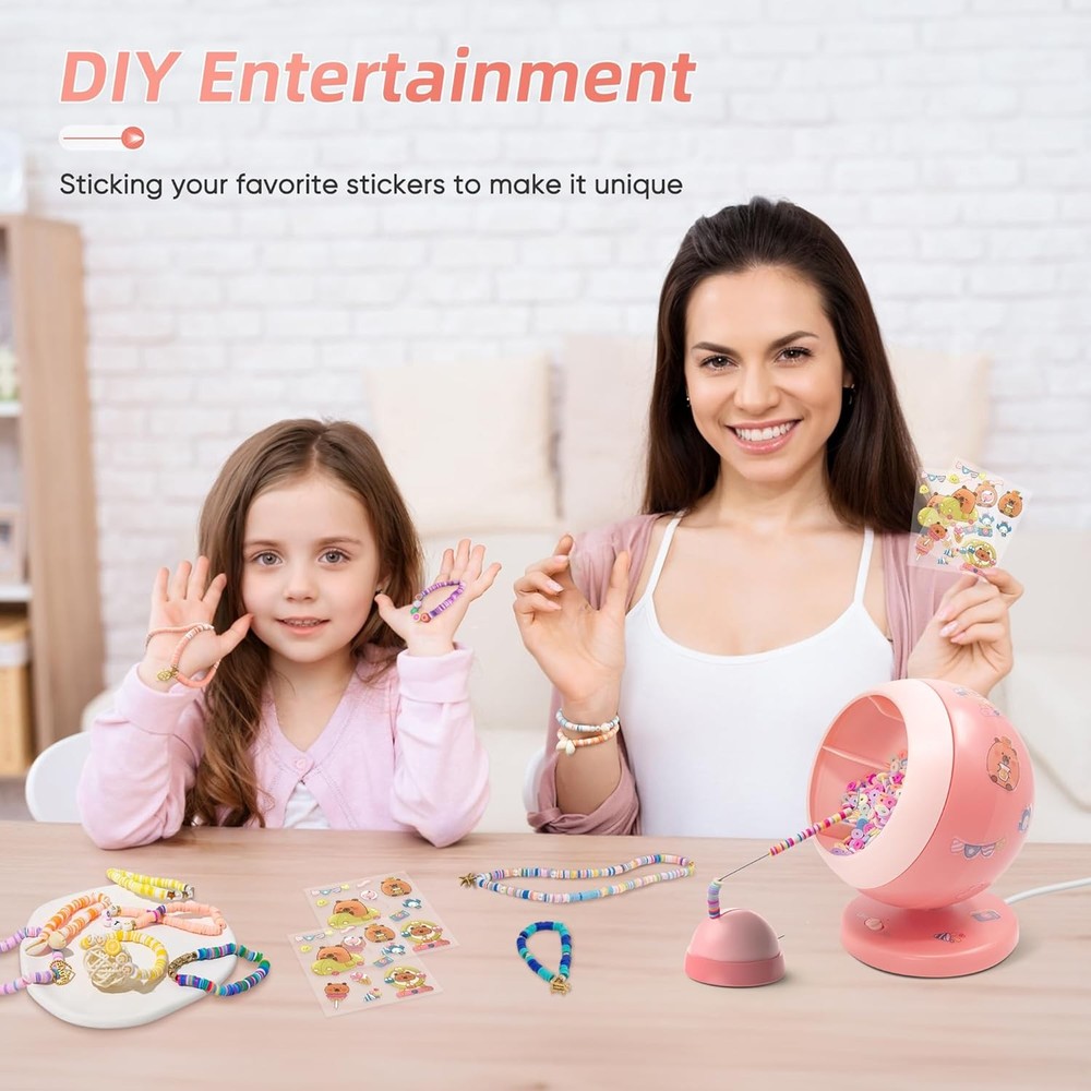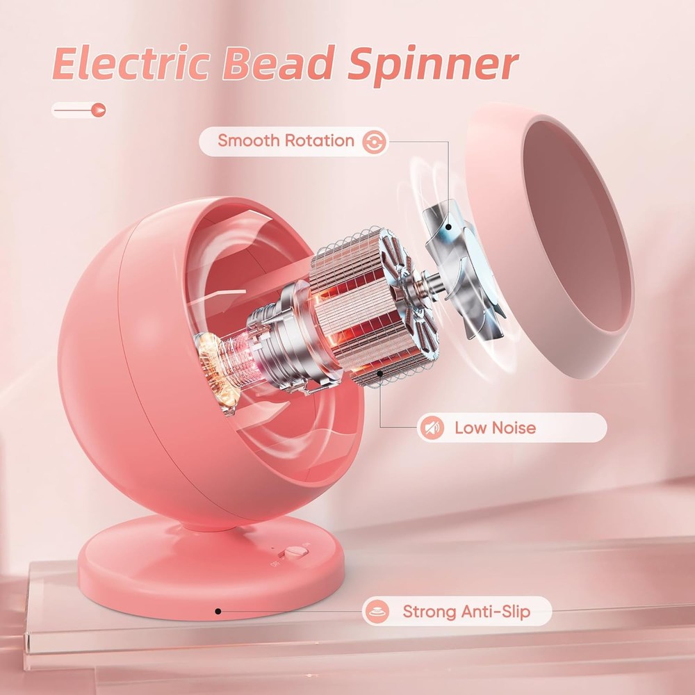 Electric Bead Spinner, Clay Bead Spinner for Jewelry Making, Bracelet Spinner and Necklace Making Machine with 2PCS Needles, DIY Set Gift(Beads Not Included) 【Fast and Efficient Beading】 The electric bead spinner is designed for flat clay beads to improve the efficiency of beading.Compared with manual production, the efficiency of bead spinning is increased by 50%. Thanks to the high motor efficiency, the bracelet will be made in less than 2 minutes 【Multi-Functional Compatibility】 Upgrade the motor, so that the ball bowl noise is low, more stable rotation. The divider bar in the bowl ensures smooth rotation and successful bead placement. The smaller bowl opening prevents the beads from flying out during use 【Beginner Friendly】 Whether you are a beginner or an experienced user, clay bead spinner can enhance your beading experience and help you create beautiful jewelry 【Easy to Use and Fun】fill the bowl with your favorite clay beads 1/3 of the way, then thread through the needle, secure it in the holder slot, activate the switch, and insert the needle into the bowl. Adjust the position of the needle until the bead slides smoothly onto the needle 【Creative Gift Ideas】 -Aenebe bead spinner is a unique gift for girls and craft lovers, making it an ideal birthday gift. Because of its lightweight and compact size, it is more convenient to use or carry, suitable for outdoor or group activities,Package List: Clay bead spinner x1, Needle base x1,U-shape needles x2, Exquisite gift box x1,Cartoon Stickers x2 Product Description High Hardness and Toughness Bead Needles Upgrade the motor, so that the ball bowl noise is low, more stable rotation. The divider bar in the bowl ensures smooth rotation and successful bead placement. The smaller bowl opening prevents the beads from flying out during use 4.3 inches x 4.5 inches x 5.6 inches. Weight: 1.01 lb Item model number BS002 Item dimensions L x W x H 4.5 x 4.3 x 5.6 inches Age Range (Description) 3+ Color Peach Pink Bead Spinner Material Metal Country of Origin China Style Modern Item Weight 1.01 pounds Theme Halloween Model Name Electric Bead Spinner Seasons All Seasons Art Craft Kit Type Beading Kit Included Components Clay bead spinner x1, Needle base x1,U-shape needles x2, Exquisite gift box x1,Cartoon Stickers x2 Special Feature Designed specifically for clay beads, hands-free operation Product Dimensions 4.5 x 4.3 x 5.6 inches