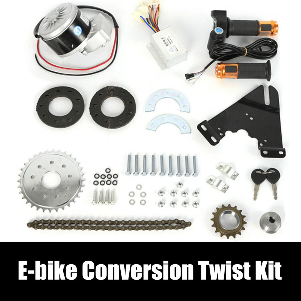 Important NOTE: This item is for the bike that uses the hub diameter less than 36mm. This item doesn't include battery or charger. This is our newest kit for electric common bike, this kit mounts the sprocket on the wheel spokes, so it fits most of bicycle wheel. Motor use freewheel so when wheel rotating, the motor will not rotate, just like a normal bike, this can reduce resistance. Note: During installation, the two transmission wheels need to be adjusted to a straight line. The deviation of flywheel angle will tilt the flywheel stress point to one side, causing flywheel damage. The flywheel angle is generally adjusted through the mounting bracket of the motor. Electric Conversion Twist Kit for Bike Left Chain Drive Custom 250W 24V Important NOTE: This item is for the bike that uses the hub diameter less than 36mm. This item doesn't include battery or charger. This is our newest kit for electric common bike, this kit mounts the sprocket on the wheel spokes, so it fits most of bicycle wheel. Motor use freewheel so when wheel rotating, the motor will not rotate, just like a normal bike, this can reduce resistance. The Twist Kit Includes: 1. 1x 250W 24V brush motor with freewheel 2. 1x Chain 3. 1x Customized sprocket & components 4. 1x Motor controller 5. 1x Mounting plate + bolts 6. 1x Twist throttle (with battery indicator & key switch) Note: During installation, the two transmission wheels need to be adjusted to a straight line. The deviation of flywheel angle will tilt the flywheel stress point to one side, causing flywheel damage. The flywheel angle is generally adjusted through the mounting bracket of the motor. During installation, it is necessary to adjust the angle to ensure that the front and rear wheels are in a straight line. If the angle is not correct, it can be adjusted by adding or removing shims under the mounting plate at the axle position. If the front and rear wheels are not in a straight line, the chain will tilt to one side. This causes the force to tilt to one side all the time when the flywheel rotates, making it easy for the flywheel to be damaged . Payment Delivery details Terms of sales About us Contact us Payment We accept ebay payment 。 Fees such as import duties, taxes are not included in the item price or shipping costs. These charges are the buyer's responsibility. Delivery details Shipping: 2-9 working days to: USA Terms of sales We maintain high standards of excellence and strive for hundred percent customer satisfaction. Feedback is very important to us. We hope that you contact us immediately before you give neutral or negative feedback, so that we can address your concerns. It is impossible to address issues if we do not know about them! About us Your satis faction is our ultimate goal. We work hard to earn your trust and future business. Our certified technicians have tested each item before shipping. The unit comes with 1 year limited warranty on all manufacturing defects. a) If you receive a defective item, you may return it or ask for a discount. Please contact us within 14 days after you receive the package. b) What you returned must be intact and in its original packaging as re? u. Customer is responsible for shipping costs of the returned item. c) We will cover the cost of shipping back t with the shipping rate indicated in the registration page. We will send you a new unit or refund the full payment you paid. Thank you. Contact us Business Hour Business Hour: Monday To Friday: 8:30 AM to 5:00 PM (Beijing China time) Due to time zones, our reply to your questions may not be immediately. But within above working time, we will reply your email within 24 hours. If it's non-workdays, please kindly be patient and wait till Monday. Please contact us with ebay message. Please feel free to contact us if you have any questions. Monday To Friday: 8:30 AM to 5:00 PM (Beijing China time) Due to time zones, our reply to your questions may not be immediately. But within above working time, we will reply your email within 24 hours. If it's non-workdays, please kindly be patient and wait till Monday. Please contact us with ebay message. Please feel free to contact us if you have any questions. feature1 durable quality *Feature* good quality, durable Color Black & White Part Type E-Bike Conversion Kit Voltage 24V Compatible Bike Type Common Bike Note not ship to Canarias Brand Unbranded MPN Does Not Apply Power 250W Compatible Brand / UPC does not apply On Feb 6, 2025 at 22:26:58 PST, seller added the following information: