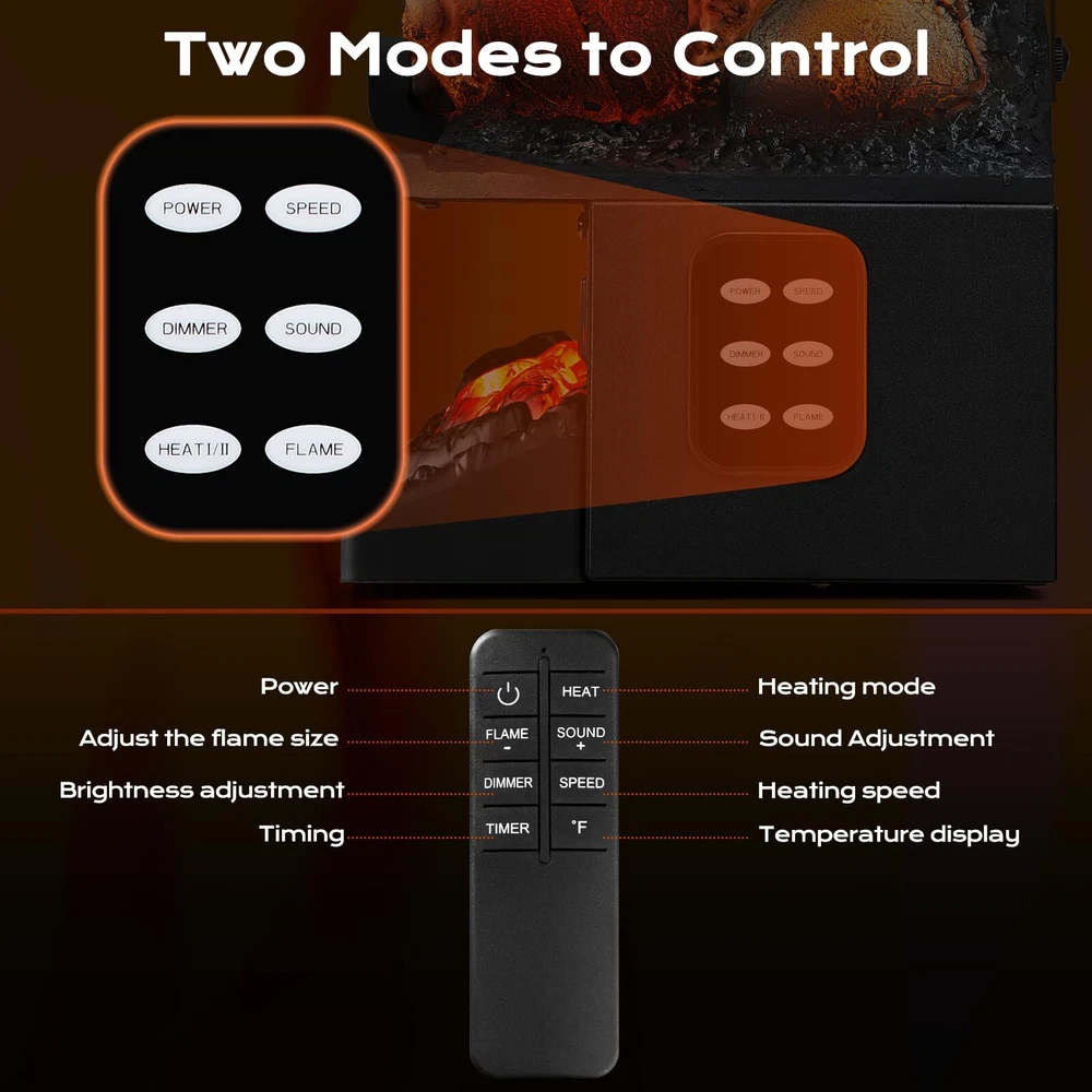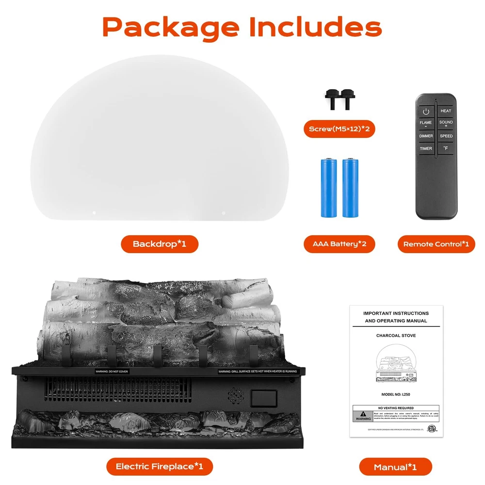 【5 Flame brightness and Speed, 3 Music Sound】- Electric Fireplace 3D Log Heater, adjustable 1-5 Level flame speeds create a warm atmosphere, adjustable 3 music sounds: birds chirping, waves, charcoal burning, to help you enjoy a similar real wood burning and comfortable music environment. 【30s Fast Heating, 2 Heating Modes】- Our fireplace insert is designed with 2 modes: 750W(Warm) and 1500W(Heating), providing comfortable temperatures through electric heating wires that project infrared heat up to 10 feet and distribute warm air throughout the room, fireplace heaters are certified by ETL and overheat protection to avoid excessive temperatures. 【Upgraded Design & Easy to Use】- Compared with other electric fireplaces, this fireplace heater is made of glowing resin-cast logs and embers, and is equipped with a simple operation panel and remote control, and the soft flame effect of the backdrop is added at the back to enjoy a better four seasons. 【Green Smokeless and Tasteless Design】- This is a cost-effective artificial fireplace that does not have to deal with smoke and chimney sweeping, the flame rises and flickers like a birch burning flame, there is no confusing smoke and smell, and the 1500W electric fireplace brings precise district heating and decoration to your room. 【Overheat Protection and Customer Service】- This electric heater will shut off automatically when it gets too hot. And is committed to provide customer with premium products and thoughtful service, so please ask for us help immediately if you have any questions about our products, we will do our best to help you resolve the issues.