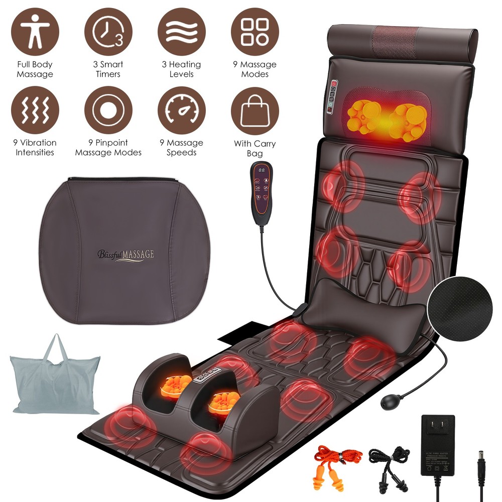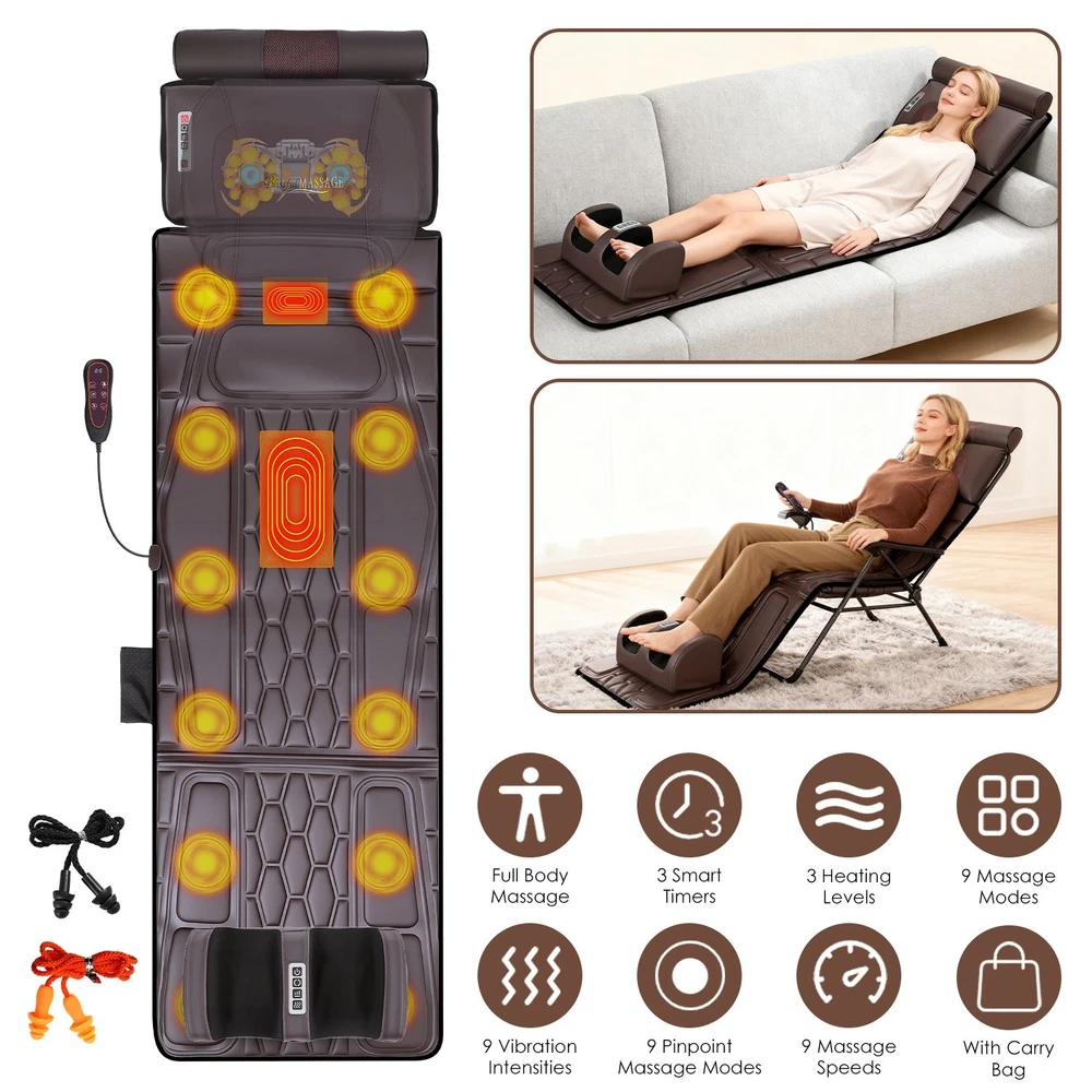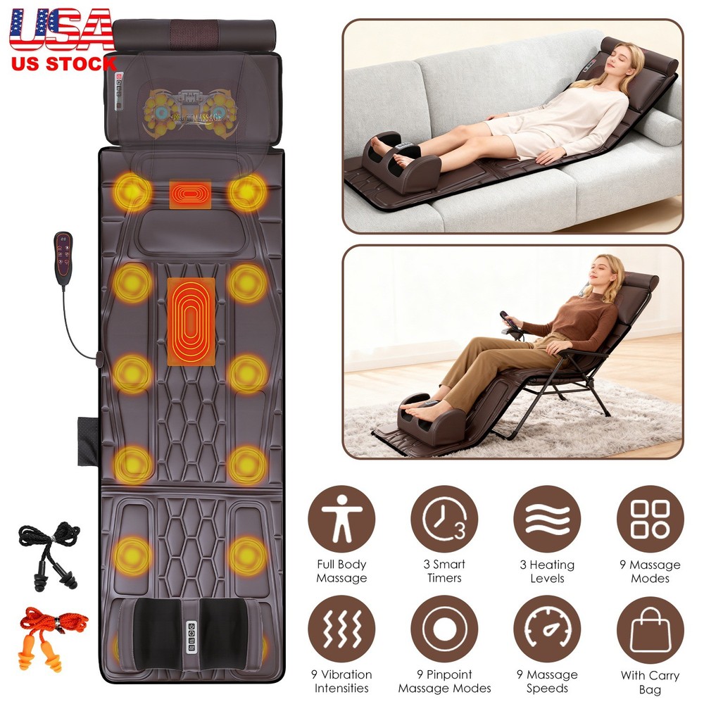 Full Body Massage Mat Electric Heating Vibration Shiatsu Neck Back Foot Massage