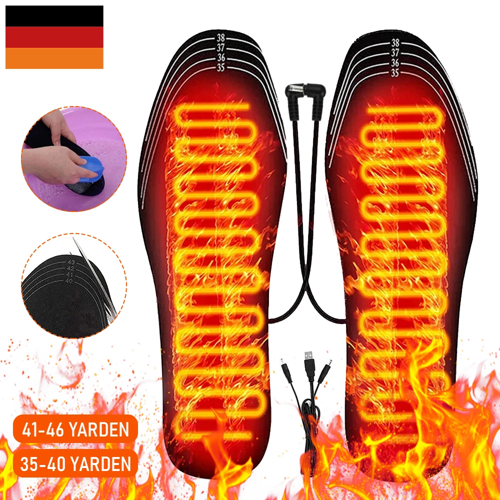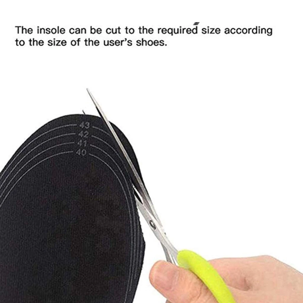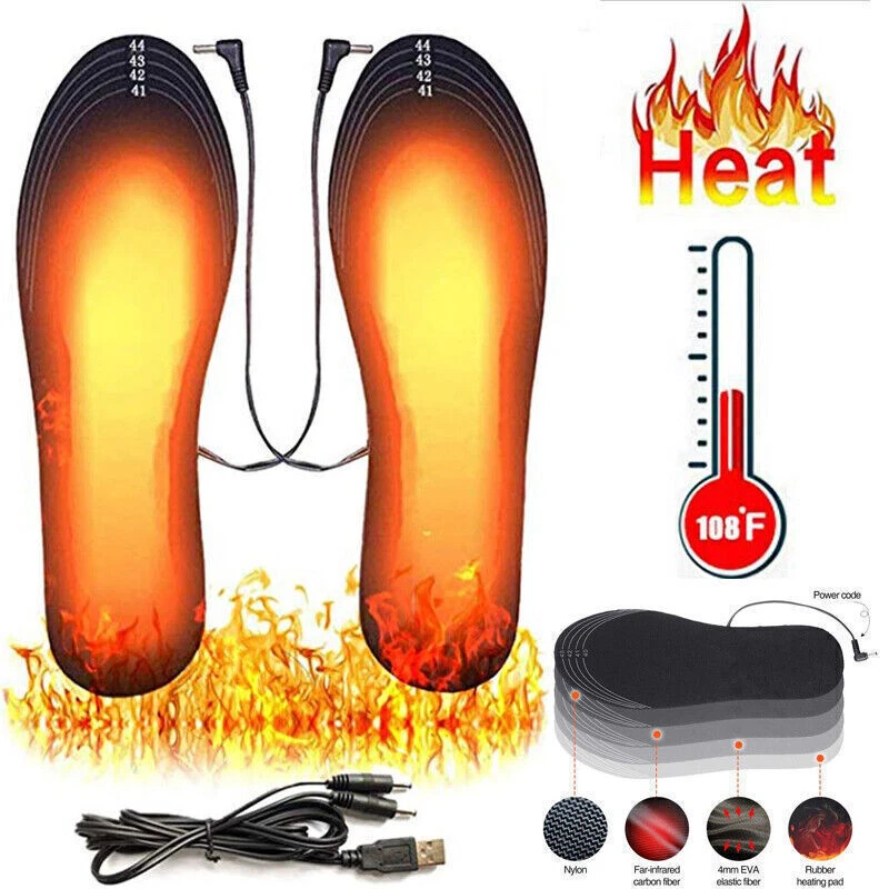 Specification: Insole material: EVA elastic fiber Heating material: far infrared carbon fiber Heating temperature: 40 50 -50°C Output: 5V/2A USB heated insoles-These heated insoles use new heating technology, made of comfortable EVA elastic fiber, have good cushioning properties, lightweight heating surface and even heat distribution The insoles made of elastic EVA fiber sole material + far infrared carbon fiber heating material keeps your feet comfortable and warm. Excellent slip resistance and high temperature resistance, very suitable for various outdoor activities The insole can be customized according to your shoe size. The shoe size range is marked on the insole, which is convenient for do-it-yourselfers. Can be washed directly without affecting the use effect (not machine washable). Reminder: Please dry thoroughly before use. When connecting to the USB power supply, the USB port should be kept away from water. Do not soak in water for a long time. Payment Delivery details About Taxes About us Contact us Payment Payment is managed by eBay. We will ship to your eBay address. Please make sure your address setting is correct before checkout. Delivery details WORLDWIDE SHIPPING. (Except some countries and APO/FPO) Orders processed timely after the payment verification. The images shown are not the actual item and are for your reference only. SERVICE TRANSIT TIME is provided by the carrier and excludes weekends and holidays. Transit times may vary, particularly during the holiday season. About Taxes For all orders, please note that: Taxes and charges are not included in the item price or shipping charges. Please check with your country's customs office to determine what these additional costs will be prior to bidding/buying. About us We are committed to provide excellent service for all buyers. Welcome to our eBay store:) Contact us Our Working Time (Beijing): 9:00 am ~ 6:00 pm (Monday~Friday) If the item is defective or taking longer than usual to reach you, please do not leave us negative feedback. Send us a message through eBay and we will resolve the issue promptly. Thanks for your support and understanding! If you have any questions, please contact us via ebay mail, we will reply you on the working day in China. And there will be no reply as we are out of office during weekend, we will reply on Monday. Because the time zone between the seller and the buyer is different, please be patient and wait for your understanding. We will be happy to serve you.