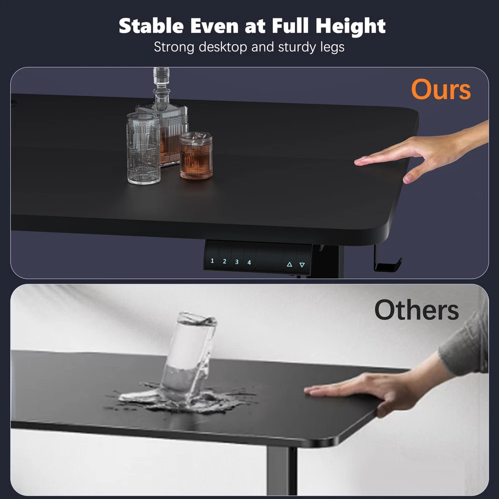 【Rock-solid Construction】--This standing desk with an industrial-grade sturdy alloy steel frame combined with a durable desktop allows for a 178 lbs weight capacity , ensure stability and durability for long-lasting usage. Even at full height, electric standing desk can eliminated any distractions from wobbling. 【Adjustable Standing Desk】-- Effortlessly transition from sitting to standing (28.35" to 46.46")with easy touch of button .standing desk adjustable height with 4 lockable wheels, which makes your office desk moves eaily.The reliable motor operates quietly (under 45 dB). 【Memory Height Sit Stand Desk】-- The digital display allows you to preset 3 heights, meet different height of your family mumbers. Encounters obstacles when lifting, the stand up desk will move in the opposite to avoid damage your family and your pets. 【Spacious an Safe Workspace】--This adjustable desk with 48” x 24” eco-friendly desktop provides you with a spacious workspace. Safe and Low-VOC Materials,insert healthy movement into your day. 【Easy Assembly】-- This standing desk has detailed installation manual and video.All holes are pre-drilled for quick 30-minute setup. 3-Year Warranty cover- any questions about home office desks, feel free to contact us.