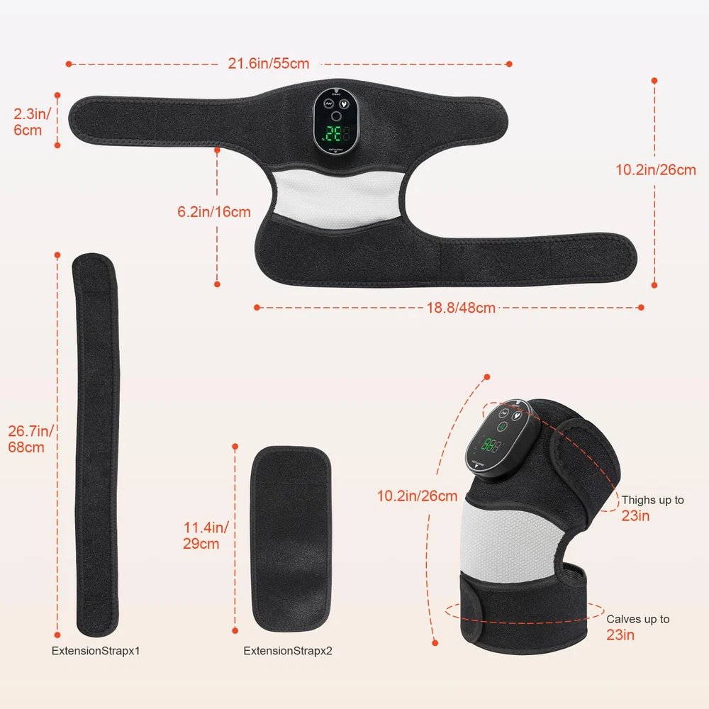 Upgraded Touch Controller: The new digital display is easy to use. Long press the button for 3 seconds to turn the massager on/off. Secure the heating pad to your knee, elbow, or shoulder. Touch the vibration/temperature button to activate the function, and touch again to adjust intensity. The on/off button locks the settings to prevent accidental changes. Personalized Massage: The heated massager features two vibration motors and three heating levels (Low: 113℉/45℃ to 131℉/55℃, Medium: 132.8℉/56℃ to 149℉/65℃, High: 150.8℉/66℃ to 167℉/75℃). With three vibration modes, it offers great relaxation and comfort for your knee, elbow, and shoulder, boosting circulation and relieving cramps. Versatile 3-in-1 Design: Ergonomically designed to fit your joints, this massager ensures comfort and stability during use. The 3-in-1 design allows it to be used not just for knees but also for shoulders and elbows with the included straps. Enjoy heating and massage for your shoulder, elbow, and knee all in one device. Cordless Convenience & Long Battery Life: Say goodbye to tangled wires! With a built-in 3000mAh battery and magnetic control panel, this arthritis knee brace offers wireless operation. Charge the control panel with a Type-C cable, attach it to the brace, and use it anywhere. Perfect for work, study, sleep, or chores, it suits both elderly and young users. Practical Gift Idea with Warranty: An excellent device for men and women with arthritis, adjustable to fit different body sizes. Ideal as a Christmas, Thanksgiving, Father’s Day, Mother’s Day, or everyday gift for mom, dad, family, friends, teachers, and loved ones. Show your care and appreciation. The massager comes with a one-year warranty for free replacement if damaged under normal use. Feel free to consult us with any questions.