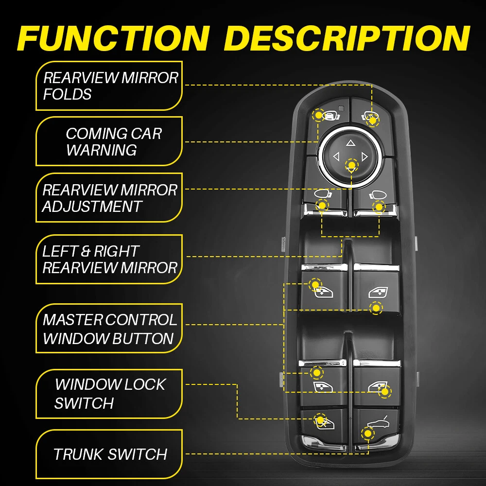 Fit for: 2011-2018 Porsche Cayenn Sport Utility 2015-2018 Porsche Macan Sport Utility 2011-2016 Porsche Panamera Hatchback NOTE:13pin suitable for lower version cars, higher version has 15 PINs Specifications OE Number: 7PP959858H DML, 7PP959858K DML,7PP959858RDML,7PP959858MDML 7PP959858AEDML Number of Pins: 15Pins Placement on Vehicle: Front left Features: *Stable Performance Better stability with longer service life. *Ideal Accessory This window switch fits, functions and matches the appearance of the old one for a perfect replacement. *Direct Replacement Direct replacement without other tools. Electric Master Power Window Control Switch For Porsche Panamera Cayenne Macan S Fit for: 2011-2018 Porsche Cayenn Sport Utility 2015-2018 Porsche Macan Sport Utility 2011-2016 Porsche Panamera Hatchback NOTE:13pin suitable for lower version cars, higher version has 15 PINs Specifications OE Number: 7PP959858H DML, 7PP959858K DML,7PP959858RDML,7PP959858MDML 7PP959858AEDML Number of Pins: 15Pins Placement on Vehicle: Front left Features: *Stable Performance Better stability with longer service life. *Ideal Accessory This window switch fits, functions and matches the appearance of the old one for a perfect replacement. *Direct Replacement Direct replacement without other tools. *Quality Testing It has undergone simulation and endurance testing to ensure proper fit and performance. *Note Please ensure that the parts, connectors and OE number are the same as your old products before ordering to avoid the wrong purchase. Packaging Include: Window switch*1 Item Specifics Brand AUXITO To Control Window Type Window switch Placement on Vehicle Front Left Features Durable Manufacturer Part Number 01BSJ01104 OE/OEM Part Number 7PP959858H DML, 7PP959858K DML Color Black Vintage Car Part No Country/Region of Manufacture United States Performance Part Yes Manufacturer Warranty 3 Year Interchange Part Number 7PP959858RDML,7PP959858MDML Superseded Part Number 7PP959858AEDML Terminal Quantity 15 FAQ ♥ If you have a decoding problem or any other problems, please contact us first, we will help you with it. We will reply you within 24 hours in working days. I'm a new seller, thanks a lot for your trust and convince! I will serve you with all my heart. ♥ Q1: Will this bulb fit my vehicle? A: We can match almost any vehicle to one of our bulb sizes. eBay only lets us include some vehicle fitments per listing, but if your vehicle does not show up on the compatibility table at the top of our listings, welcome you to contact us for free consulation before purchasing a product. Q2: My item has not arrived, what's taking so long? A: Sometimes items take longer than expected, especially if it’s going far or to rural area. Check with your post office to see if your item has been held up. Sometimes Royal Mail will not update a tracking number until it has arrived at its destination. If your item still don't arrive after a few days, let us know so we can double check for you and help solve it asap. Q3: My bulbs won't fit, help! A: Special bulb holder may be required. See if you can take the holder from the stock bulb. If not, let us know. The bulb size may be wrong, double check the item you received with the item you ordered. Do you have an aftermarket lighting housing? These may not be perfectly fitted for aftermarket bulbs and will require some manual modifications. Q4: Neither side lighting up? Both sides flicker, hyper flash, or work inconsistantly. A:Check the light fuses, and then check the ballast plugs to insure correct installation. If this doesn't work, there may be a voltage problem with the vehicle. You probably just need a relay or capacitor. Even though some bulbs are builtin resistors, they may still need a decoder. Payment (1). We gladly accepts payment via PayPal, We will ship your item(s) within 24 hours. (2). Before payment, please keep the consistency of Paypal address and ebay address. (3). Quantity orders are welcome! Returns (1). We offer 60 days free return policy. Please contact us within 60 days from the date you receive your order if you have any issues with the product or want return. Refund will be send after we got your resend package. (2). All returned items should be in the original packaging , return tracking information should be provided . Contact us (1).Negative feedback will not help resolve any problems you have, please contact us via eBay messages before leaving negative feedback , our customer service will make best effort to help you with the issues. (2).We maintain high standards of excellenceand strive for 100% customer satisfaction! Feedback is very important to us. We request that you contact us immediately before you give us neutral or negative feedback, so that we can satisfactorily address your concerns. About us We're professional in car and motorcycle accessories, especially in LED bulbs. We have our own factory and R&D team. Our belief is to sell top quality items that fit your car and serve you with our heart. Anything please feel free to contact us! Our customer service is very responsibility. Come and follow us! DESCRIPTION PAYMENT SHIPPING RETURN POLICY CONTACT US Shop Category Store Home Other Hot Item 21" Black Stainless Antenna Mast Power Radio AM/FM for TOYOTA TACOMA 1995-2016 S USD 13.99 2PCS O2 Oxygen Sensor Up+Downstream For 08-14 Chevrolet Equinox/GMC Terrain 2.4L USD 29.99 5/16" Marine Outboard Boat Motor Fuel Gas Hose Line Assembly with Primer Bulb US USD 20.99 AUXITO 7440 7443 7444 LED Backup Reverse Back Up Light Bulbs Super Bright White USD 12.59 BLACK ROOF TOP TRIM MOLDINGS FOR 2006 2007 2008 2009 2010 2011 2012 TOYOTA YARIS USD 17.99 New List Item For 2018-2024 Chevy Equinox Gloss Black Window Door Pillar Post Trims 2019 2020 USD 16.99 For Toyota Lexus Black Leather Walnut Wood Gear Shift Knob Stick Shifter Lever S USD 15.99 AUXITO 1157 LED Tail Brake Stop Reverse Parking Signal Light Bulb Super White USD 13.99 Power Window Switch for Toyota Tundra 2