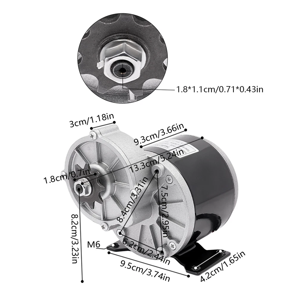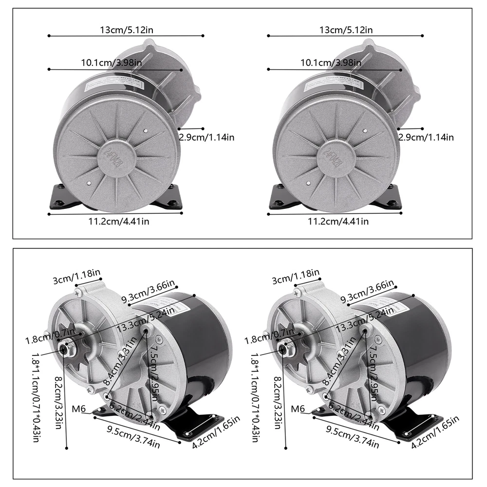 Build to Last: This product is mainly made of high-quality aluminum, which is durable and can be used safely for a long time. Excellent Performance: The 350W pure copper brushed motor has a high reduction ratio of 9.78:1 and high efficiency to provide greater speed reduction. Thoughtful Design: This product can be changed to rotate clockwise or counterclockwise by reversing the motor's power cord to increase flexibility and meet different needs. High Load Capacity: This product produces greater low-end torque and can support a heavy load of 220.46-330.69 pounds, providing a more powerful operation. Smooth Operation: The pure copper brushed motor with low noise and a sturdy base makes the product operate more smoothly and quietly. Electric Motor, Gear Reduction Electric Motor, Geared Reduction Motor 2750RPM Electric Motor, Gear Reduction Electric Motor, Geared Reduction Motor Description Our 24V gear reduction electric motor can help you achieve electrification of your electric bicycle. It adopts a sturdy aluminum shell and a 350W high-efficiency pure copper motor, which has advantages such as fast heat dissipation, long service life, and durability. It adopts gear transmission, reducing the speed of the high-speed motor, achieving smooth starting and low-speed riding of the electric bicycle, which can bring users a more convenient and comfortable riding experience. Key Features Build to Last: This product is mainly made of high-quality aluminum, which is durable and can be used safely for a long time. Excellent Performance: The 350W pure copper brushed motor has a high reduction ratio of 9.78:1 and high efficiency to provide greater speed reduction. Thoughtful Design: This product can be changed to rotate clockwise or counterclockwise by reversing the motor's power cord to increase flexibility and meet different needs. High Load Capacity: This product produces greater low-end torque and can support a heavy load of 220.46-330.69 pounds, providing a more powerful operation. Smooth Operation: The pure copper brushed motor with low noise and a sturdy base makes the product operate more smoothly and quietly. Compact and Lightweight: The compact and lightweight design makes it suitable for situations with limited space. Simple Installation: An integrated structure and pre-drilled holes allow you to complete the installation in a short time. Guaranteed Customer Service: Our friendly customer service team would be happy to solve your issues with our product. If you have any issues, feel free to contact us. Details Smooth Edges: The smooth and burr-free edges enhance the beauty of the product and better care for your skin when installing and cleaning it. Power Cable: It adds convenience when using and installing this motor. Application This product is suitable as a DIY engine kit for light and heavy electric tricycles, robots, electric scooters, electric bicycles, and mini-electric motorcycles. Specification Model: MY1016Z Material: Aluminum Color: Black + Silver Shape: Round Assembly Required: No Motor Type: Brushed Pure Copper Motor Installation Hole Specification: M6 Rated Current: 19A Voltage: 24V Power: 350W Rated Speed: 2750RPM Rated Torque: 1.24 N.m Efficiency: ≥ 78% Reduction Ratio: 9.78: 1 Load Capacity: 100-150kg/220.46-330.69lbs Product Body Length: 93mm/3.66in Axis Length: 18mm/0.71in Axis Thickness: 11mm/0.43in Distance from Axis to Ground: 82mm/3.23in Hole Spacing: 95*42mm/3.74*1.65inch Package Size: 30*20*20cm/11.81*7.87*7.87in Gross Weight: 2.96kg/6.53lbs Net Weight: 2.4kg/5.29lbs Package Included 1* Gear Reduction Electric Motor Notes Please note that if you need to adjust the speed, you need to use it with a controller (not included). Please note that this product does not contain a cooling fan, please do not use it in a small confined space. Please allow the slight color difference caused by the shooting lig ht and 1-3cm error due to manual measurement, and make sure you do not mind before ordering. Payment Delivery details Terms of sales About us Contact us Payment We accept ebay payment 。 Fees such as import duties, taxes are not included in the item price or shipping costs. These charges are the buyer's responsibility. Delivery details Shipping: 2-9 working days to: USA Terms of sales We maintain high standards of excellence and strive for hundred percent customer satisfaction. Feedback is very important to us. We hope that you contact us immediately before you give neutral or negative feedback, so that we can address your concerns. It is impossible to address issues if we do not know about them! About us Your satis faction is our ultimate goal. We work hard to earn your trust and future business. Our certified technicians have tested each item before shipping. The unit comes with 1 year limited warranty on all manufacturing defects. a) If you receive a defective item, you may return it or ask for a discount. Please contact us within 14 days after you receive the package. b) What you returned must be intact and in its original packaging as re? u. Customer is responsible for shipping costs of the returned item. c) We will cover the cost of shipping back t with the shipping rate indicated in the registration page. We will send you a new unit or refund the full payment you paid. Thank you. Contact us Business Hour Business Hour: Monday To Friday: 8:30 AM to 5:00 PM (Beijing China time) Due to time zones, our reply to your questions may not be immediately. But within above working time, we will reply your email within 24 hours. If it's non-workdays, please kindly be patient and wait till Monday. Please contact us with ebay message. Please feel free to contact us if you have any questions. Monday To Friday: 8:30 AM to 5:00 PM (Beijing China time) Due to time zones, our reply to your questions may not be immediately. But within above working time, we will reply your email within 24 hours. If it's non-workdays, please kindly be patient and wait till Monday. Please contact us wi