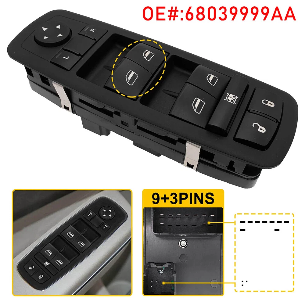 Master Power Window Switch For Dodge Grand Caravan 2008-2011 68039999AA Note: Please confirm the surface button and the back of pins before you buy. High quality OE factory production ,test each switch before shipping. Feature: -LH (Driver Side) FRONT -Easy install,direct replacement -Power Window Switch -Door Lock Switch -Window Lock Switch -Mirror Switch -Each item tested before shipment -Brand new product, 100% aftermarket -One Year's Warranty -High Quality and stable performance Specification: Color: Black To Control: Window Material: ABS Plastic Plug Pin Number: 12 Pins(9pins+3pins) Switch Type: Push Pull Switch Placement of Vehicle: Front, Left Fitment Type: Direct Replacement Manufacturer Part Number: 68039999AA Replace OE/OEM Part Number: 68039999AA Fitment: Fits For Dodge Grand Caravan 2008-2010 Fits For Dodge Journey 2009-2014 Fits For Dodge Caravan 2006-2007 Fits For Chrysler Town & Country 2008-2009 Fits For Jeep Grand Cherokee 2011-2013 Fits For Jeep Liberty 2008-2009 For Chrysler Town & Country 2008-2010 For Dodge Grand Caravan 2008-2010 Package Including: 1x Power Window Switch