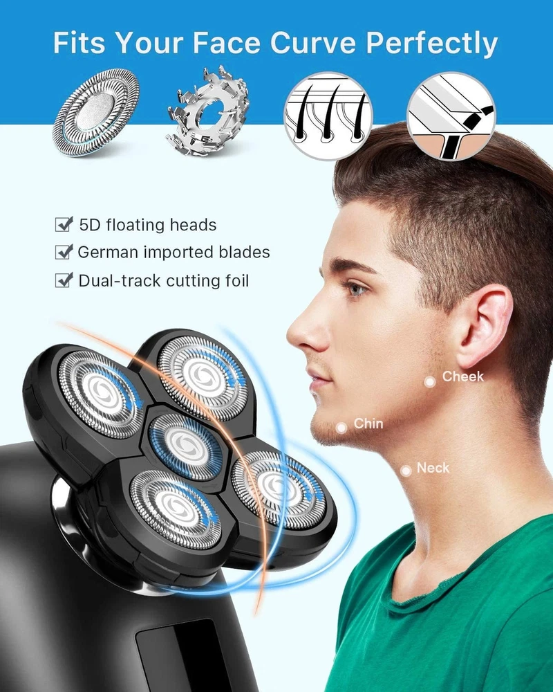 Electric Razors for Women - Head Shavers for Bald Men, Wet/Dry 5D Razor with USB Adapter & Charging Cable,5D Rechargeable Rotary Shaver, Grooming Kit Product Details Color: Black 1 Brand: TAYAYO MPN: TMQ035 UPC: 745431408413 EAN: 0745431408413 Brand: TAYAYO Special Feature: rechargeable, travel_lock, lightweight Power Source: Battery Powered Included Components: Cleaning Brush, Battery, Attachment Battery Life: 90 minutes Package Dimensions : 6.02 x 5.47 x 3.58 inches; 14.89 ounces Batteries : 1 Lithium Ion batteries required. (included) Date First Available : August 23, 2023 Manufacturer : DongGuanShiRunxianShangmaoYouxiangongsi Country of Origin : China 5 in 1 Womens&Men Grooming KitThe electric shaver grooming kit includes 5D women&men rotary shaver, hair clipper (with 3-5-7 mm guide combs), nose hair trimmer, facial cleansing brush, facial silica gel brush, meets any body shaving, grooming and cleansing needs, enjoy hair-free smooth skin without irritation. Smooth and Closer Shaving5D flex heads automatically adapt to the contours of your head, face, neck and jaw, providing you a comfortable and close shave. Rechargeable Shaver for Women&MenThis hair trimmer is rechargeable- you'll never have to worry about running out of batteries. The lithium-ion battery provides up to 90 minutes of shaving time and be quickly recharged with the included USB adapter and cable. Shave Wet or DryWith upgraded IPX7 waterproof technology, the whole shaver could be soaked in water as long as 30 minutes(but we don't suggest do this), you could enjoy shaving in the shower. Perfect GiftSmall and lightweight, unique travel lock design,; Nice package as a gift for your family to use at home or travelling.
