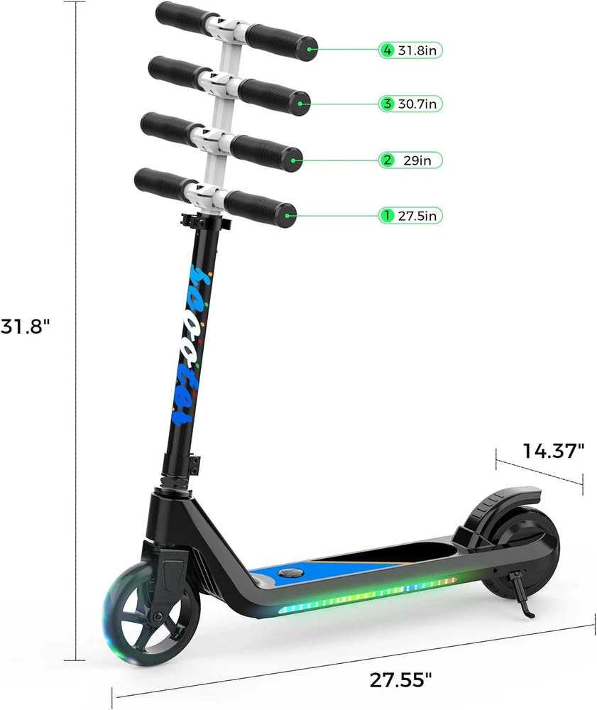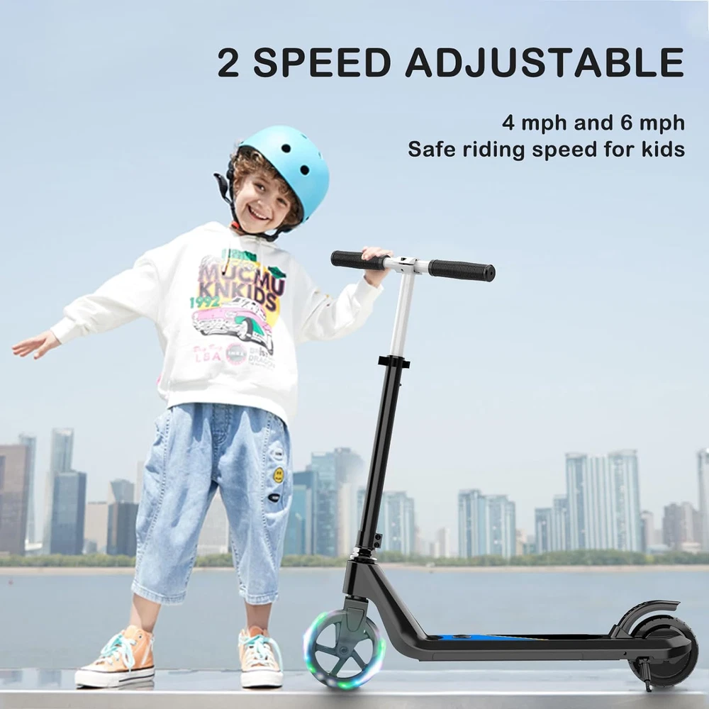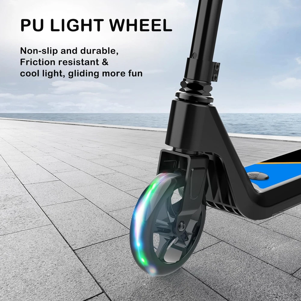Store New Arrivals Add to Favorite View Feedback Contact Electric Scooter for Kids Age of 6-10, Kick-Start Boost Kids Scooter with Adjustable Speed and Height, Kids Scooter with Flash Wheel & Deck Lights Description Included Components CHARGER, SCOOTER, USER MANUAL, TOOLS Warranty Description 1-year warranty Age Range (Description) Kid Warranty Type Limited Package Weight 5.27 Kilograms Material ABS Suggested Users Unisex-Kid Frame Material Aluminum Handle Height 31.8 Inches Wheel Material Polyurethane Number of Wheels 2 Wheel Type Solid Maximum Distance Range 10 Miles Brake Style Rear Braking Handlebar Type Adjustable Item Weight 10 Pounds Charging Time 5 Hours Special Feature Light Up Wheels Weight Limit 110 Pounds Item Dimensions LxWxH 0.03 x 0.01 x 0.03 inches Wheel Size 6 Inches Color black Item Package Dimensions L x W x H 26.5 x 11.5 x 6.4 inches Recommended Uses For Product children's transportation and recreation Model Name E8 Product Dimensions 27.55"L x 14.37"W x 34.08"H Suspension Type Dual Suspension 【Designed for children】 The LINGTENG kid's electric scooter is easy to install and use, are perfect for riders 6-10 years old to experience the fun of riding. There are two speed modes (4 mph and 6 mph) and four height options (27.5", 29", 30.7", 31.8") to choose from depending on your child's preferences and needs. And the scooter weighs only 10 pounds, with a maximum load of 110 pounds. 【Enjoy safe riding】The kid's scooter adopts a start-up assist design tailored for children. The motor will not start until the riding speed reaches 2mph/h, thus avoiding the accidental start of the scooter. The dual function design of the rear wheel is both a fender and a foot brake for easy and quick deceleration. The eKickScooter also comes with non-slip pedals and handles to provide your child with a convenient, safe, stable and enjoyable ride. 【He is a good partner for your child】When you are struggling with what gift to give your child, the LINGTENG e-scooter will be your best choices. it is equipped with a large capacity battery, a top speed of 10 miles per hour and 80 minutes of riding time. Two scooter options, which can be used as a kick scooter or an Electric Kick Scooter, Whether it's a birthday, graduation or Christmas, the sport scooter will be a great surprise gift for kids. 【Cool Pedal Light and PU Flash Wheel】This children's scooter is equipped with PU flash front wheel and pedal light, the pedal light has 3 kinds of lighting effects can be adjusted, making your child the most dazzling protagonist. The electric scooter is designed with a kickstand so that your child can easily dock his favorite scooter. 【Reliable after-sales service】If you have any questions about the scooter, please feel free to contact us, we will reply you within 24 hours and do our best to solve any problems for you. After receiving the product, please operate according to the product instruction manual. you need to tighten all the screws during installation before use. Product Description The video showcases the product in use. The video guides you through product setup. The video compares multiple products. The video shows the product being unpacked. ABOUT US We offer the best prices around on high quality products. Our E-store includes media such as books, movies, music and games while offering electronics, toys, sporting apparel, clothing, tools, general home, garden items and more. SHIPPING We are always working hard to ensure your package arrives as soon as possible. Please understand that some factors like weather, high postal traffic, and the performance of shipping companies are outside of our control. We offer free shipping to the lower 48 states and ship within 2 business days of payment, usually sooner. We do not accept P.O. Boxes. Please provide a physical address. RETURNS We offer a 30-Day Return Policy on items which you are not completely satisfied with. You have the option for a full-refund or an exchange of the item. No returns are available on items shipped outside of the USA. PAYMENT We accept PayPal. CONTACT US This page content is yet to come Please ad us to your favorite seller and visit again later Thank You CUSTOMER SATISFACTION We try our very best to make sure every customer is completely satisfied. If there's a problem, message us! We're happy to help.