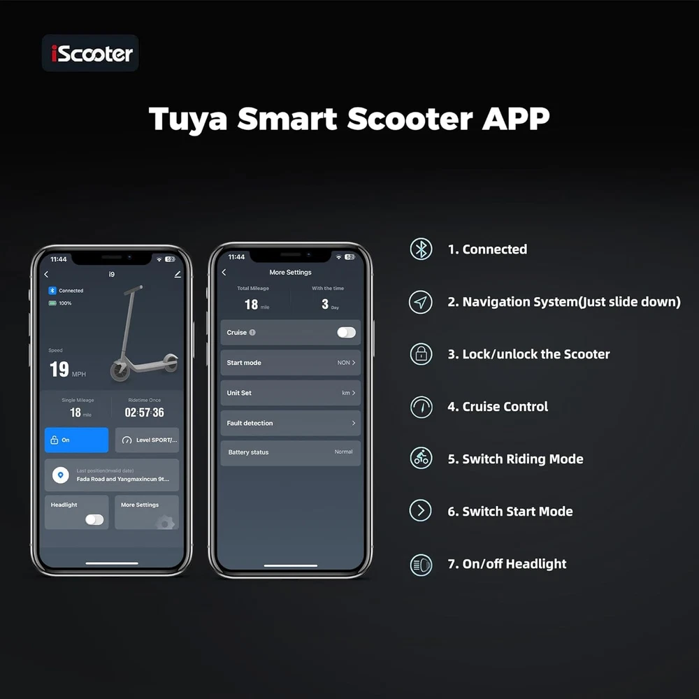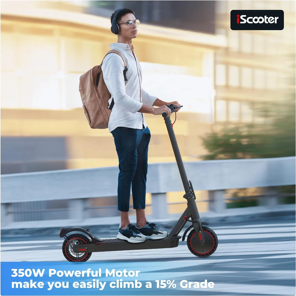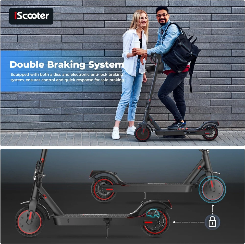 STORE NEW ARRIVALS ADD TO FAVORITE VIEW FEEDBACK CONTACT Store New Arrivals Add to Favorite View Feedback Contact Electric Scooter, 18 Miles Range, 19 MPH Top Speed, 350W Foldable Commuting Electric Scooter with Double Braking Systems and APP for Adults and Teens Description Age Range Description Adult Style i9(350W, 18miles) Age Range (Description) Adult Grip Type Ergonomic Frame Material Aluminum Wheel Material Rubber Number of Wheels 2 Wheel Type Pneumatic Maximum Distance Range 18 Miles Manufacturer Zhejiang jinpan import and export co.,Ltd Weight Capacity Maximum 220 Pounds Brake Style Front Braking, Rear Braking Handlebar Type Fixed Warranty Type Limited Item Weight 10.9 Kilograms Charging Time 6 Hours Special Features 19MPH Top Speed, APP Controller, Non Slip Deck, foldable, Double braking system(Electronic brake+disc brake) Special Feature function(f) {var _np=(window.P._namespace("DetailPageProductOverviewTemplatesJava"));if(_np.guardFatal){_np.guardFatal(f)(_np);}else{f(_np);}}(function(P) { P.when('A').execute(function(A){ A.on('a:truncate:po-attribute-truncate-3:updated', function(data) { var isTruncated = !data.truncateInstance.getIfTextFits(); var seeMoreElement = document.getElementById('po-attribute-see-more-id-3'); if(seeMoreElement) { seeMoreElement.style.display = isTruncated ? '' : 'none'; } }) }); })); 19MPH Top Speed, APP Controller, Non Slip Deck, foldable, Double braking system(Electronic brake+disc brake) See more Weight Limit 220 Pounds Item Dimensions L x W x H 42"L x 17"W x 44"H Handle Height 76 Centimeters Wheel Size 8.5 Inches Color Black Recommended Uses For Product Commuting Model Name E9PRO Product Dimensions 42"L x 17"W x 44"H 【Cost-Effective Electric Scooter for Commuters 】Discover an affordable and efficient commuting solution with our high-performance electric scooter adults. 350W electric scooters offers a maximum speed of 19mph, making your daily commute faster and more cost-effective. The Cruise Control System ensures a smooth and enjoyable ride. The scooter for adults has a maximum load capacity of 220lbs, catering to a wide range of riders. It is certified to UL2272. 【Long-lasting and Safety 】Equipped with a high-capacity 36V/7.5AH battery, our scooter electric boasts a max travel range of 18 miles. With a quick charging time of 3-6 hours, you'll have more time on the go. Prioritizing your safety, it features warning taillights and ultra-bright headlights with a range of up to 15 meters, enhancing visibility during nighttime rides. The double braking system, including disc braking and EABS regenerative anti-lock braking, ensures a secure riding experience. 【Smart APP Control】Take control of your ride with the free Smart Tuya APP, available for both iPhone and Android. Connect your adult electric scooter via Bluetooth and manage features such as lock/unlock, light control, gear adjustment, start mode selection, cruise control, and more. The smart APP enhances your riding experience and simplifies scooter operation. 【Foldable and Convenient】Experience unparalleled convenience with our one-step folding design that allows you to fold the scooter in just 3 seconds. Perfect for city commuting, campus travel, and office commutes, the scooter can be easily folded and weighs only 26 lbs, making it compact enough to fit in a car trunk. Elevate your family trips with this foldable electric scooter, providing unmatched convenience and joy. 【Quality Assurance by iScooter】At iScooter, we are committed to delivering premium, affordable, and reliable products. Enjoy peace of mind with our 12-month or 180-day warranty for different parts. If you have any questions, our dedicated customer support is ready to assist you. Your satisfaction is our utmost priority. Make your life more wonderful with iScooter's Foldable Electric Scooters. Product Description The video showcases the product in use. The video guides you through product setup. The video compares multiple products. The video shows the product being unpacked. If you are looking for one special gifts for your childs or friends, We think that our i9 electric scooter will be the perfect one! Folding: 42''x17"x19" Unfolding: 42”*17“*44“ 1 Carbonfree Certified 2 Lightweight 1 36V/7.5AH Battery 2 Smart APP 1 Headlight &Taillight 2 Dual Braking Systems 3 Solid Tire&Mudguard How fast can electric scooters go? iScooter i9 electric scooters can go about 19mph with 2st gear, 9mph with 1st gear. What are the benefits of an electric sooter? The benefits of electric scooters are that they are affordable, high cost-effective and portable to save your time to find a parking space or wait for subway. They can also save you money on gas because they can be charged quickly. How long do e scooters last? With proper care and maintenance, an e scooter can last anywhere between 2 to 5 years or even longer. How do I choose my scooter electric? You can focus on the following factors: Rider's weight, Ease of installing, Battery life, Top speed you prefer, the weight of sooter and Appearance. Why there are different top speeds with same scooter. The factor of influencing the top speed: Rider's weight, the condition of road and weather, daily maintenance, etc. RECOMMEND FOR YOU Add to Cart Add to Cart Add to Cart Add to Cart Add to Cart Add to Cart Customer Reviews 4.1 out of 5 stars 998 4.2 out of 5 stars 59 4.3 out of 5 stars 362 4.2 out of 5 stars 91 4.6 out of 5 stars 178 4.5 out of 5 stars 24 3.9 out of 5 stars 58 Price $239.99 $ 239 . 99 $299.99 $ 299 . 99 $539.99 $ 539 . 99 $689.99 $ 689 . 99 $179.99 $ 179 . 99 $399.99 $ 399 . 99 — Motor Power 350W 500W 800W 750W 350W 250W 70W Top Speed 19 MPH 15.6 MPH 24 MPH 28 MPH 15.6 MPH 5 MPH 6 MPH Long Range 18 Miles 21 Miles 25 Miles 50 Miles 12 Miles 12.4 Miles 5 Miles Tires Type 8.5'' Honeycomb Tires 12" Pneumatic Tires 10'' Off Road Tubeless Tire 10" Pneumatic Tires 8.5'' Pneumatic Tires 197*60MM Solid Tires 5'' & 3.5''PU Tires Hill Climbing Approx. 15% App