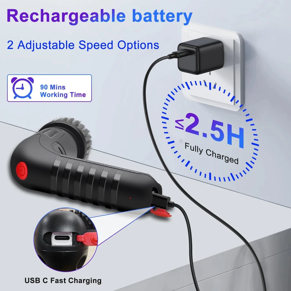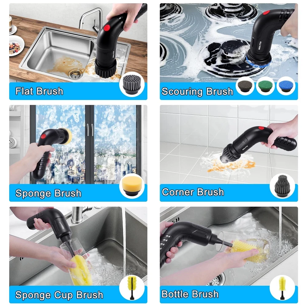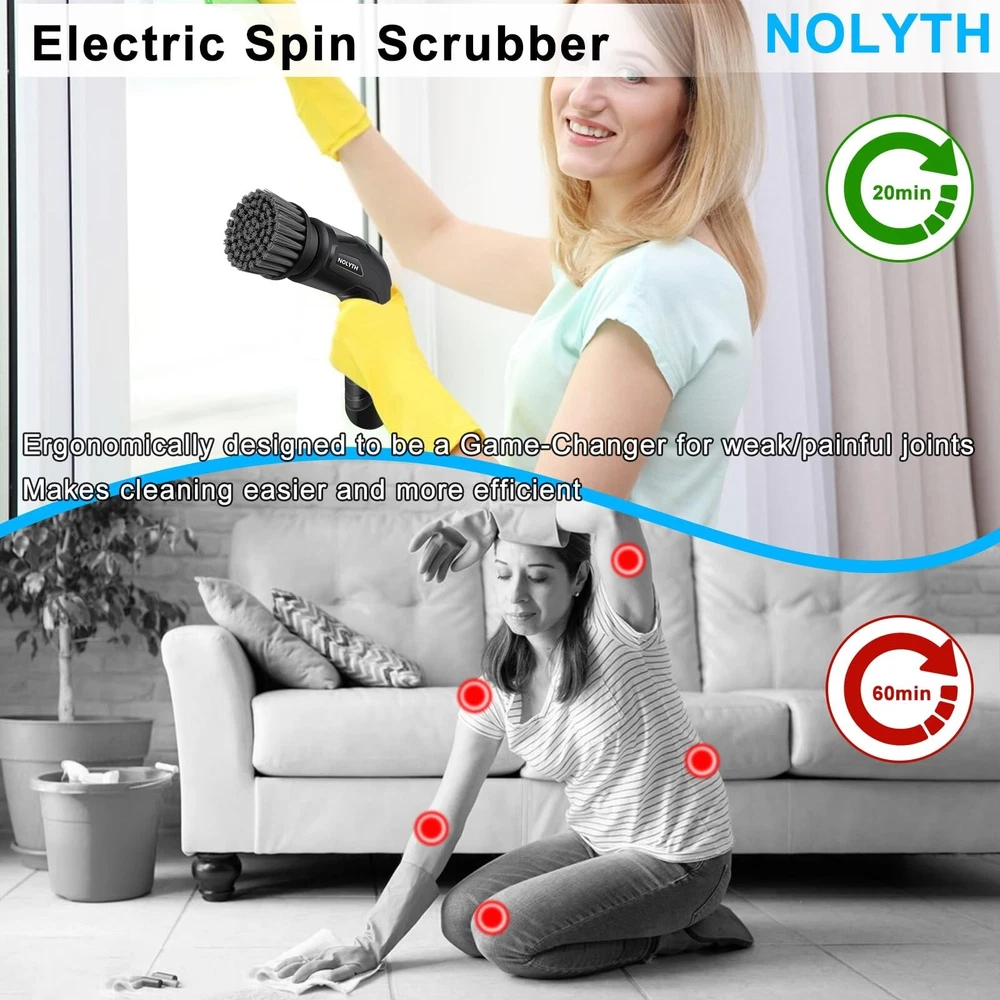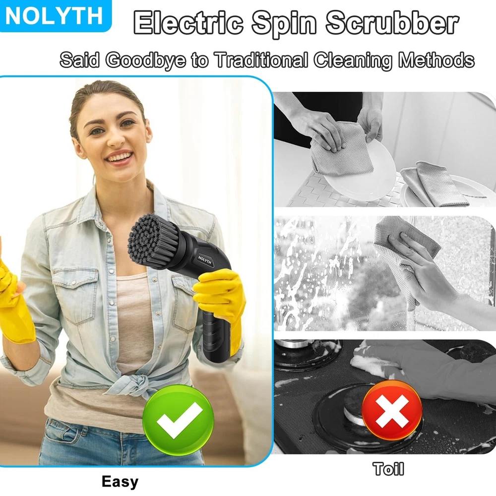 Electric Spin Scrubber, Cordless Electric Scrubber for Cleaning, Power Scrubber with 8 Replaceable Brush Heads, 2 Adjustable Speeds Cleaning Brush Shower Bathroom Floor Grout Spin Scrubber Product Details Color: Black Brand: NOLYTH MPN: ESS-CT24820 UPC: 726133313496 EAN: 0726133313496 Brand: NOLYTH Color: Black Handle Material: ABS Plastic Specific Uses For Product: Bathtub, Shower, Sink, Stove, Floor, Tile, Cooker, Dish, Toilet, Windows Product Dimensions: 7.41"L x 4.68"W x 1.96"H Brand: NOLYTH Color: Black Handle Material: ABS Plastic Specific Uses For Product: Bathtub, Shower, Sink, Stove, Floor, Tile, Cooker, Dish, Toilet, Windows Product Dimensions: 7.41"L x 4.68"W x 1.96"H Material: Acrylonitrile Butadiene Styrene (ABS) Special Feature: Comes with 1 Net Bag, Lightweight Portable, 8 Replaceable Brush Heads, Easy to Use Shape: Rectangular Included Components: 8 x replaceable brush heads, 1 x USB C charging cable, 1 x electric spin scrubber, 1 x user manual, 1 x net bag Surface Recommendation: Stove, Sinks, Tubs, Tiles, Floor, Bathroom, Kitchen, Car Wheels, Glass Windows Number of Items: 1 Theme: Cleaning Item Firmness Description: Hard Item Weight: 12.32 ounces Manufacturer: Confoly Tech UPC: 726133313496 Unit Count: 1.0 Count Item Weight: 12.3 ounces Country of Origin: China Item model number: ESS-CT24820 Batteries: 1 Lithium Ion batteries required. (included) Date First Available: September 18, 2024 Save Time More Efficient Cleaning Easier: This electric spin scrubber is a game-changer and ergonomically designed, especially for someone who has the weak/painful joints and dislikes the physical exertion of scrubbing. This electric scrubber for cleaning delivers powerful cleaning performance, saves a significant amount of time and does not require much physical effort, making cleaning easier Powerful Cleaning: The NOLYTH electric scrubber is a must-have for anyone looking to make their cleaning routine more efficient and less strenuous! Powerful to clean the stubborn stains, soap scum, grout, corners, dirt, moulds, grime, edges, nooks and crannies of sinks, tubs, bathrooms, bathtubs, kitchens, tiles, floors, glass, car wheels, stoves, counters and toilets etc. without any effort at all. This scrubber can clean both large areas and tight spaces. Easy to use, gets the job done in a fraction of the time and looks brand new Lightweight and Easy to Use: This electric spin brush is just the right size and weight, it is comfortable in your hand and is easy to use even with arthritic hands. The NOLYTH spin scrubber is cordless and rechargeable with a USB-C charging cable. It has 2 adjustable spin speeds, turn on the electric spin scrubber, choose the speed and it will tackle even the toughest stains and grime with ease 8 Replaceable Brush Heads and 1 Net Bag: The NOLYTH electric cleaning brush comes with 8 replaceable brush heads in different sizes, making it effective on different surfaces for different cleaning tasks. 1 flat brush, 1 corner brush, 3 scouring brushes, 1 sponge brush, 1 sponge cup brush, 1 bottle brush and also with 1 net bag, enough to store the electric spin scrubber and brushes and to air dry in small places Purpose of The Replaceable Brush Heads: Flat brush is ideal for cleaning large surfaces, such as hard floors, tiles, oven and stove. Corner brush is very great for cleaning tile grout, car wheel, edges, corners and tight places; Scouring brush is ideal for cleaning stove top, dishes, cooktop, counters. Sponge brush is perfect for cleaning dishes, glass walls, glass windows. Sponge cup brush and bottle brush is suitable for cup, baby bottle, bottle, vase IPX7 Waterproof: The NOLYTH power scrubber adopts an IPX7 grade waterproof design of the whole body, allowing you to rinse while cleaning and providing you the flexibility to use the power spin scrubber safely in various environments. After cleaning, you can clean electric bathroom scrubber under running water to keep it clean and tidy Perfect Gift for Anyone Who Loves Cleaning and Has Arthritis: This spin scrubber for cleaning says goodbye to traditional cleaning methods, it is a new game-changer for your cleaning. This electric scrubber for cleaning is a great gift for anyone who wants to keep their home spotless and for family members who have weak/painful joints and arthritis. They will love and use this practical and thoughtful electric spin scrubber