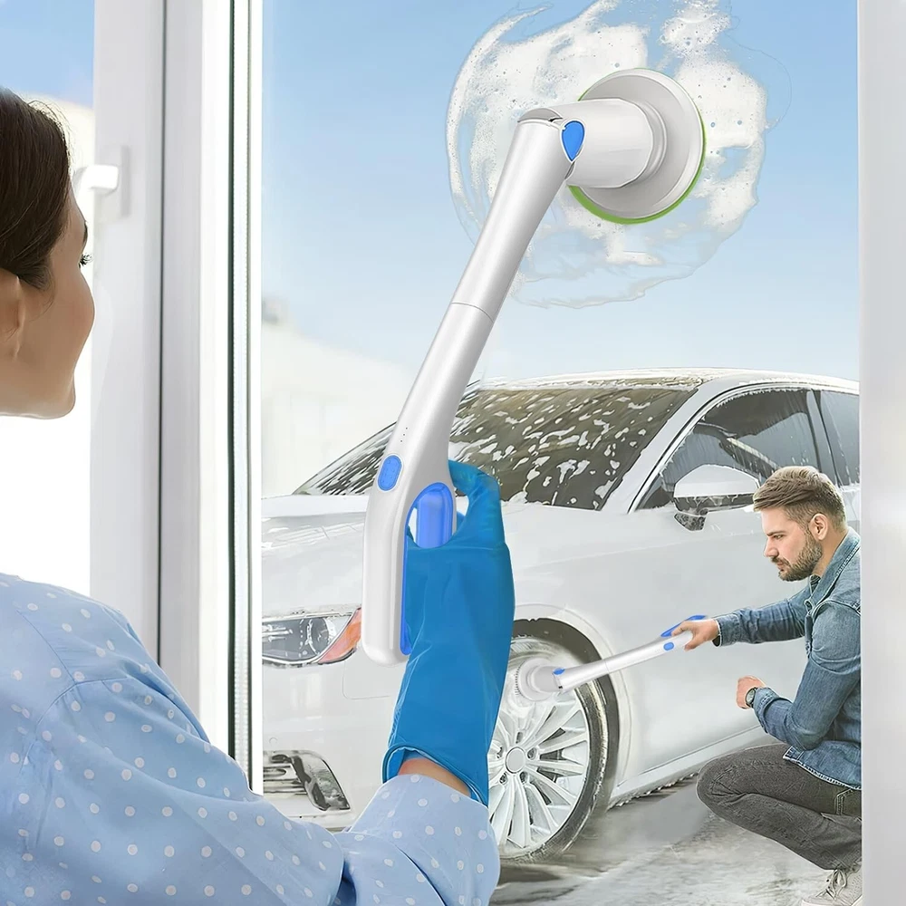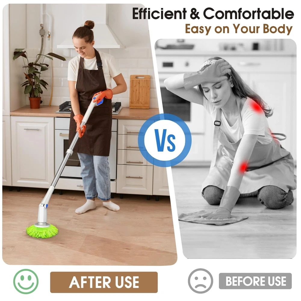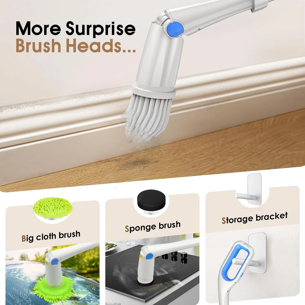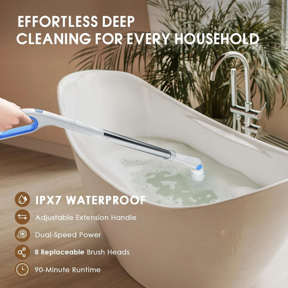 Electric Spin Scrubber Shower Scrubber,IPX7 Waterproof Electric Scrubber for Cleaning,Cordless Cleaning Brush with 8 Replaceable Brush Heads Adjustable Extension Long Handle,for Bathroom Kitchen Product Details Brand: Cakila Color: White Blue Handle Material: Plastic Specific Uses For Product: Window, Floor, Table, Grill, Tile, Refrigerator, Drain, Kitchen, Patio, Vent, Comb, Wall, Bathroom, Ceiling, Furniture, Dryer Vent, Vehicle, Counter, Sink, Air Conditioner, Computer, Pool, Dish, Golf Club, Metal Cleaner See more Product Dimensions: 7.08"L x 6.3"W x 17.56"H Brand: Cakila Color: White Blue Handle Material: Plastic Specific Uses For Product: Window, Floor, Table, Grill, Tile, Refrigerator, Drain, Kitchen, Patio, Vent, Comb, Wall, Bathroom, Ceiling, Furniture, Dryer Vent, Vehicle, Counter, Sink, Air Conditioner, Computer, Pool, Dish, Golf Club, Metal Cleaner Product Dimensions: 7.08"L x 6.3"W x 17.56"H Material: Aluminum Special Feature: Portable Shape: Round Included Components: Attachment Surface Recommendation: Floor, Porcelain, Vinyl, Wood, Glass, Tile, Plastic, Metal, Windows, Stone Number of Items: 1 Theme: Cleaning Item Firmness Description: Medium Manufacturer: Cakila Unit Count: 1.0 Count Item Weight: 4.27 pounds Country of Origin: China Item model number: DDQJS13 Date First Available: December 19, 2024 Time-Saving and Efficient Cleaning: This electric spin scrubber makes cleaning easier and faster through its efficient design. Compared with traditional bathroom cleaner, shower scrubber can save up to two-thirds of cleaning time - from 1 hour to 45 minutes. Its lightweight design makes it easy for the whole family to use, especially suitable for the elderly, pregnant women, arthritis patients, and people with limited mobility. There is no need to bend down or kneel when using it, which avoids pressure on the back and knees. This electric scrubber for cleaning not only improves cleaning efficiency, but also greatly reduces the burden on the body, making it an ideal choice for daily cleaning Two-Speed Powerful Motor: Shower scrubber equipped with two working speeds, the first gear speed is 230 rpm/min and the second gear speed is 255rpm/min, which can be switched with just one button operation. Our electric scrubber for cleaning is equipped with a 4V/74W advanced noise reduction motor, coupled with a 2000mAh large-capacity battery, which enables 2.5 hours of fast charging through the Type-C interface, providing up to 90 minutes of continuous cleaning Flexible Adjustable Handle: Shower scrubber with long handle is equipped with a retractable stainless steel handle, the length can be adjusted from 26 inches to 51 inches, and the angle adjustment range is from 90 to 180. This allows you to easily clean every corner of your home without having to kneel or bend down. This new bathroom cleaning supplies will change your cleaning experience and let you say goodbye to the inconvenience of traditional cleaning tools IPX7 Waterproof Multi-Function: Bathroom cleaner with long handle except for the top handle, ourspin brush for cleaning bathroom is designed with an IPX7 waterproof rating as a whole, which can be washed directly under the faucet without worrying about damage. Electric scrubber suitable for bathtubs, swimming pools, ceilings, glass, countertops, floors, tiles, kitchens, walls, windows, cars and many other scenes, it is a multi-functional tool that meets all your cleaning needs 8 Types of Replace Brush Heads: Our electric spin scrubber comes with 8 types of replaceable brush heads, including 4 cleaning heads, 1 cleaning sponge, 1 scouring pad, 1 coral mop and 1 Nylon cleaning head. Whether you're cleaning bathroom tubs and toilets, large hard surfaces, nooks and crannies, detail work, or smooth surfaces like glass or cars, our brush heads can meet your needs. All brush heads are designed to be firm and not easy to fall off