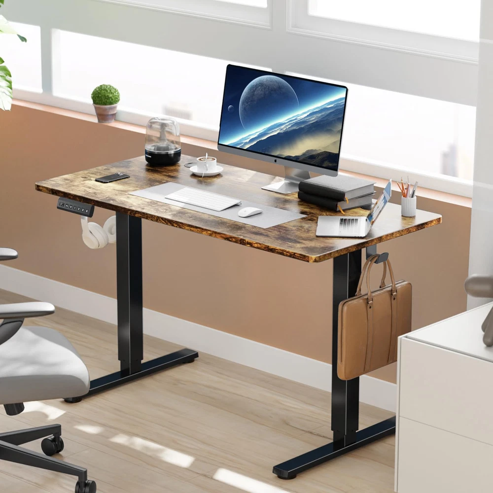 Smooth Height Adjustable Standing Desk: You can freely adjust the height of this desk from 28.7 inches to 46.5 inches, or click the preset 1/2/3 buttons to quickly adjust to the height you are comfortable using. accurate and smooth lifting and lowering. This adjustable desk can help you work healthily by constantly changing the height Spacious & Safe Material Desktop: You can enjoy a healthy home life with our standing desk with an eco-friendly material desktop, which meets the EPA and CARB safe air standards. The computer desk is spacious enough for lots of stuff to be placed on it. Considerately designed with a round corner desktop and wire hole, 2 headphone hooks for you together to secure safety and convenience Upgraded Durable Motor: Our stand-up desk is equipped with a powerful and durable motor, which is also quiet and energy-saving. Our superior motor is tested around 50,000 and still runs normally. The quiet motor runs at a speed of 2"/second with low noise to avoid disturbance to others while operating the height-adjustable standing desk With Protection Functions: Our home office desks also include a child safety lock function, anti-collision function, and overload protection function. Safety lock function, in case of power failure during operation, the fixed position will not slip off. Overload protection, if the load weight of this electric computer desk exceeds the maximum loadable weight, the motor will automatically stop to prevent overload damage Please Note: You can easily install it according to the instructions and installation video we provide. If you have any questions about our sit stand desk, please don't hesitate to email us and we will do our best to help you solve the problems