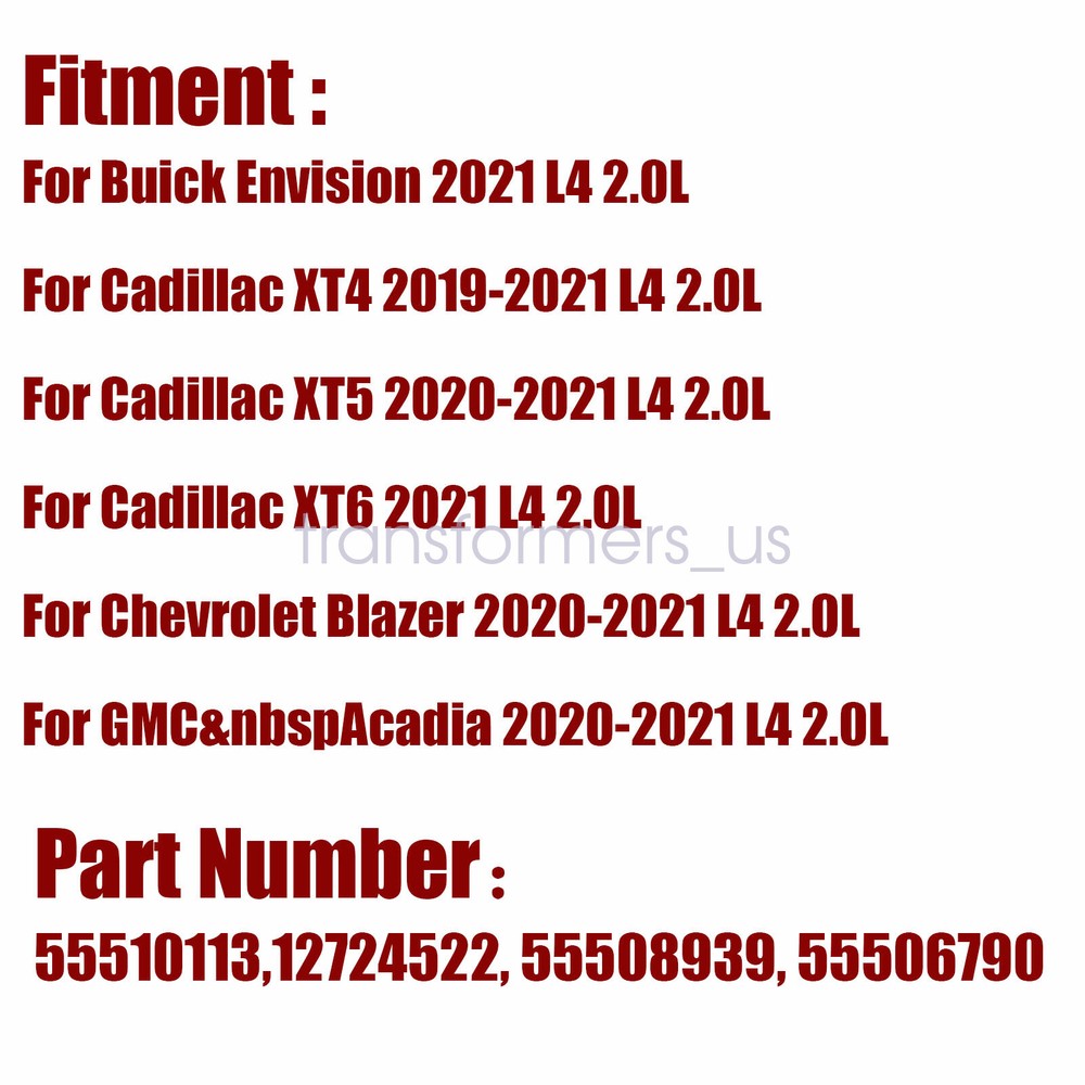 Electric Water Pump for GMC Acadia 20-21 Cadillac XT5 6 Chevrolet Blazer Buick *Important Notice* Please kindly check your car model and make sure the model fits in case of buying the wrong product. Specifications : Fitment : For Buick Envision 2021 L4 2.0L For Cadillac XT4 2019-2021 L4 2.0L For Cadillac XT5 2020-2021 L4 2.0L For Cadillac XT6 2021 L4 2.0L For Chevrolet Blazer 2020-2021 L4 2.0L For GMC Acadia 2020-2021 L4 2.0L Part Number : 55510113 Features:Fast Ship from USA Installation : Direct Replacement Package Including : 1x Electric Water Pump Feature: -According to the original factory specifications. -100% brand new and high quality guaranteed. -Easy to use and to operate at affordable prices. Installation Notice : No installation instruction included, Easy Installation Any damage and improper installation during the installation will not allow to get money refund. General Policies : Dear customer,if you have any questions,you can contact us,we will provide the best service for you. Shipping policy : The item will be shipped within 24 hours on payment received except the holidays.(except weekends & official holidays). You can log on to eBay to check your logistics tracking number. Please confirm address before purchase, and cannot change address once purchased. If you need to receive the item quickly, please contact us, you can pay the postage to choose other logistics. Payment: Please purchase and pay for the item through the eBay,only accpected the paypal payment. Returns: Please contact us first when return, exchange and refund is required. Any direct return of purchased items will not be processed. Item must be returned in new condition, as received with all accompanied accessories and literature, including the factory carton. Shipping, handling is not refundable unless item is returned because of defect. If the product is defective or damage upon arrival,please contact us immediately,we will provide the solve the problem. Returns accepted within 30 days of delivery date and item must be in original new condition. About us: Our goal is complete customer satisfaction. We will be very honored to provide you with quality service. If there is an issue with shipping or the item you purchased please contact us via ebay message or call us before opening a case or leaving feedback.We will try our best to resolve any kind of issue. Electric Water Pump for GMC Acadia 20-21 Cadillac XT5 6 Chevrolet Blazer Buick *Important Notice* Please kindly check your car model and make sure the model fits in case of buying the wrong product. Specifications : Fitment : For Buick Envision 2021 L4 2.0L For Cadillac XT4 2019-2021 L4 2.0L For Cadillac XT5 2020-2021 L4 2.0L For Cadillac XT6 2021 L4 2.0L For Chevrolet Blazer 2020-2021 L4 2.0L For GMC Acadia 2020-2021 L4 2.0L Part Number : 55510113 Features:Fast Ship from USA Installation : Direct Replacement Package Including : 1x Electric Water Pump Feature: -According to the original factory specifications. -100% brand new and high quality guaranteed. -Easy to use and to operate at affordable prices. Installation Notice : No installation instruction included, Easy Installation Any damage and improper installation during the installation will not allow to get money refund. General Policies : Dear customer,if you have any questions,you can contact us,we will provide the best service for you. Shipping policy : The item will be shipped within 24 hours on payment received except the holidays.(except weekends & official holidays). You can log on to eBay to check your logistics tracking number. Please confirm address before purchase, and cannot change address once purchased. If you need to receive the item quickly, please contact us, you can pay the postage to choose other logistics. Payment: Please purchase and pay for the item through the eBay,only accpected the paypal payment. Returns: Please contact us first when return, exchange and refund is required. Any direct return of purchased items will not be processed. Item must be returned in new condition, as received with all accompanied accessories and literature, including the factory carton. Shipping, handling is not refundable unless item is returned because of defect. If the product is defective or damage upon arrival,please contact us immediately,we will provide the solve the problem. Returns accepted within 30 days of delivery date and item must be in original new condition. About us: Our goal is complete customer satisfaction. We will be very honored to provide you with quality service. If there is an issue with shipping or the item you purchased please contact us via ebay message or call us before opening a case or leaving feedback.We will try our best to resolve any kind of issue.
