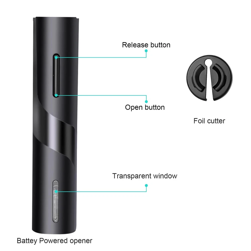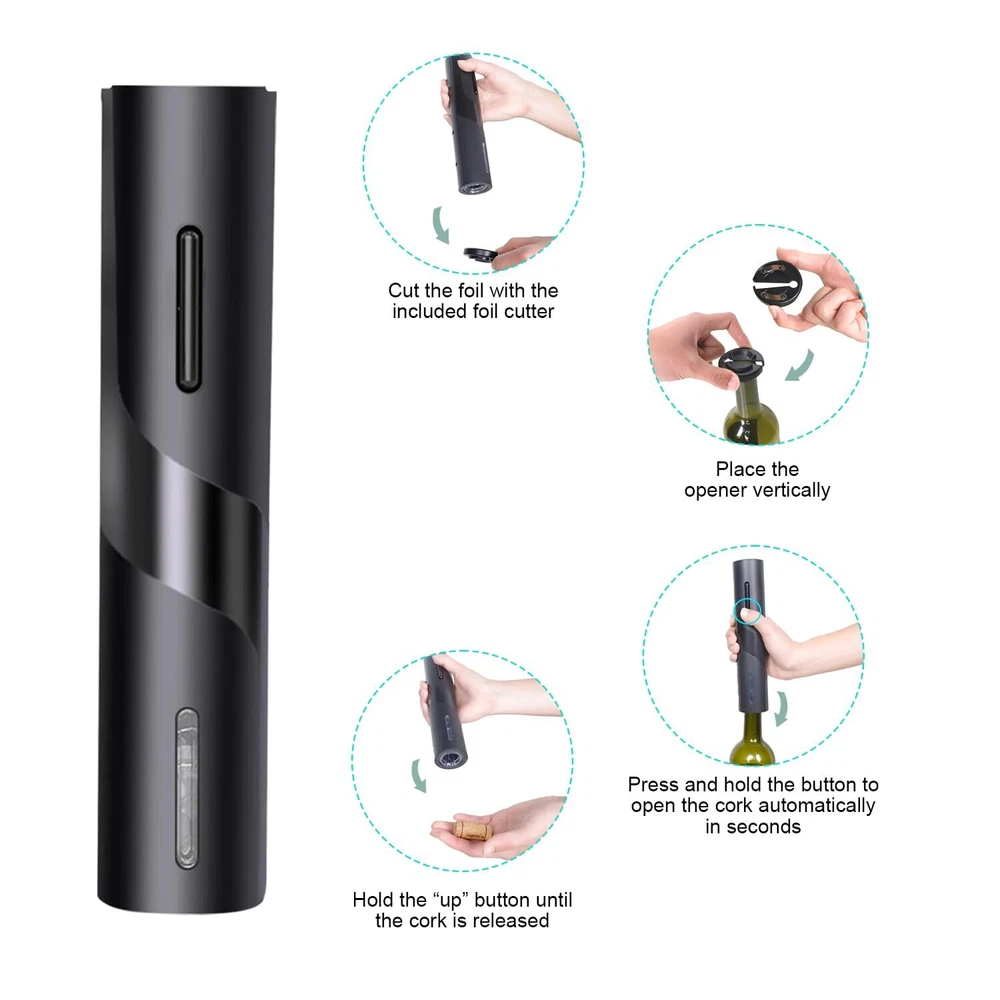 FUNCIONAMIENTO SENCILLO: Con solo un botón y un sacacorchos en 3 pasos de funcionamiento, el abridor de botellas de vino empuja el corcho hacia afuera automáticamente, ahorrándole tiempo y energía, y ayudándole a concentrarse en disfrutar de su vino favorito. RÁPIDO Y EFICIENTE: Este abridor de botellas de vino eléctrico puede abrir todo tipo de vinos, solo HAGA CLIC en el botón y luego abra el corcho automáticamente en unos segundos. FUNCIONAMIENTO CON MENOS RUIDO: El diseño del cepillo de reducción de ruido agregado con motor proporciona sus operaciones con un ruido mínimo para molestar a los demás, lo que le permite disfrutar de su vino en paz y en un momento romántico. POTENTE Y CONFIABILIDAD: El abridor de botellas de vino eléctrico tiene un potente motor incorporado alimentado por 4 baterías alcalinas AA (NO INCLUIDAS), un motor potente y una función de corcho rápido que puede abrir más de 100 botellas de vino a la vez. PORTÁTIL Y LIGERO: Nuestro abridor de botellas de vino con tamaño compacto y liviano, el tamaño compacto será muy conveniente para sacarlo y guardarlo en cualquier espacio. *lucky*vorobey* Kindly note: If you would like to order more quantity than shown is available, you are welcome to place one order fox maximum available quantity and place one more order again because we always have more, than shows in available items. Best wishes TRANSLATE with x English Arabic Hebrew Polish Bulgarian Hindi Portuguese Catalan Hmong Daw Romanian Chinese Simplified Hungarian Russian Chinese Traditional Indonesian Slovak Czech Italian Slovenian Danish Japanese Spanish Dutch Klingon Swedish English Korean Thai Estonian Latvian Turkish Finnish Lithuanian Ukrainian French Malay Urdu German Maltese Vietnamese Greek Norwegian Welsh Haitian Creole Persian