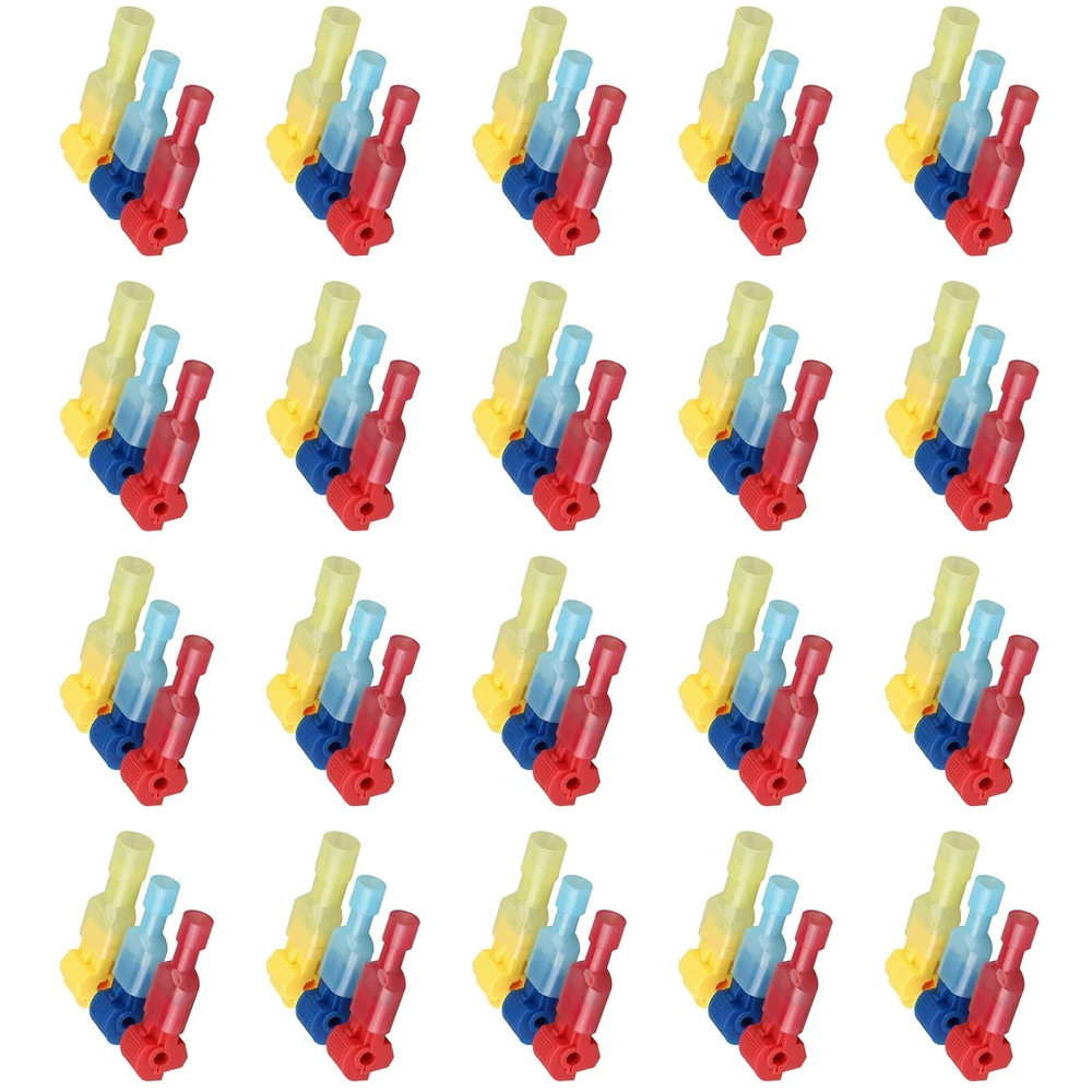 Electrical Cable Terminal Clips Quick Connectors T-Tap Clamps Splice Wire Set DESCRIPTION Features: * brand new and high quality , to use * Makes tapping into an existing wire a quick and easy job, no special tools needed * Widely used in the wire connection of automotive and motorcycle, home * Comply with all relevant US standard * Use these self-stripping electrical tap connectors to electrically tap into a wire in -span without cutting or stripping the wire Specifications: * Material: PVC, Brass, Tinplate * Color: Red, Blue, Yellow * Male spade connector length: 2.5 cm * Quick splice wire connector length: 3.7 cm * Diameter: 0.35cm(Red); 0.45cm(Blue); 0.7cm(Yellow) * Terminals spade width: 6.3mm * Terminals width: 1.1cm * Red: suits cable/ wire sizes (0.5-1.5mm 22-16AWG) * Blue: suits cable/ wire sizes (1.5-2.5mm 16-14AWG) * Yellow: suits cable/ wire sizes (4.0-6.0mm 12-10AWG) Package Contents: 10pcs 87806 x 22-18AWG(0.5-0.75mm2) x Red Connector 10pcs 87816 x 18-14AWG(0.75-2.5mm2) x Blue Connector 10p c s 87826 x 12-10AWG(4.0-6.0mm2) x Yellow Connector 10pcs MDFN1.25-250 x 22-18AWG(0.5-1.5mm2) x Red Connector 10pcs MDFN2-250 x 16-14AWG(1.5-2.5mm2) x Blue Connector 10pcs MDFN5.5-250 x 12-10AWG(4.0-6.0mm2) x Yellow Connector Note: The real color of the item may be slightly different from the pictures shown on website caused by many factors such as brightness of your monitor and light brightness. POLICES Shipping Payment WARRANTY We only ship to confirmed ebay Order addresses. Please comfirm that your Order address is in line with your shipping address. Please kindly note that the c ombined shipping is not provided because the shipping fee is calculated by weight. Also, the each additional item means exactly the the same color and size. It takes about 7 -15 working days to US; about 10-30 working days to other countries. Transit time may be a little delayed because of the bad weather and customs inspection . If you do not receive your item within 30 working days since payment finished, please contact us immediately for further assistance. Payment must be completed within 5 days. If you have any problems about payment, please contact us via ebay message. We strive for 100% customer satisfaction! Positive Feedback is very important to us. If you have any questions, p lease feel free to contact us via "Ask seller a question" . We will reply your email within 24 working hours.