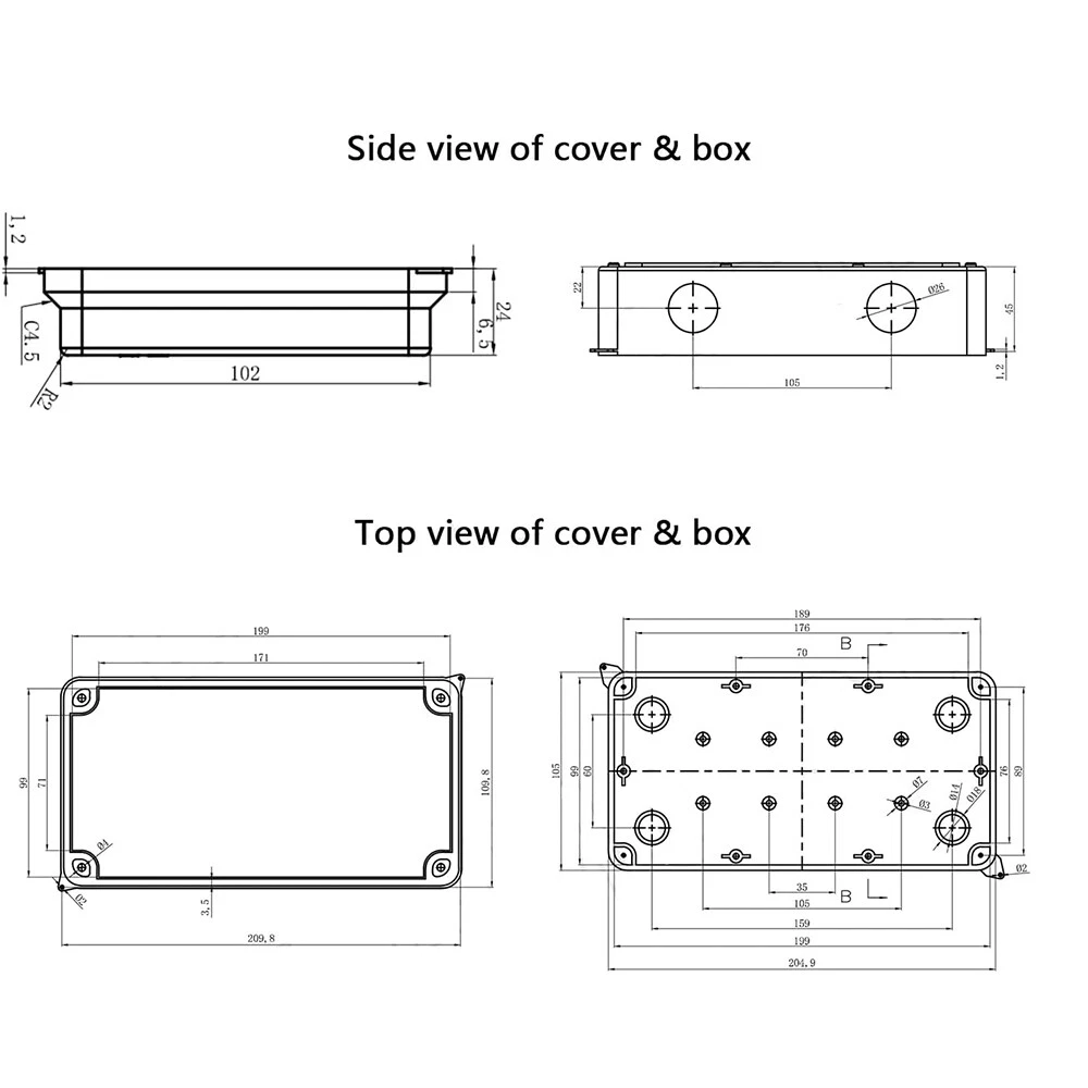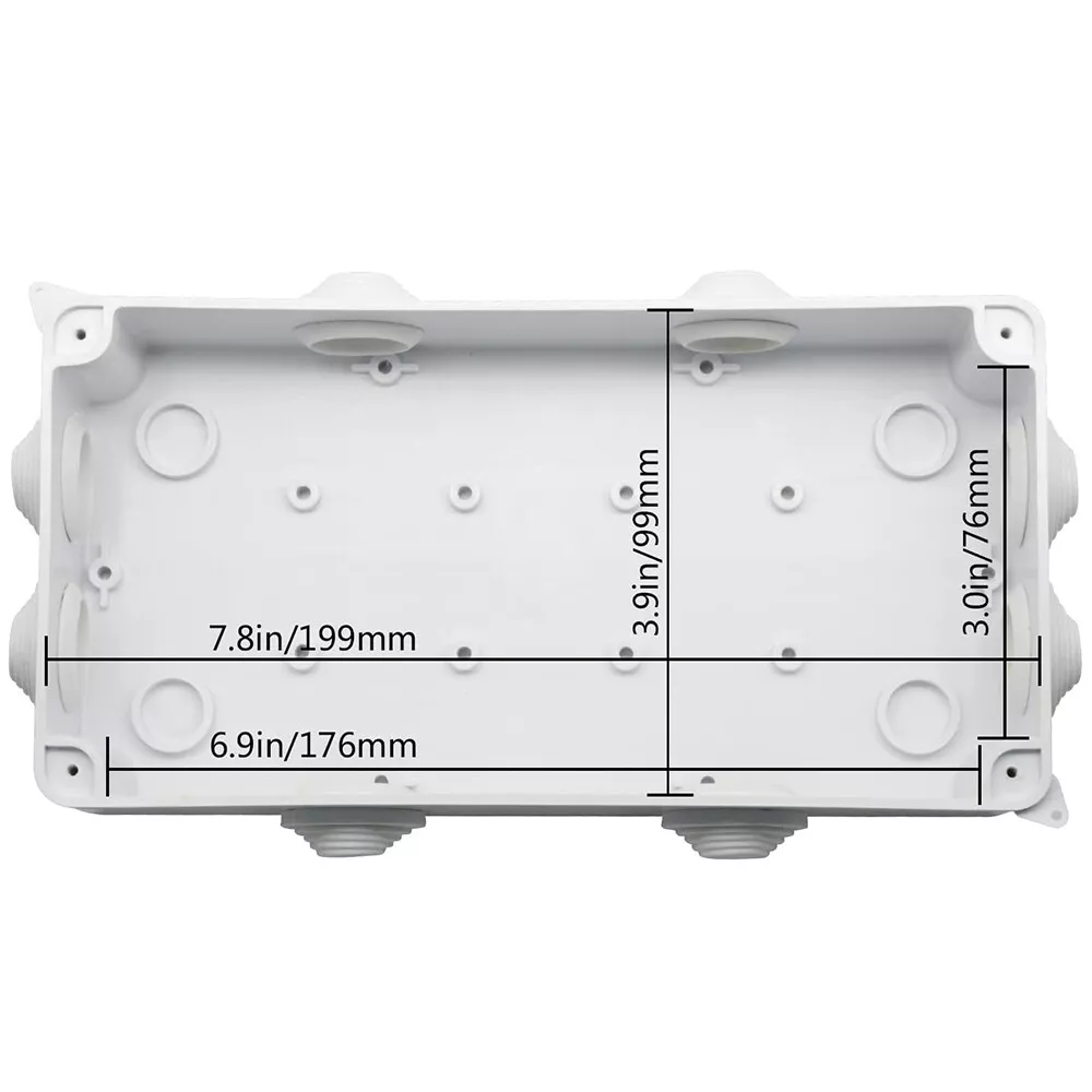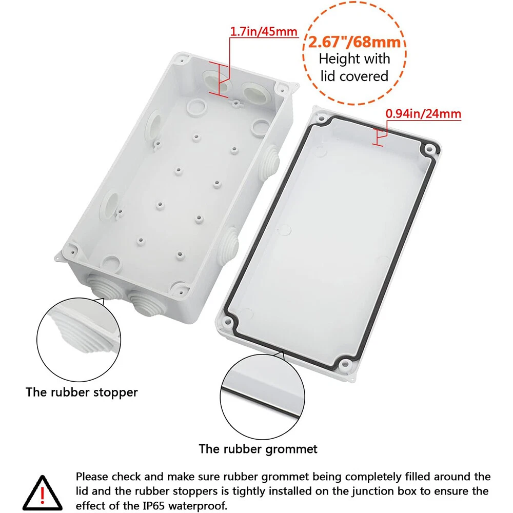 Features: [ Sturdy Construction ] Electrical Junction box is made of high-quality ABS plastic material, which offers excellent impact resistance and electrical insulation. Rest assured that your equipment will be well-protected in harsh environments. [ Safe and Certificated ] With CE RoHS compliant and waterproof rated, the electrical box is free of hazardous substances. The plastic box is predrilled which is easy to install and modify for your project. [ Indoor and Outdoor Use ] With the feature of water resistance and dustproof,it can effectively block splashing water, rain, dust, snow, oil, UV and more. Whether you need to use it indoors or outdoors, this surface mounted project box is easy to operate. [ Extensive Application ] Our junction box is used in a variety of applications: residential homes wiring and connecting electrical devices, such as light fixtures, switches, and outlets; protect and connect electrical equipment for machines, motors etc. Size: 7.87"x3.93"x2.75" Package Included: 1x Electrical Junction Box