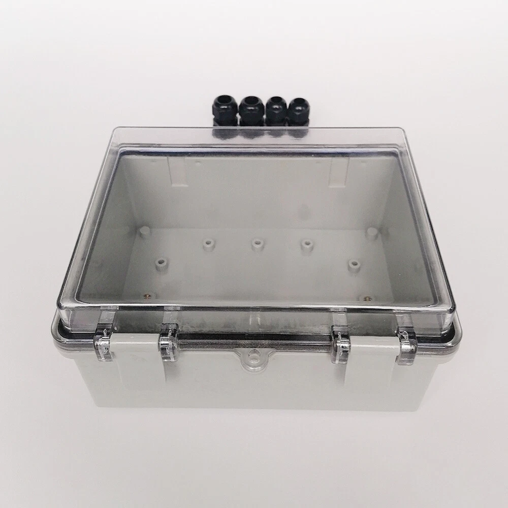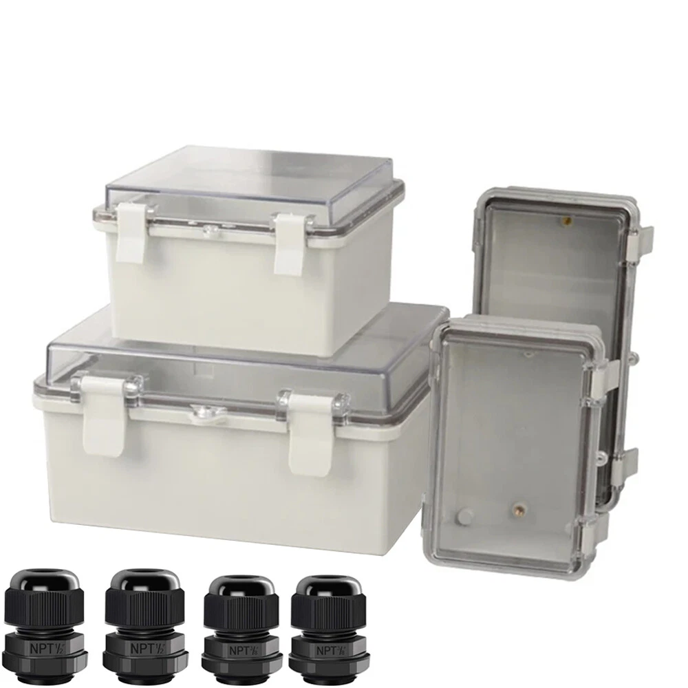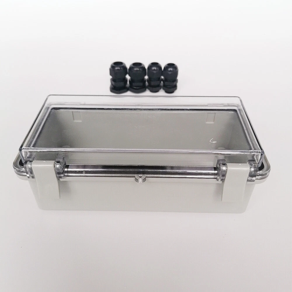 About this item: 【Specifications】Product name: Electrical Box; Waterproof rating : IP65; Qualification:CE、ROHS; Material: ABS, PC; Main Color: Gray,Transparent. 【Industrial Electrical Box】: electrical unit is not only weather resistant but also waterproof and does not allow dust to enter. You can drill holes inside depending upon your project requirement with no cracks and compromise 【Easy to operate】: electrical unit is easy to install, Hinged enclosure makes the opening and closing easier; Come with grey transparent cover,the inner project of junction box can be more visible 【Comprehensive Industrial Enclosure】: The junction box features two or three plastic latches for added security and locking. Moisture proof, sunscreen, anti-corrosion for safety from weather based environmental hazards Package Included: 1x Waterproof Junction Box with Tranparent Shell 2x NPT 3/8 Cable Gland 2x NPT 1/2 Cable Gland