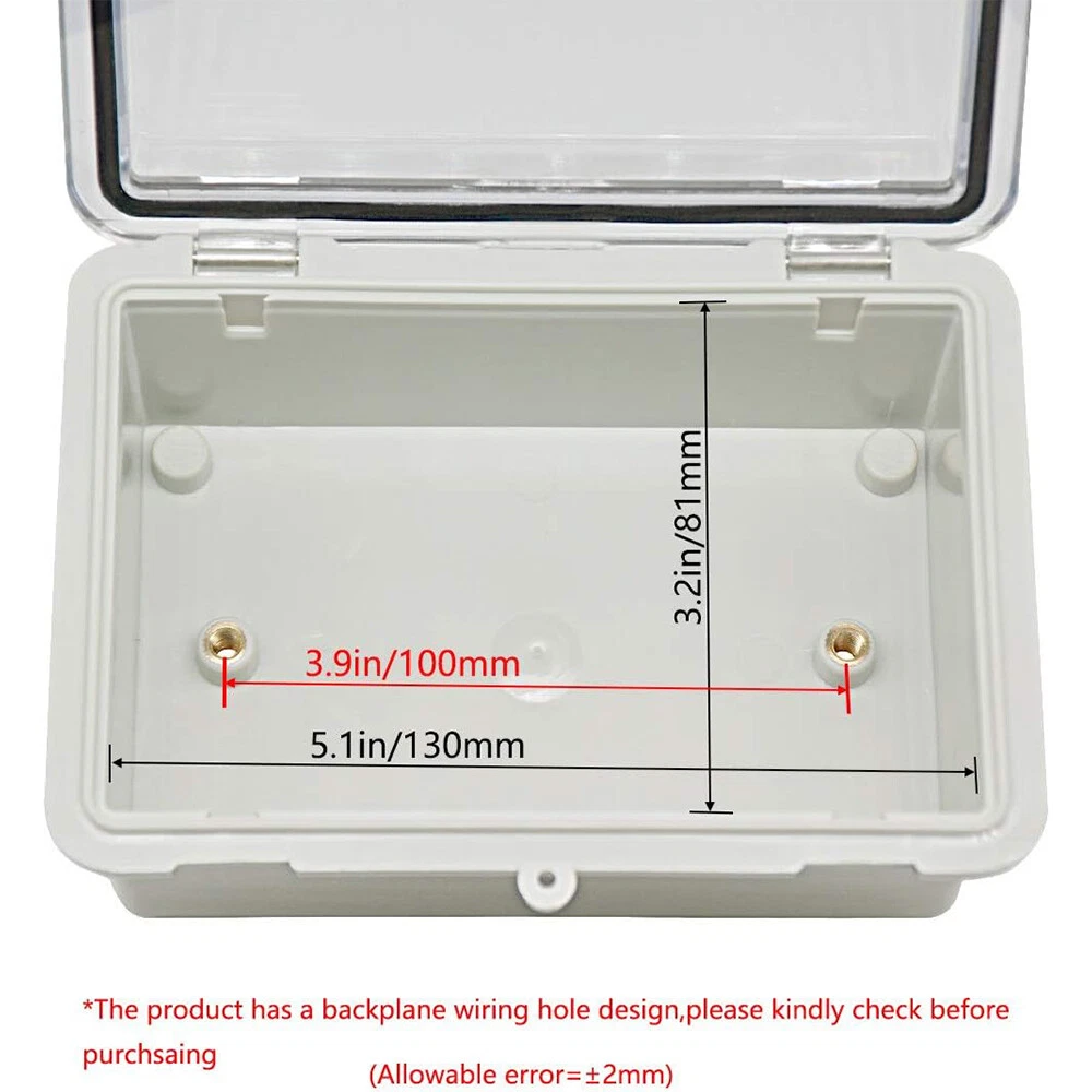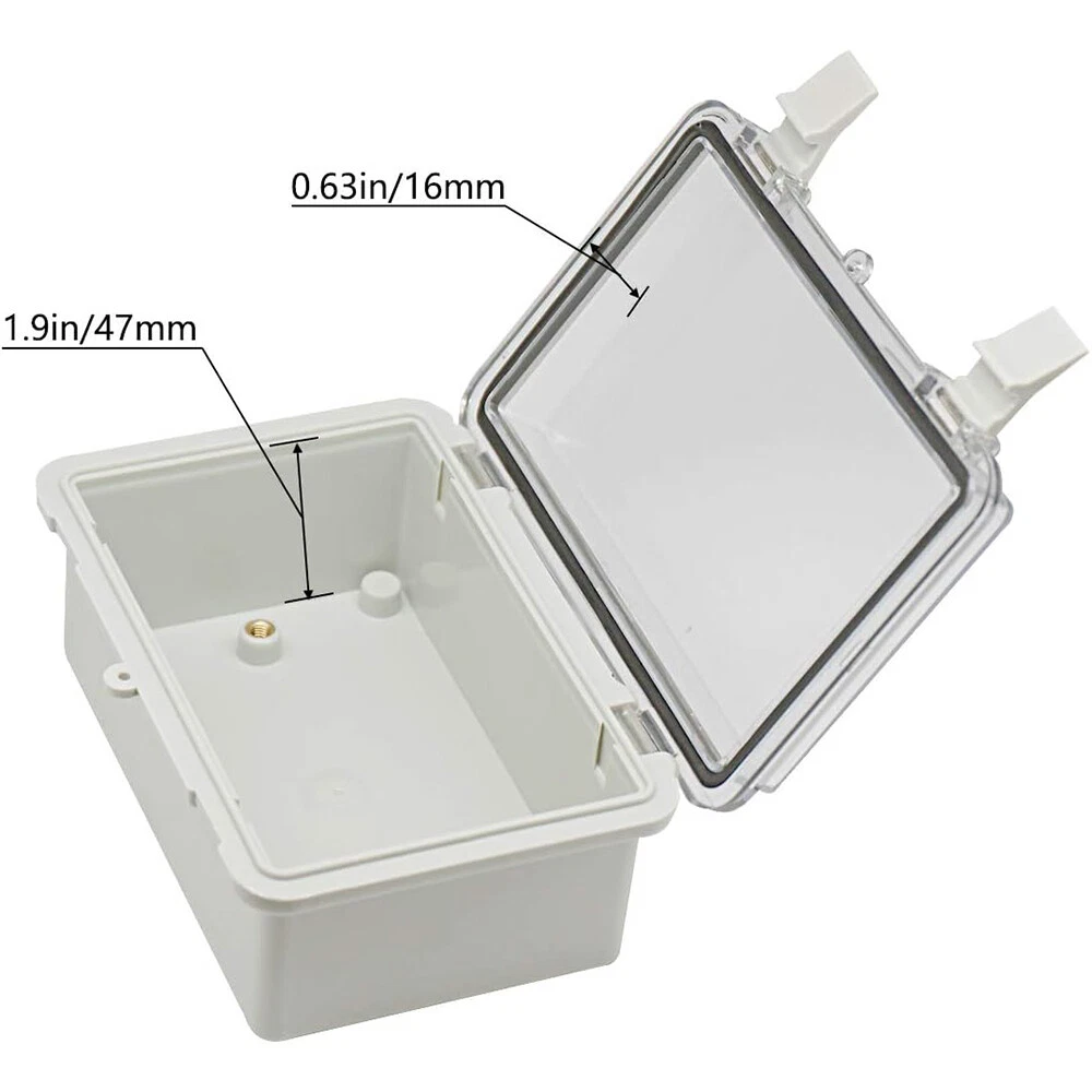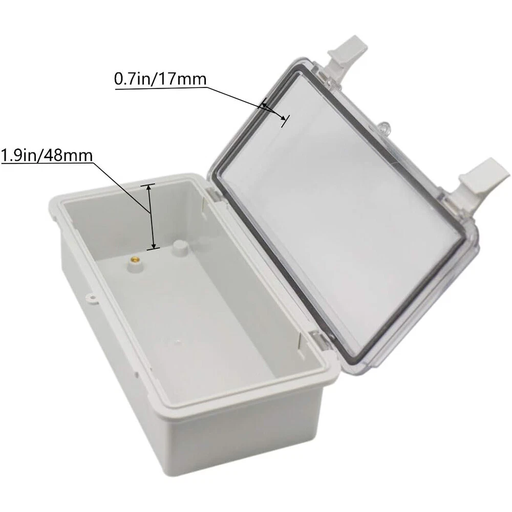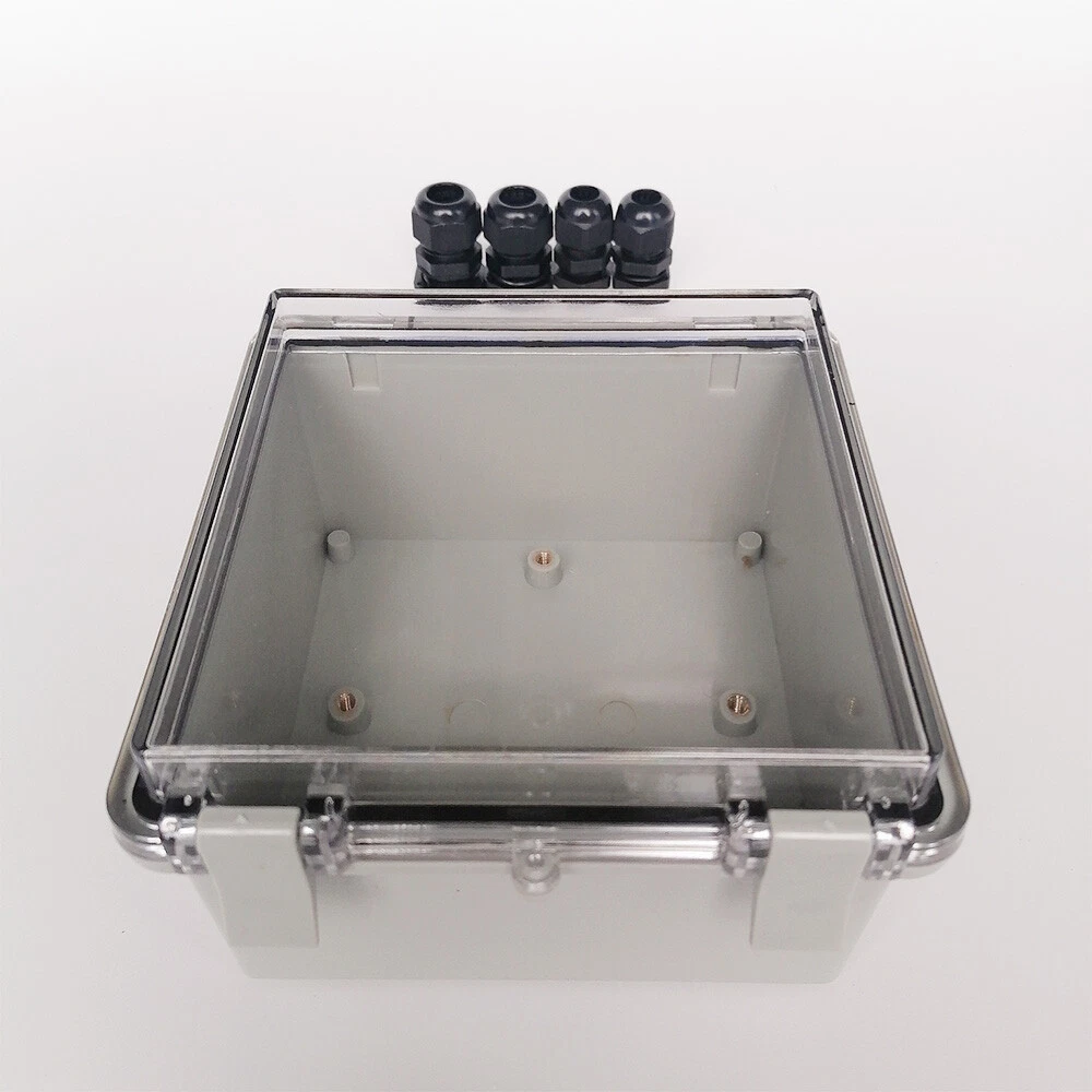 About this item: 【Specifications】Product name: Electrical Box; Waterproof rating : IP65; Qualification:CE、ROHS; Material: ABS, PC; Main Color: Gray,Transparent. 【Industrial Electrical Box】: electrical unit is not only weather resistant but also waterproof and does not allow dust to enter. You can drill holes inside depending upon your project requirement with no cracks and compromise 【Easy to operate】: electrical unit is easy to install, Hinged enclosure makes the opening and closing easier; Come with grey transparent cover,the inner project of junction box can be more visible 【Comprehensive Industrial Enclosure】: The junction box features two or three plastic latches for added security and locking. Moisture proof, sunscreen, anti-corrosion for safety from weather based environmental hazards Package Included: 1x Waterproof Junction Box with Tranparent Shell 2x NPT 3/8 Cable Gland 2x NPT 1/2 Cable Gland