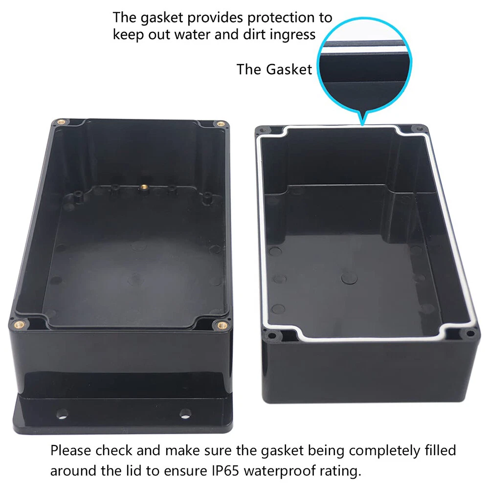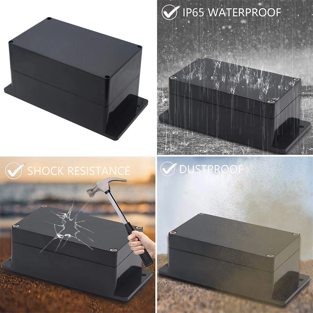 Features: 【Size】Outer size of the project box: 200*120*113mm(7.87"x4.72"x4.44") 【Superior Electrical Safety】 IP67 Rated Indoor & Outdoor Waterproof Junction Box protect against dust, corrosion and splashing water, helps keep all your home electrical equipment Clean & Dry. 【Superior Durable】Made of high-quality ABS material that offers outstanding impact resistant and electrical insulation, Moisture-proof, sunscreen, anti-corrosion, durable for years use. can keep your equipment well-protected in harsh environments. 【Easy for DIY 】 This sturdy junction box can be drilled and shap ed easily without cracking, so it’s also suitable for your various DIY projects. 【Wild Application】Widely used for electronic projects, instrument enclosure, power supply units, temperature controller box, etc. Package Content : 1x Waterproof Junction Box