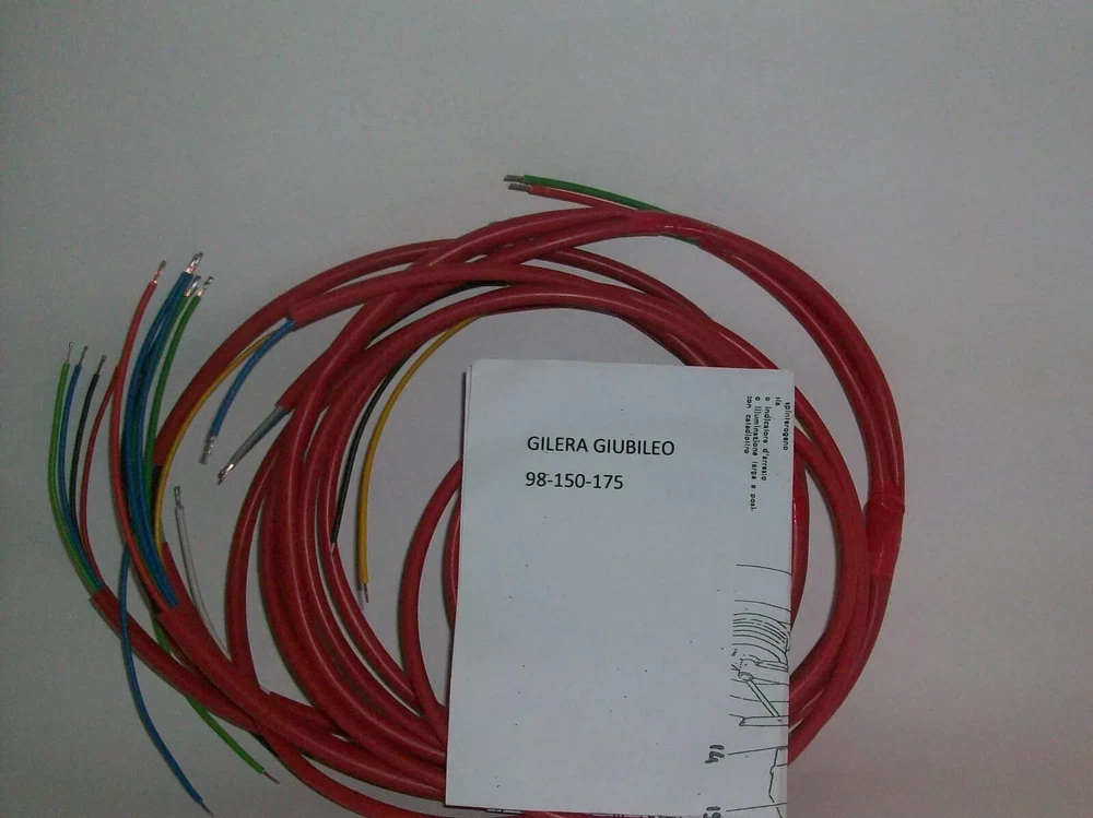 Electrical System Red Gilera Giubileo 98/150/175 CC The description of this item has been automatically translated. If you have any questions, please feel free to contact us. ELECTRICAL SYSTEM Gilera Giubileo 98/150/175 cc with red sheath Please check the scheme before proceeding with the purchase, or you can contact us at 030 2421209 to receive more information ELECTRICAL SYSTEM Gilera Giubileo 98/150/175 cc with red sheath Please check the scheme before proceeding with the purchase, or you can contact us at 030 2421209 to receive more information Quantità 1 Modello compatibile Per Moto Destinazione d'uso Parte di ricambio Colore Rosso Marca GILERA GIUBILEO 98/150/175 CC MPN CAB 283/RO Altro codice identificativo CAB 283/RO Unità di misura Unità Paese di fabbricazione Italia EAN 8056244738294