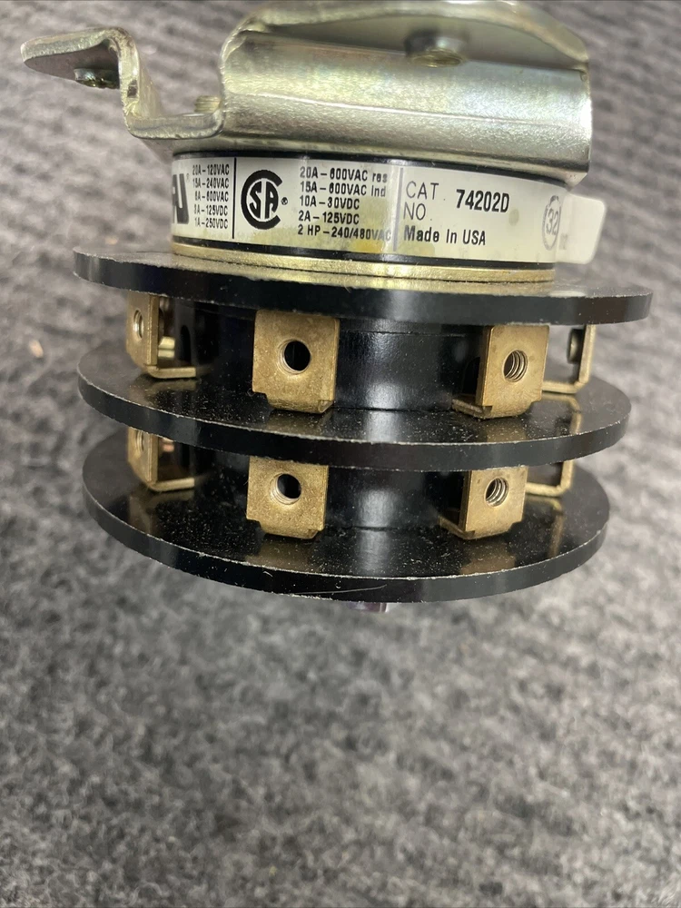 -All Larger Items can get shipped Freight. Simply Send me A message through Ebay for a Quote. -Most Items can have expedited shipping please message me if you need this and Ill advise you if its available. -If you have a UPS account and want an item or items shipped through your account simply send the UPS account number and associated zip code. -Items are available for local Pickup. Welcome to the best deals on the web! Description of item.... -ElectroSwitch 74202D 20A 600V 2HP Rotary Knob Switch 2 Stack Breaker Control Units are Momentary left and right -Check my other auctions for more great deals on many other various circuit breakers and contactors as I can often combine shipping costs! Winning bidder only pays for shipping on the first unit! Each additional unit ships free! Winning bidder only pays for shipping on the first unit! Each additional unit ships free! Please check compatibility and part numbers before ordering! Please click on the pictures for more details. If you need more Photos please message us ! Shipping is non refundable. Please use calculator button for shipping costs. Non-Paying Bidder will be reported, negative feedback will be posted! Multiple purchases are sometimes eligible for shipping discounts.
