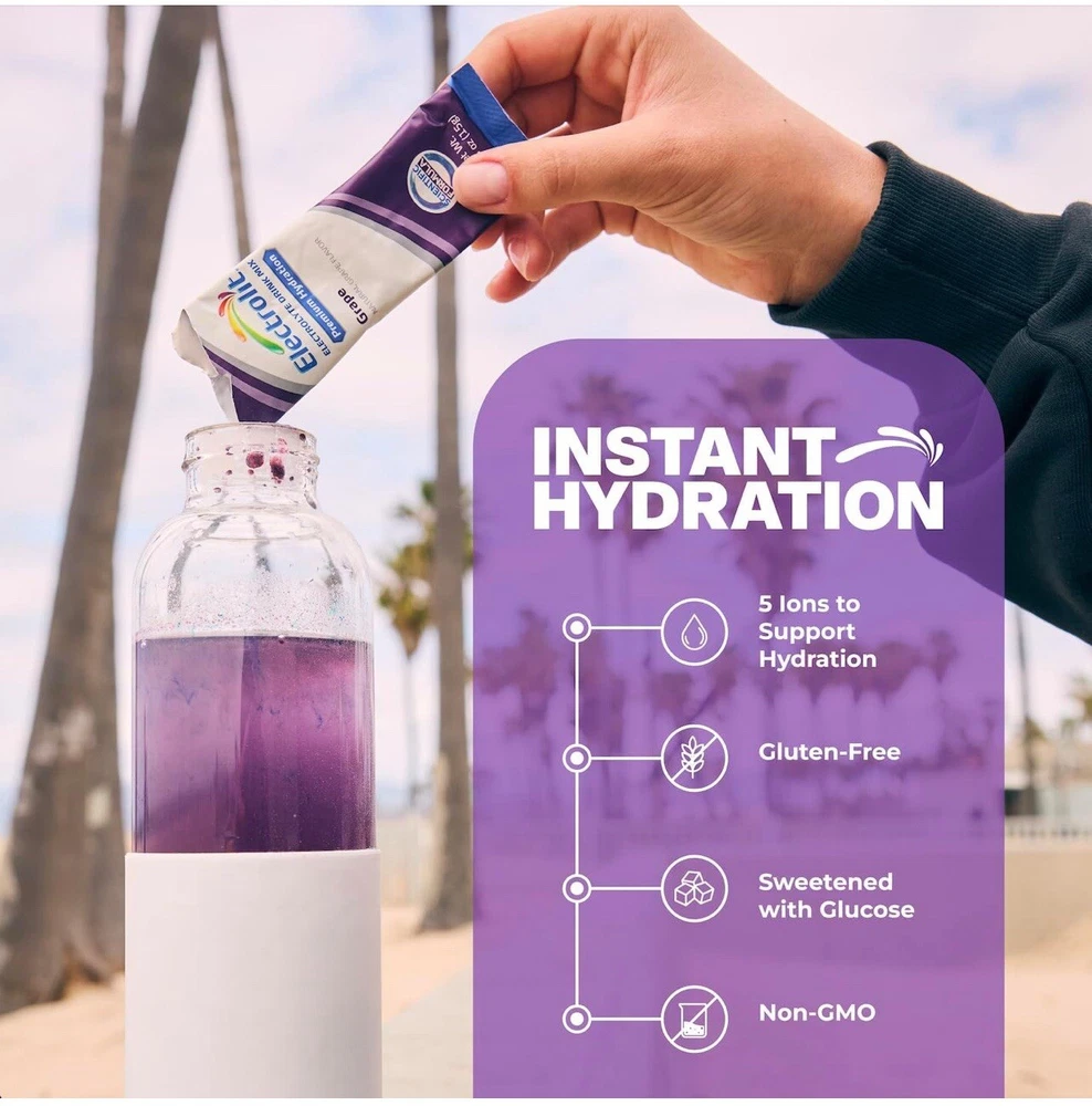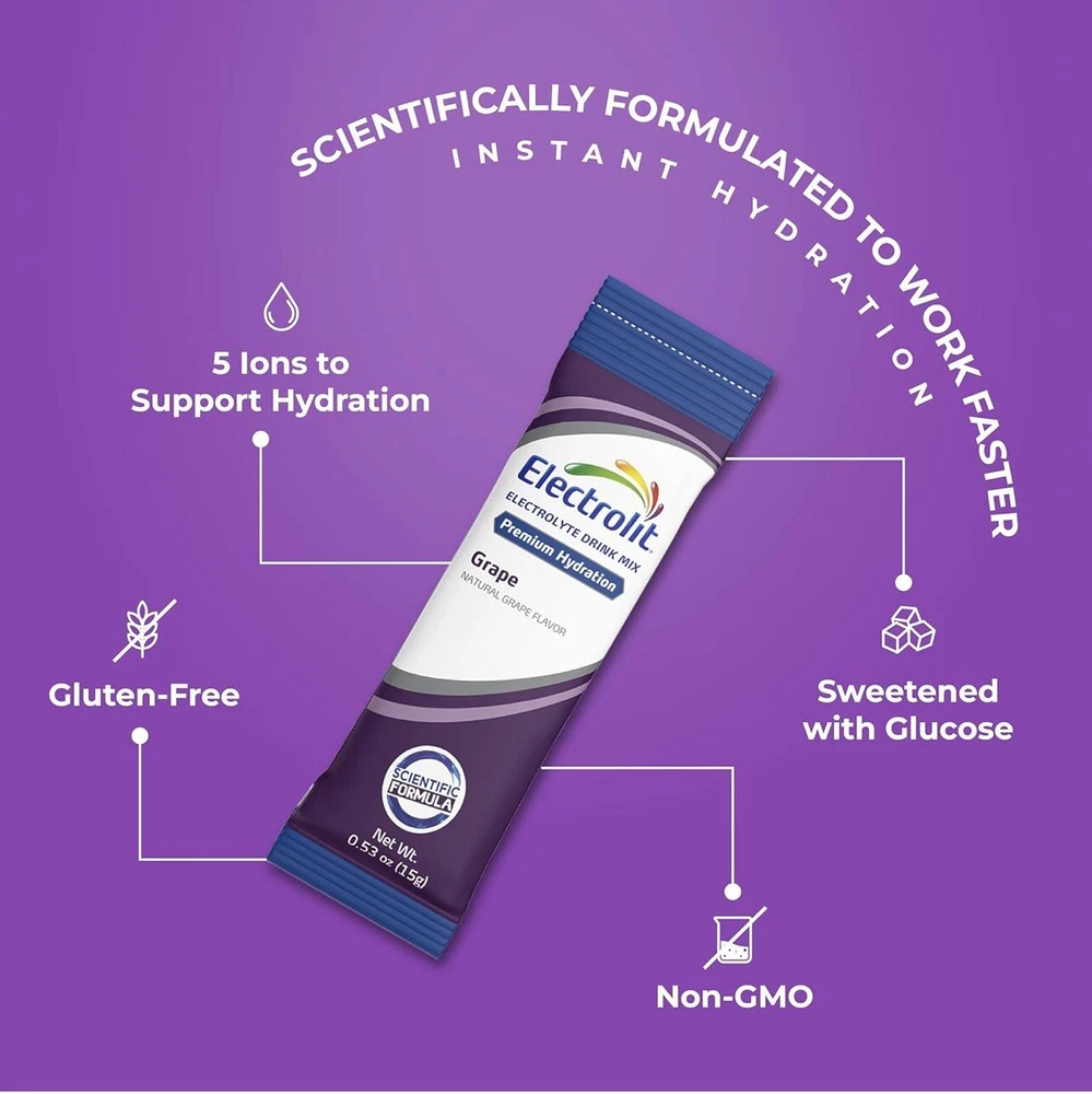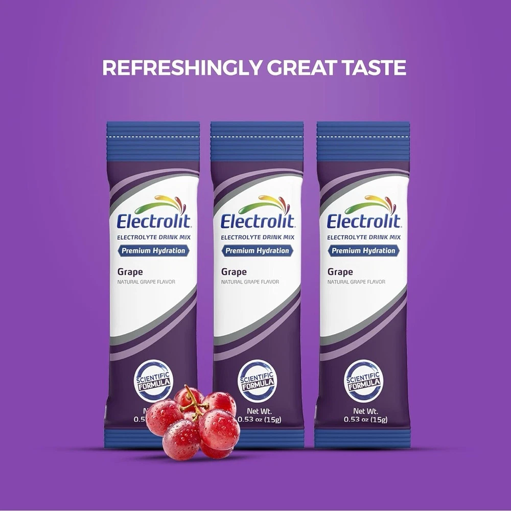 Electrolit Electrolytes Powder Packets, Grape 8 Pack, Powdered Hydration Packets for Dehydration & Rehydration, Post Workout Flavored Hydrating Drink Mix, Gluten Free Daily Water Enhancer Sticks