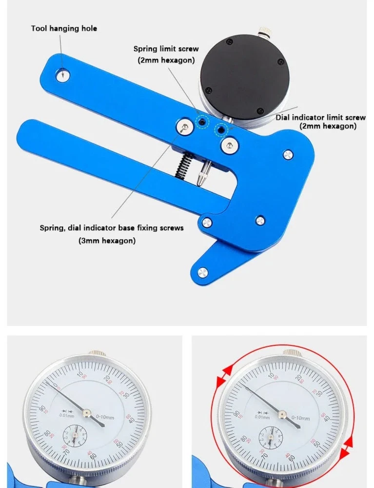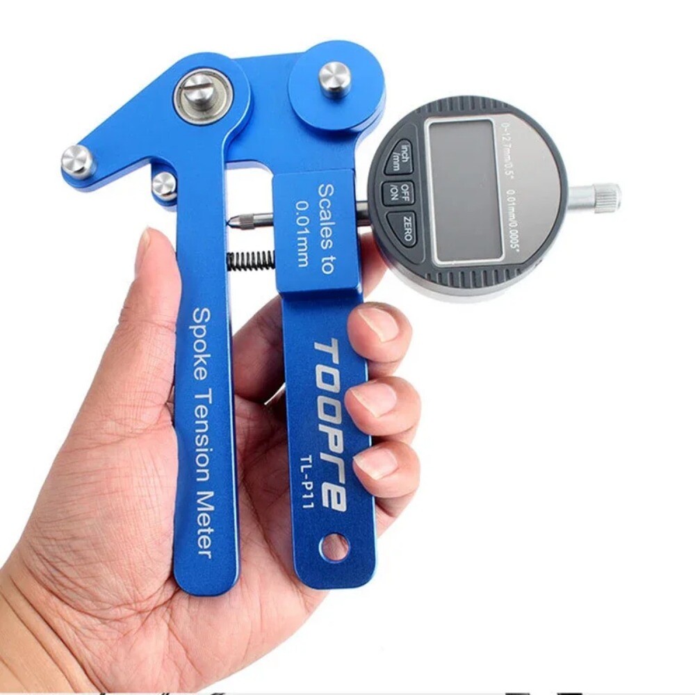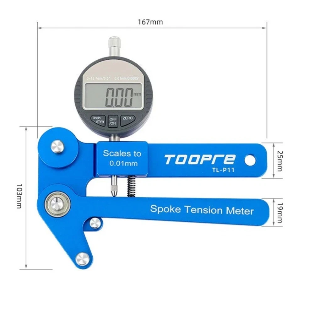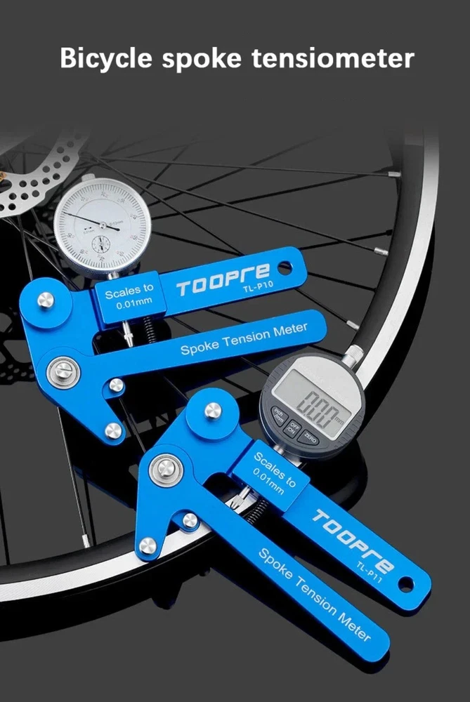 Name:Bicycle Spoke Tensiometer Model:TL-P10(Mechanical Model),TL-P11(Electronic Model) Material:Aluminum Alloy+Stainless Steels Color:Blue Package Size:205X195X60mm Usage:Determines spoke tension for round and flat spokes as well as for various finished wheelsets. Product Name: Spoke Tensiometer Material: Aluminum alloy Model: Mechanical watch TL-P10, electronic watch TL-P11 Weight: 513g/set for mechanical models, 565g/set for electronic models Packaging: Color box (including 1 tension meter, 1 Chinese and English instruction manual, 1 tension comparison table, and 1 spoke wrench)