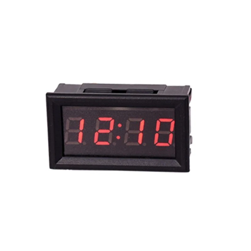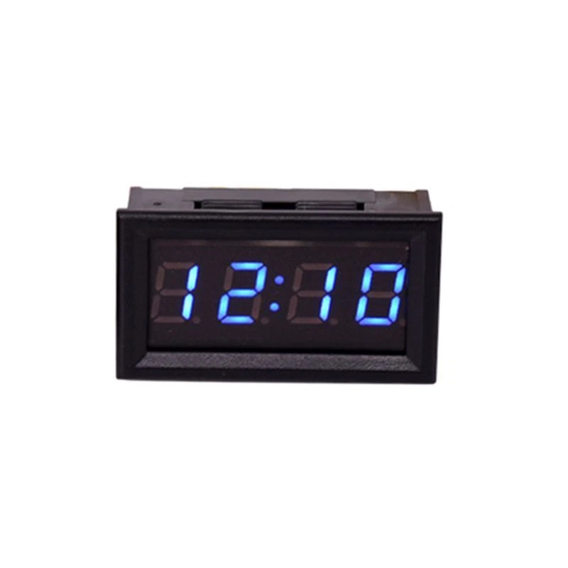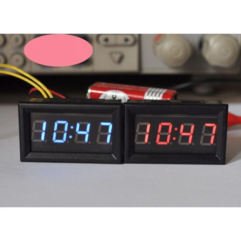 LED DIY Vehicle Electronic Clock KIT Car Motorcycle Timer LED Digital Display Power-off Memory DC4.5-30V Red Green Blue Product Introduction: 1.Power Supply Voltage:DC 4.5-30V 2.Operating Current:<20mA 3.Power Supply Wire Length:>120mm 4.for Time <=2s day 5.Dsiplay Type:0.4" LED;blue 6.Appearance Size:48*29*21mm 7.Installation Tapping:45.5*26.5mm 8.Operating Temperature:-10℃~65℃ 9.Operating Humidity:10-80% 10.Operating Air Pressure:80-106kPa 11.Sunlight Illumination:no direct exposure Features: 1.Adopt One for Key Operation 2.Default Display hour second date timer for time 3.Display 24 Hour for Time System 4.Power Off Memory Function 5.Wide Voltage Power Supply Voltage:DC 4.5-30V;with anti-transposition for protection function;not advise use 24V battery for power supply 6.Battery on the clock is for power off memory;after installation,clock will not display;please connect with power,then it will be on Package included: 1 * Vehicle Electronic Clock Using Method: 1.Power On:according to "up positive" "down negative" direction to put CR1220 button battery in battery socket (note:battery is not included in the package) 2.If there is standby battery and no connection with power,clock will keep moving (connect red positive black negative with power,then it will display 0:00) 3.for Key Shift hour mode-second mode-date mode-timer mode 4.Second Mode: 1)In for time mode,press the for key,it will display second,display format:XX 2)No for key and press for 30s,it will automatically return to hour mode 3)press again move into next mode 5.Date Mode: 1)In for time mode,press the for key for twice it will display date;display format:X month X day 2)After 30s,it will automatically return to hour mode 3)Press again,it will move into next mode 6.Timer Mode: 1)In for time mode,press the for key for three times,it will display timing mode;display format:00: .00 2)If it doesn'for t start to timing and no for key within 30s,press it will return to hour mode 3)In for time mode,long press the for key it will start to timing,the point symbol under colon start to flash;if long press the for key again it will stop timing,the point symbol under colon will for always on,not flash;long press again,it will accumulate starting 4)Timing Clear Way:external connect with red black wire power off,long press the for key for 5s 5)In for time mode,press the for key can switch to hour mode,and can also check date,second 7.for Time Setting: 1)In hour mode or second mode,long press the for key until "hour" digit flash,and it represents coming into for time hour setting,press the for key again to adjust hour for time 2)After finishing hour adjustment,long press the for key until digit flash,and it represents coming into setting;press the for key again to adjust for time 3)After finishing adustment,long press the for key until "second" digit flash,and it represents coming into second setting;press once to clear,long press quit for time setting mode and save for time which has been set 4)During the process of for time setting,if there is no for key operation for 30s,it will quit setting mode automatically 8.Date Setting: 1)In date mode.long press the for key until "year" digit flash,and it represents coming into setting mode;press the for key again to adjust year adjustment 2)Long press the for key until "month" digit flash,and it represents coming into montht setting;press the for key again to month adjustment 3)After finishing month adjustment,long press the for key until "day" digit flash,and it represents coming into day setting;press the for key again to day adjustment;after adjustment,long press the for key it will quit setting mode and save 4)During the process of date setting,if there is no for key operation within 30s,it will automatically quit setting mode.