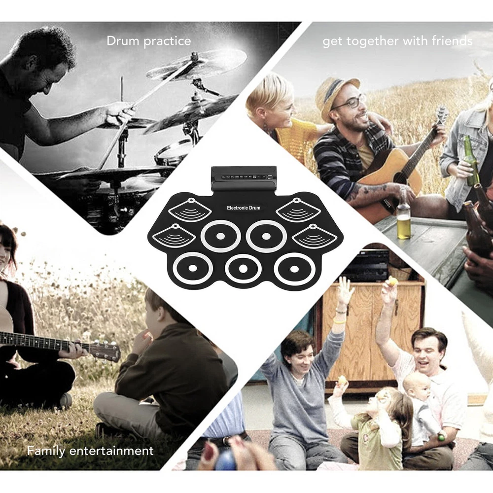 Feature: 1. MULTI FUNCTION: Built in multiple groups of excellent drum sound source, restore the real and the most shocking drum sound, standard drum set, pedal expansion interface, bring you the enjoyment of real drum kit 2. MEET A VARIETY OF SCENES: Contain 9 drums, 2 pedals(cymbals, bottom drums), 12 demonstration pieces, 7 drum sets, 9 accompaniment sets 3. USAGE SCENARIO: With own recording function, one click recording, convenient for you to record your music inspiration anytime and anywhere. Daily percussion practice, friends gathering performance, family gathering to promote family affection, more scenes for you to experience 4. PLAY WHILE LEARNING: Learning drums while playing, computer, mobile phone can be connected to DTX electric drum, the game from easy to difficult to strengthen exercise, zero base for easy entry 5. DOUBLE HORN SOUND: 2X5W medium power excellent horn; Built in speaker 360 degree stereo surround sound, let you immerse in the beautiful music, vocal is enough shock, light shape, fashion, simple, easy to carry Specification: Item Type: Electronic Drum Set Material: Natural silicone, ABS, electronic, wood Color: Black and white Power Supply Mode: Power supply Applicable Voltage: 100-240V Package List: 1 x Drum Roll 2 x Drum Sticks 1 x Audio Cable 1 x Charging Cable 2 x Foot Pedal 1 x Plug 1 x User Manual All the items will be dispatched within one business day by Airmail after the payment is clear. Most times you will receive your order within 10-30 business days after we transfer your package to the delivery company. We cannot guarantee the delivery timeframe if the post office has any unexpected delays due to holiday,weather,customs, or other conditions. Some countries like Russia, Brazil, or some European countries may take up to 50 days or longer for delivery. We appreciate your patience if you haven't received items in 30 days(Russian customers may need more patience by reason of the local delivery system and/or customs). If you are concerned in any way, please feel free to contact us via ebay message instead of leaving negative/neutral feedback or opening a dispute . We will do our best to solve any problem(resend or refund any missingitem). Customs duty is obligation and liability of citizens in yourresponsible for any tax and custom duty incurred. Generally, thedelay or failure delivery is sometimes caused by the policy of different customs. Our listing price includes the value of goods,packaging cost,and export taxes,not including international duties. duties,taxes,and charges are not included in the item price or shipping fee. The duties are buyers' responsibility. Please check with your country's customs office determine what these additional costs will be prior to your purchase. All disputes arising from the duties will be submitted to ebay for solution. Any questions, pls. contact us via ebay message or email us. We will reply your message within 48 hours. If you do not receive our reply within 48 hours, pls. post a message again because sometimes our message system may block some emails. If you are satisfied with our service, pls. kindly leave us a positive feedback and give us the Detailed Seller Rating with all " 5 " in very area. Our aim is to provide Level Customer Service, your recognition will encourage us greatly and serve you better. We strive to keep all our customers satisfy. We will do our up most to exceed your expectations in customer service, communication and dispatching of your orders.