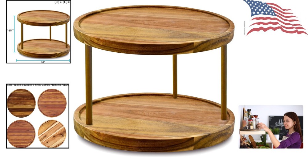 Elegant 10-Inch Acacia Wood Lazy Susan – Two-Tier Kitchen Spice Organizer ‹ › ‹ › ‹ › ‹ › ‹ › ‹ › ‹ › ‹ › ‹ › Elegant 10-Inch Acacia Wood Lazy Susan Two-Tier Kitchen Spice Organizer NOTICE: This Two-Tiered lazy susan is made from natural Acacia Wood, so each piece features its unique pattern; the pictures provided are for reference only. Key Features: 🤏 Keeps your favorite spices and condiments within easy . 🌴 Crafted from solid Acacia Wood, ensuring durability for lifetime use. ☕ Features a 360° smooth rotation for effortless accessibility. 💖 Ready to use out of the box; installation is a breeze! Easy care: Simply hand wash or wipe gently with a damp cloth. Avoid the dishwasher and soaking in water. The Perfect Addition to Your Home: Transform your kitchen and dining area with our exquisite 10-Inch Acacia Wood Lazy Susan. This two-tiered organizer not only showcases your spices and condiments but also enhances your culinary experience. Each piece's unique grain tells a story, bringing warmth and elegance to your space. Imagine entertaining guests, where the effortless rotation of this lazy susan allows everyone at the table to access their favorite flavors with grace. It is more than just a kitchen accessory; it's a statement piece that embodies both functionality and aesthetic charm. Why Choose Our Lazy Susan? Each rotation of this stylish organizer is a celebration of the rich beauty of Acacia wood. Designed for those who appreciate the finer things, this lazy susan elevates your everyday cooking routines while adding a touch of sophistication. Don't wait—bring home this beautiful, functional piece and organize your kitchen in style! Shipping Free & Fast Shipping - We offer free shipping to most of the USA with a normal delivery time of 3-7 days. However, due to the current situation, additional delivery time (up to 3 weeks) may be required for some items. Alternative Carriers - We may use alternative carriers (e.g. USPS, FedEx, UPS, etc.) to ensure your package arrives safely and on time. Due to the use of multiple carriers, we are unable to provide a tracking number automatically. Handling Time - Orders are processed and shipped within 1-2 business days of receiving cleared payment. Shipping Restrictions - Shipping to Alaska, Hawaii, Puerto Rico, Guam, and other US territories may incur shipping charges or delivery restrictions. Please contact us before ordering, or your order can be refunded/cancelled. State Restrictions - There may be restrictions based on your state of purchase. For example, certain items may not be shipped to California due to state regulations. Contact for Tracking Updates - If you require tracking updates or have any concerns about the delivery of your order, please feel free to contact us, and we will be happy to assist you. Return 30-Day Hassle-Free Returns - We want you to be completely satisfied with your purchase. If you are not, you can return the item within 30 days of receiving it for a full refund or exchange. Easy Return Process - To start a return, simply contact us and we will provide you with a prepaid return shipping label and detailed instructions. Restocking Fee - There are no restocking fees for returns. However, the buyer is responsible for return shipping costs if the return is not due to a seller's error. Refund Processing Time - Refunds will be processed within 5 business days of receiving the returned item in its condition. Payment We accept all major credit cards, PayPal, and Apple Pay for your convenience. Your payment information is secure and encrypted to ensure a safe and seamless transaction. Please complete your payment within 3 days of purchase to avoid any delays in shipping. Feedback Your feedback is extremely important to us. We strive to provide the best products and customer service possible. If you are satisfied with your purchase, please take a moment to leave us a positive review. If you have any concerns or issues with your order, please contact us before leaving negative feedback. We are committed to resolving any problems and ensuring your satisfaction. Contact Us If you have any questions or concerns, please feel free to out to our customer support team. You can contact us through the eBay messaging system. We are available Monday to Friday, 9:00 am to 5:00 pm EST, and we will do our best to respond to your inquiry within 24 hours. Buy it now and enjoy a pleasant shopping experience! Unit Quantity: 0.96 kg Material: Acacia Wood Features: Easy to Clean,360° Rotation Mounting: Free Standing Item Height: Lazy Susan Organizer Item Length: Lazy Susan Organizer Item Width: Lazy Susan Organizer Type: Lazy Susan Color: Acacia Two Tier Number of Shelves: 2 Number of Compartments: 2 Size: 10 Number of Tiers: 2 Shape: Round Style: Natural Wood Tone: Natural Acacia Item Diameter: 10 in Item Weight: 0.96 kg