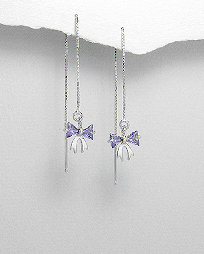 This Listing is for 1 Pair of Solid Sterling Silver Purple CZ Bow Threader Dangle Earrings . 38 mm long x 10mm wide = 1.5 " x 0.39" 1.5 grams Solid 925 Sterling Silver Gift boxed and ready for giving! Please note the photo does not show actual size, please refer to description for size. For other great studs see my store. Your satisfaction is important to me and 100% guaranteed, or your money back. Free shipping in the USA.