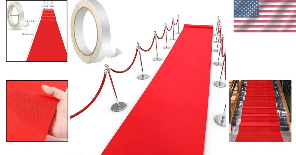 Elegant 4x30 ft Red Runner Rug with Carpet Tape - Perfect for Weddings & Events < class="slides"> ‹ › ‹ › ‹ › ‹ › ‹ › ‹ › ‹ › ‹ › ‹ › Elegant 4x30 ft Red Runner Rug with Carpet Tape Transform your event with this exquisite red carpet rug, designed to add a touch of sophistication to weddings, parties, trade shows, and ceremonies. What's Included: 1 piece of elegant red runner rug made from lightweight non-woven fabric. 1 piece of reliable carpet tape, ensuring the rug remains securely in place. Key Features: Convenient Arrangement: The rug lays flat with ease, and the included double-sided carpet tape provides a secure hold to prevent slips and accidents. Appropriate Size: Measuring 4 x 30 feet with a thickness of 55 gsm, this runner offers a plush feel underfoot, enhancing your guests' experience. Reliable Adhesion: The fiberglass-reinforced carpet tape is durable and ideal for both smooth and rough surfaces, leaving no residue behind. Wide Application: Perfect for weddings, parties, fairs, and ceremonies, as well as holiday decorations, seamlessly enhancing any ambiance. Why Choose Our Red Runner Rug? Looking to elevate the elegance of your space? This red runner rug is your perfect choice! Its generous dimensions make it ideal for covering long hallways or creating a stunning pathway at your next event. Coupled with our high-quality carpet tape, you can trust that your guests will enjoy smooth and safe passage throughout the occasion. Don't miss the opportunity to enhance your decor with an elegant flourish—order your 4x30 ft Red Runner Rug today and let your event shine! Shipping Free & Fast Shipping - We offer free shipping to most of the USA with a normal delivery time of 3-7 days. However, due to the current situation, additional delivery time (up to 3 weeks) may be required for some items. Alternative Carriers - We may use alternative carriers (e.g. USPS, FedEx, UPS, etc.) to ensure your package arrives safely and on time. Due to the use of multiple carriers, we are unable to provide a tracking number automatically. Handling Time - Orders are processed and shipped within 1-2 business days of receiving cleared payment. Shipping Restrictions - Shipping to Alaska, Hawaii, Puerto Rico, Guam, and other US territories may incur shipping charges or delivery restrictions. Please contact us before ordering, or your order can be refunded/cancelled. State Restrictions - There may be restrictions based on your state of purchase. For example, certain items may not be shipped to California due to state regulations. Contact for Tracking Updates - If you require tracking updates or have any concerns about the delivery of your order, please feel free to contact us, and we will be happy to assist you. Return 30-Day Hassle-Free Returns - We want you to be completely satisfied with your purchase. If you are not, you can return the item within 30 days of receiving it for a full refund or exchange. Easy Return Process - To start a return, simply contact us and we will provide you with a prepaid return shipping label and detailed instructions. Restocking Fee - There are no restocking fees for returns. However, the buyer is responsible for return shipping costs if the return is not due to a seller's error. Refund Processing Time - Refunds will be processed within 5 business days of receiving the returned item in its condition. Payment We accept all major credit cards, PayPal, and Apple Pay for your convenience. Your payment information is secure and encrypted to ensure a safe and seamless transaction. Please complete your payment within 3 days of purchase to avoid any delays in shipping. Feedback Your feedback is extremely important to us. We strive to provide the best products and customer service possible. If you are satisfied with your purchase, please take a moment to leave us a positive review. If you have any concerns or issues with your order, please contact us before leaving negative feedback. We are committed to resolving any problems and ensuring your satisfaction. Contact Us If you have any questions or concerns, please feel free to out to our customer support team. You can contact us through the eBay messaging system. We are available Monday to Friday, 9:00 am to 5:00 pm EST, and we will do our best to respond to your inquiry within 24 hours. Buy it now and enjoy a pleasant shopping experience! Unit Quantity: 3 Room: Hallway,Party,Wedding,Outdoor Material: Polyester,Non Woven Fabric Department: Adults Features: Easy to Clean,Non-Slip,Stain Resistant,Lightweight Type: Runner Color: Red Size: 4 x 30 Feet Item Width: 4 ft Pattern: Solid Style: Classic Pile Height: High Pile Shape: Rectangle Weave: Flat Woven Pile Type: High Pile Era: 21st Century (2000-Now) Unit Type: ft