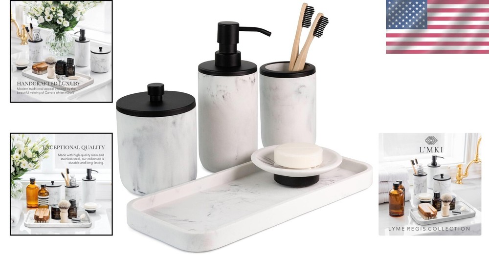 Elegant 5-Piece Bathroom Accessories Gift Set - Luxurious Matte Black and Resin ‹ › ‹ › ‹ › ‹ › ‹ › ‹ › ‹ › ‹ › ‹ › ‹ › Elegant 5-Piece Bathroom Accessories Gift Set Luxurious Matte Black and Resin Handcrafted from Finely Sculpted Resin and Stainless Steel Our bathroom accessory set are inspired by the beautiful veining of Carrara white marble, giving a uniquely modern traditional appeal that transforms your space into a lair of luxury. Features: Luxurious matte black finish with a stunning marble design. This 5-piece set includes: soap dispenser, toothbrush holder, vanity tray, and more. Rust-proof stainless steel for long-lasting durability. Pump of the soap dispenser is sturdy and easy to use. Rubber studs on the base of each piece for enhanced stability and to prevent scratching. Benefits: Elevate and refresh the look of any bathroom or space. Functional and versatile design enhances any decor style, from rustic to modern. Perfectly sized to enhance counter organization while maintaining elegance. A thoughtful gift option that doesn’t compromise style. Why choose our Elegant 5-Piece Bathroom Accessories Gift Set? Transform your space into a sanctuary of style and sophistication with our Elegant 5-Piece Bathroom Accessories Gift Set. Inspired by the timeless beauty of Carrara marble, this luxurious collection seamlessly combines functionality with stunning design, making it a must-have for any home. Each piece is crafted from quality materials to ensure durability while maintaining its eye-catching appearance. Whether you're seeking the perfect housewarming gift or a stylish addition to your own home, look no further. Simply tie a satin ribbon to our elegant gift box and create a memorable present that your loved ones will cherish forever. Order your set today and indulge in the artistry of luxury living! Shipping Free & Fast Shipping - We offer free shipping to most of the USA with a normal delivery time of 3-7 days. However, due to the current situation, additional delivery time (up to 3 weeks) may be required for some items. Alternative Carriers - We may use alternative carriers (e.g. USPS, FedEx, UPS, etc.) to ensure your package arrives safely and on time. Due to the use of multiple carriers, we are unable to provide a tracking number automatically. Handling Time - Orders are processed and shipped within 1-2 business days of receiving cleared payment. Shipping Restrictions - Shipping to Alaska, Hawaii, Puerto Rico, Guam, and other US territories may incur shipping charges or delivery restrictions. Please contact us before ordering, or your order can be refunded/cancelled. State Restrictions - There may be restrictions based on your state of purchase. For example, certain items may not be shipped to California due to state regulations. Contact for Tracking Updates - If you require tracking updates or have any concerns about the delivery of your order, please feel free to contact us, and we will be happy to assist you. Return 30-Day Hassle-Free Returns - We want you to be completely satisfied with your purchase. If you are not, you can return the item within 30 days of receiving it for a full refund or exchange. Easy Return Process - To start a return, simply contact us and we will provide you with a prepaid return shipping label and detailed instructions. Restocking Fee - There are no restocking fees for returns. However, the buyer is responsible for return shipping costs if the return is not due to a seller's error. Refund Processing Time - Refunds will be processed within 5 business days of receiving the returned item in its original condition. Payment We accept all major credit cards, PayPal, and Apple Pay for your convenience. Your payment information is secure and encrypted to ensure a safe and seamless transaction. Please complete your payment within 3 days of purchase to avoid any delays in shipping. Feedback Your feedback is extremely important to us. We strive to provide the best products and customer service possible. If you are satisfied with your purchase, please take a moment to leave us a positive review. If you have any concerns or issues with your order, please contact us before leaving negative feedback. We are committed to resolving any problems and ensuring your satisfaction. Contact Us If you have any questions or concerns, please feel free to reach out to our customer support team. You can contact us through the eBay messaging system. We are available Monday to Friday, 9:00 am to 5:00 pm EST, and we will do our best to respond to your inquiry within 24 hours. Buy it now and enjoy a pleasant shopping experience! UPC: Not Set Capacity: Not Set Product Line: Not Set Frame Color: Not Set Frame Finish: Not Set Frame Material: Not Set Glass Type: Not Set Installation: Not Set Item Depth: 5.55 inches Item Diameter: Not Set Item Height: Not Set Item Length: Not Set Item Weight: 5.79 pounds Item Width: Not Set Number in Pack: 5 Number of Compartments: Not Set Number of Drawers: Not Set Number of Items in Set: 5 Number of Shelves: Not Set Size: 13.3 x 9.8 x 5.55 inches Softness: Not Set Unit Quantity: Not Set Material: Stainless Steel,Resin Room: Bathroom,Bedroom,Kitchen,Apartment,Office Set Includes: Soap Dispenser,Toothbrush Holder Department: Adults Theme: Not Set Features: Non-Slip,Rust-Proof,Sturdy Pump Care Instructions: Not Set Color: Black Brand: Unbranded Type: Accessory Set Style: Modern Finish: Matte Pattern: Not Set Character Family: Not Set Shape: Not Set Country/Region of Manufacture: Not Set Mounting: Not Set Model: Not Set Character: Not Set MPN: Not Set Unit Type: lb Assembly Required: Not Set Personalized: Not Set Original/Reproduction: Not Set