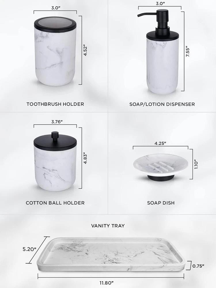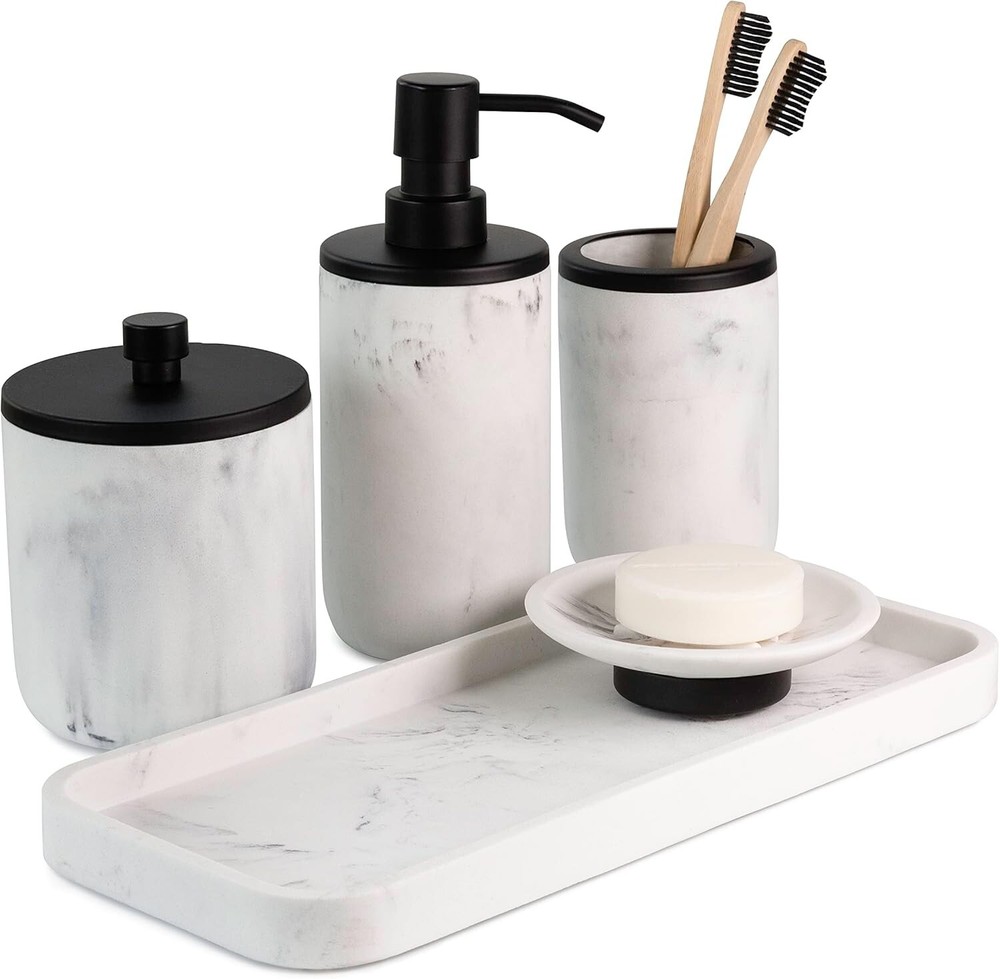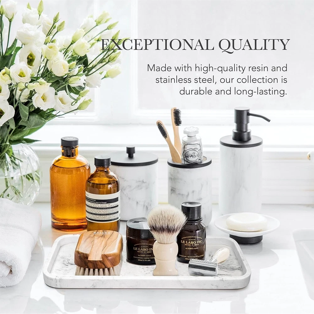 This bathroom set instantly upgraded my space—the matte black and marble resin combo looks so chic and high-end! The pieces feel sturdy, well-made, and add a touch of luxury. Perfect as a gift or to treat yourself. Love how everything matches seamlessly!