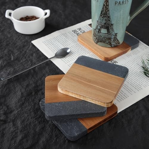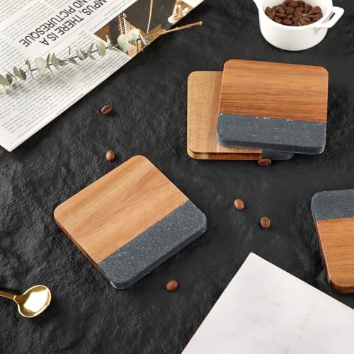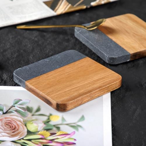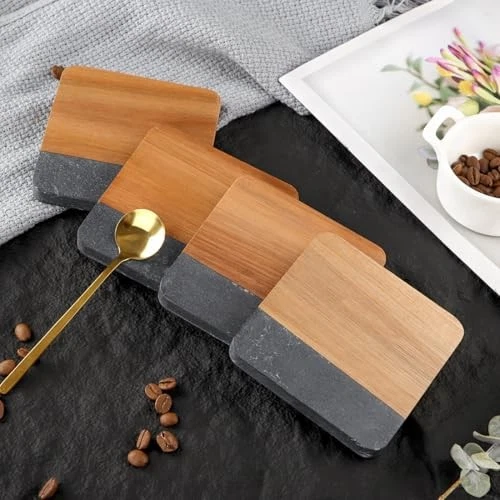 $ 16.04Acacia Wood and Marble Drink Coasters Set of 4 Square Non-Slip Stone Wooden