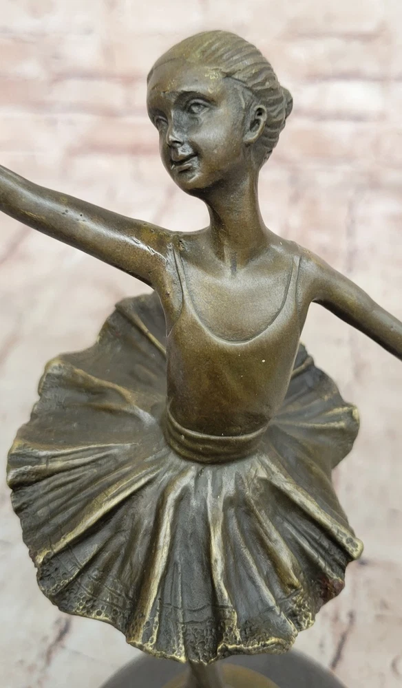 Condition : This sculpture is in perfect condition.nbsp; nbsp; Bronze Dimensions with Marble Base: Height 10"nbsp; nbsp;X Width 7"nbsp;nbsp; Marble Dimensions: Diameter 4.5"nbsp;nbsp; Height without base:9"nbsp; nbsp; Weight:4LBSnbsp; Inventory: 47YRD12222874 Daydreamers, especially those enchanted by mystical realms, will be captivated by this whimsical sculpture of a daydreaming fairy. In her wanderings through the enchanted forest, her eyes sparkle with wonder as she absorbs the magical essence that surrounds her. Her youthful innocence is evident in her joyful giggles, echoing the soft melodies of life and fantasy intertwining in her world. With delicate wings arching gracefully behind her and dressed in a captivating red patina gown, this fairy embodies the essence of imagination and innocence. Crafted with meticulous attention to detail, this enchanting sculpture is a testament to the artistry of the "Lost Wax Method." Made entirely of bronze and lovingly handmade, it stands as a testament to the beauty that can be achieved through skilled craftsmanship. Mounted on a sturdy marble base, it not only showcases the fairy's delicate form but also adds a touch of elegance to any space it graces. Signed by the renowned artist Milo, this piece is not just a decoration but a symbol of artistry and imagination. Ideal for adorning the room of a young dreamer, this fairy sculpture brings a touch of magic and fantasy into any setting. Its presence is not just decorative but also serves as a reminder of the power of dreams and the beauty found in moments of innocent joy. Whether placed on a shelf, desk, or bedside table, this sculpture is sure to spark the imagination and bring a smile to anyone who beholds its enchanting charm. BALLERINA BRONZE STATUE FIGURE FIGURINE SCULPTURE BALLET DANCER HOT CAST FIGURE Video will open in a new window Using the eBay App? Paste link into a browser window: [isdntekvideo]