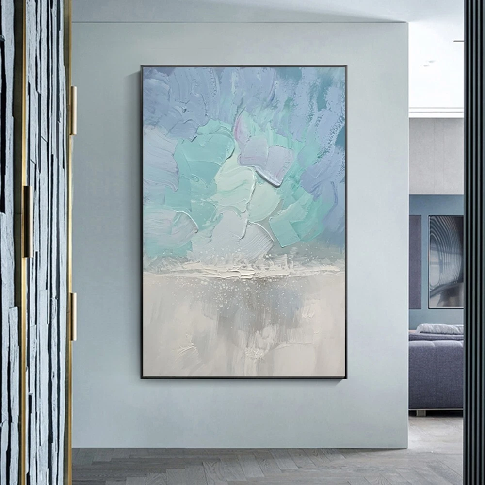 Elegant Blue Oil Painting Abstract Handmade Canvas Decorative Mural Unframe
