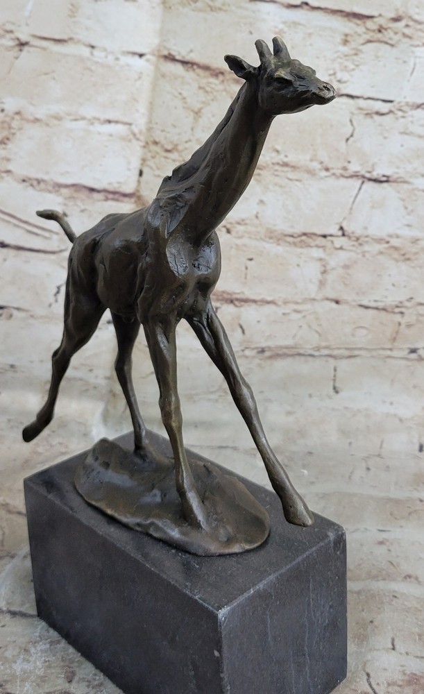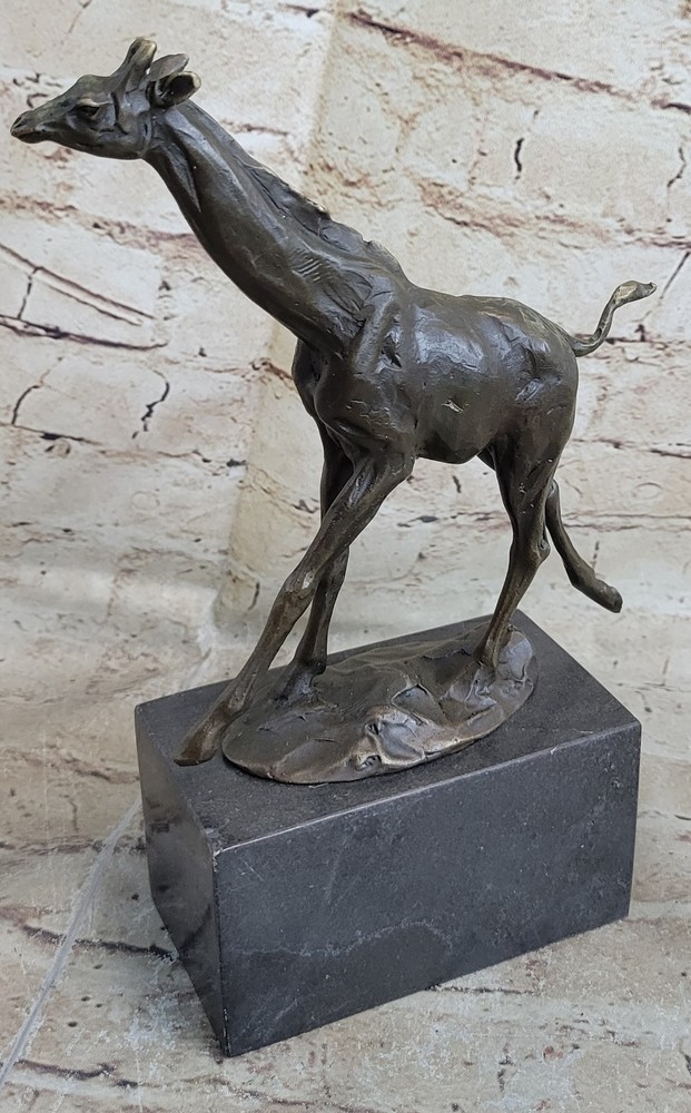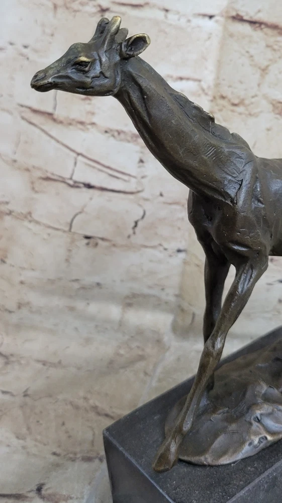 Elegant Bronze Giraffe Sculpture Art Deco Marble Base Figurine Statue Sale Sale