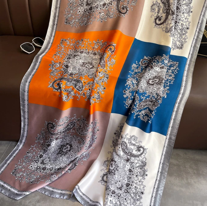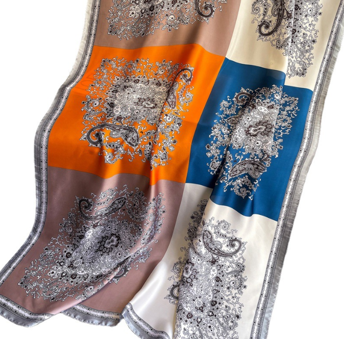 Elegant Chiffon Silk Long Scarf Shawl Wrap in Color Block Design 70x35 Inches