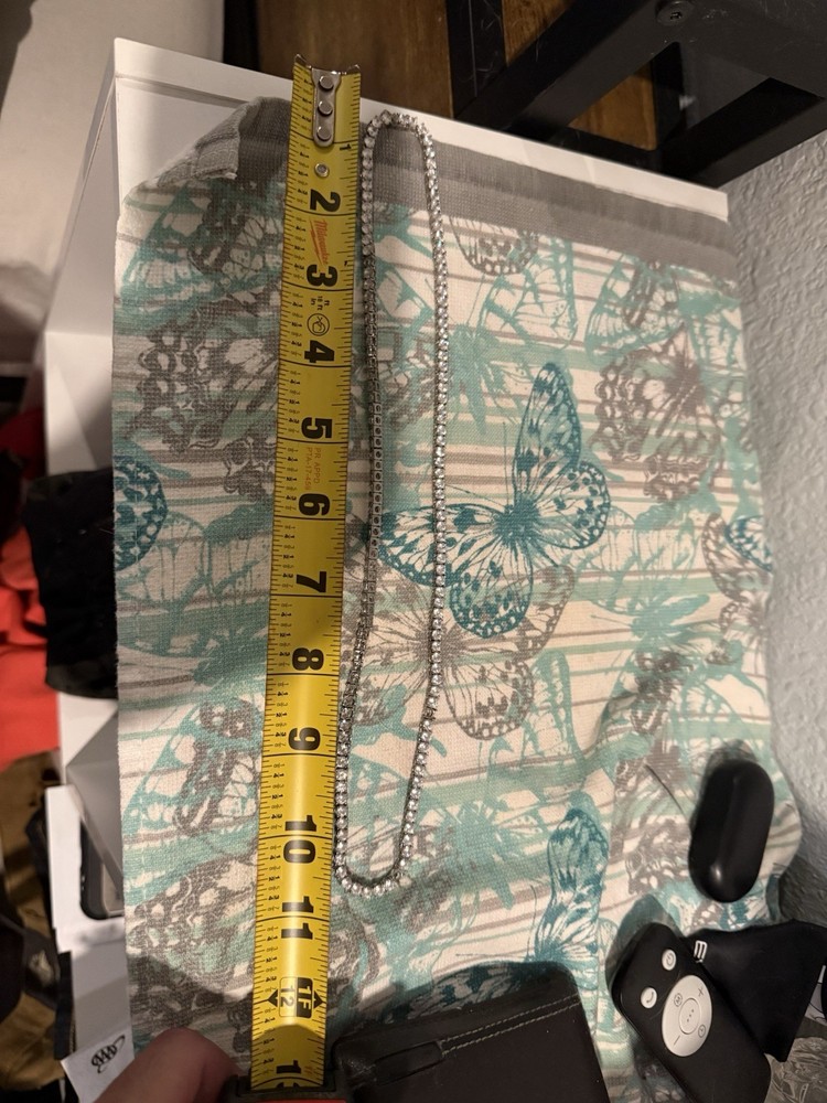 Not sure if it’s Cub Zirconia or Moissanite or some other type of stone. Tennis chain. About 12 inches or 24” unchained. Missing 3 stones. Short me an offer.