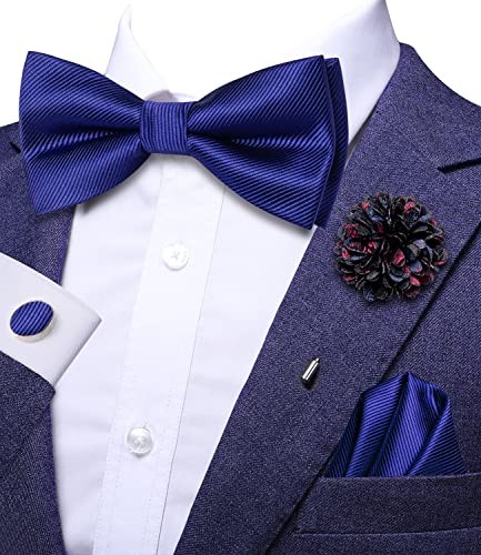$ 12.03Men's Pre-Tied Bow Tie Set with Pocket Square & Lapel Pin in Navy Blue Burgundy Floral