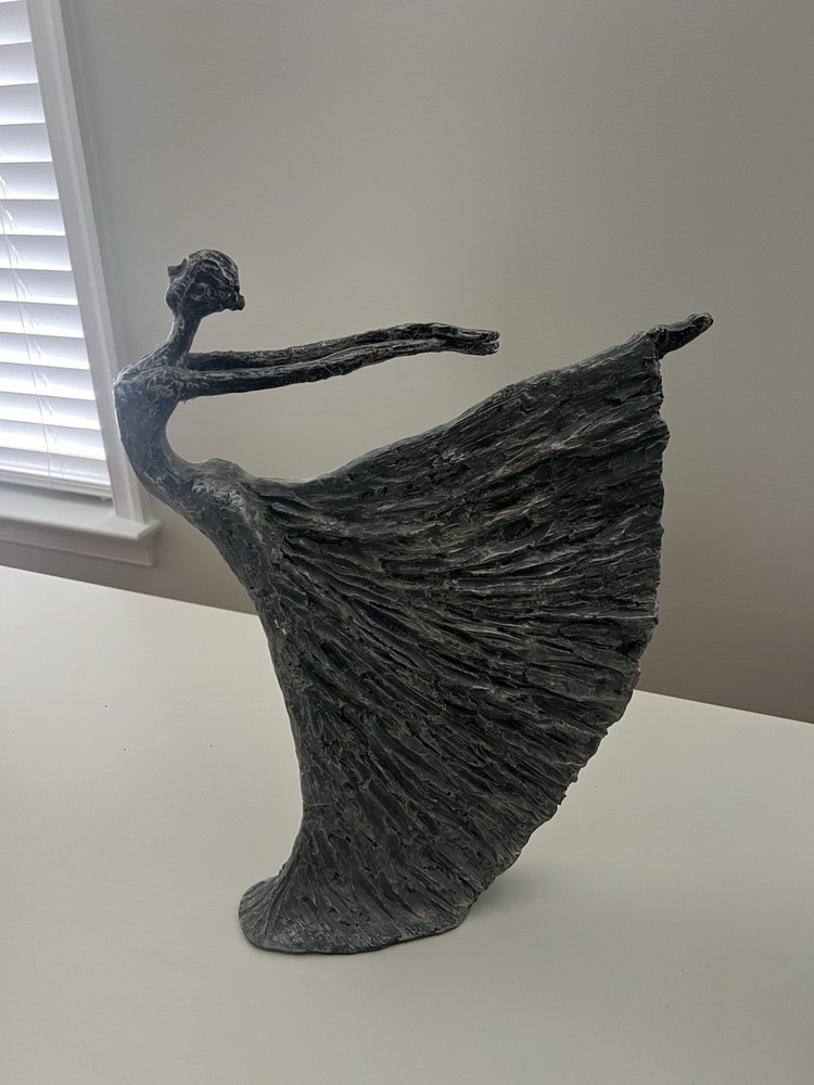 This decorative ballerina sculpture is a medium-sized art deco statue that stands at 16 inches tall and 12 inches wide.The sculpture depicts a graceful ballerina, adding a touch of elegance and charm to any room it is displayed in. Perfect for those who appreciate fine art and artistic flair in their decor. Used as decor but no damages.