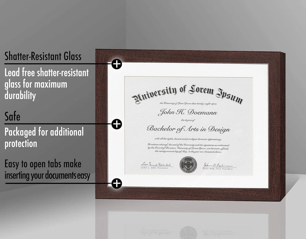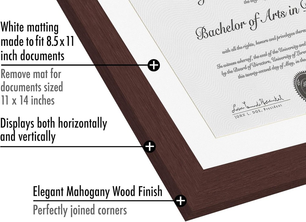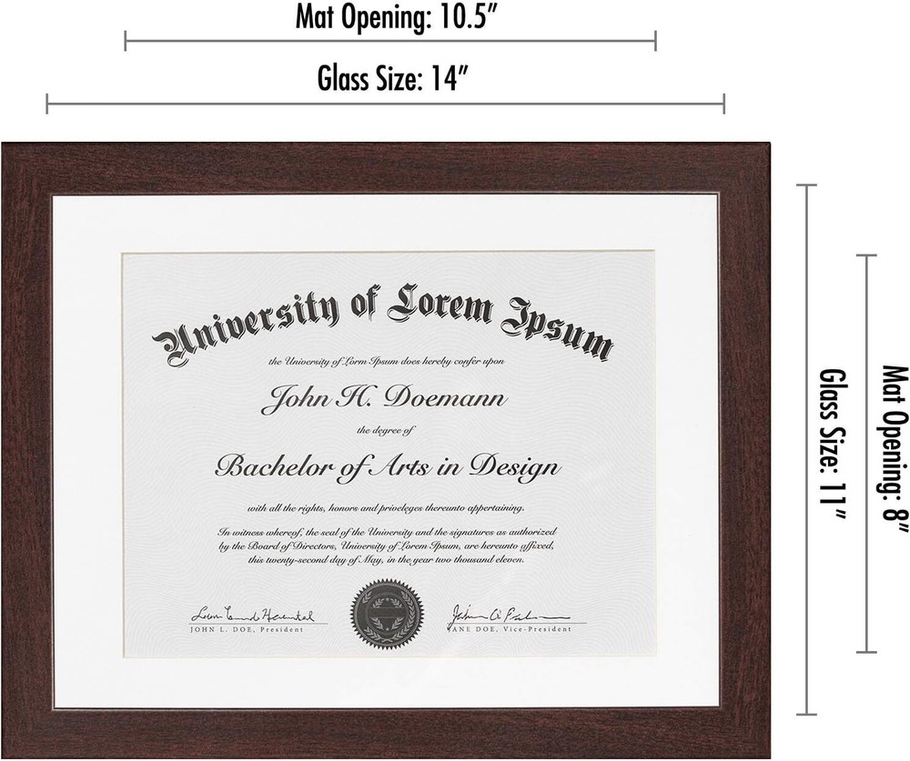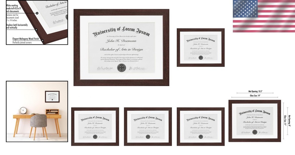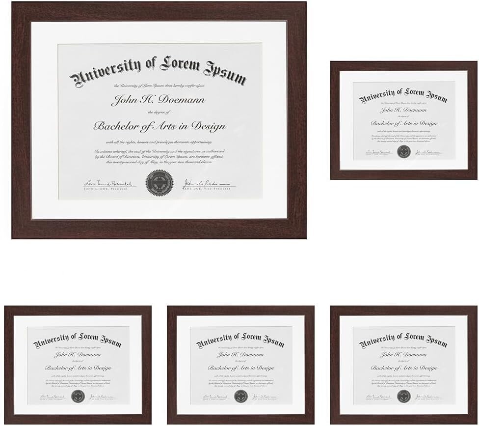 Sophisticated Diploma Frame with Acid-Free Mat - Perfect for Certificates, 5 pcs ‹ › ‹ › ‹ › ‹ › ‹ › ‹ › ‹ › ‹ › ‹ › Sophisticated Diploma Frame with Acid-Free Mat Perfect for Certificates - Pack of 5 Showcase Your Achievements Display Your Diploma: These elegant 11x14 diploma frames are tailor-made for showcasing your certificates and important documents, featuring a refined white beveled mat designed to perfectly display 8.5x11 certificates. A splendid gift for graduates! Mat Specifications: The total outer frame measures 11x14 inches with a precise 8.5x11 inch mat, a standard size for diplomas and certificates. With a molding width of 0.87 inches, the actual display area comfortably fits 8x11 inches. Multi-Purpose Use: Ideal for high school diplomas, marriage certificates, master’s degrees, or college diplomas. The US letter size mat is a versatile choice for various document types. Durable Craftsmanship: Constructed with durable engineered wood moldings and a shatter-resistant glass cover, ensuring longevity for your treasured documents. A sturdy backboard keeps everything securely in place. Protective Packaging: Crafted with you in mind, our exclusive packaging safeguards your frames during transit. Rest assured, your order will arrive in perfect condition; click and add to your cart today! Why You Will Love This Frame: Designed for certificates and documents measuring 11x14 inches without mat or 8.5x11 inches with the mat. The mat's opening is 8x10.5 inches—designed for ideal placement and stability. Quality and durability are at the forefront of our design; the 2mm glass front protects your documents, while the acid-free white mat ensures wear and tear is kept at bay. Hardware for easy wall mounting is included. This stylish frame is environmentally friendly and adds a touch of sophistication to your display, making it perfect for your home or office. Transform your accomplishments into a work of art. Order now and experience the joy of adorning your wall with something representative of your hard work and dedication. Don't let your hard-earned certificates collect dust in a drawer! Click the button at the top of the page to secure your very own elegant diploma frame and join thousands of delighted customers who've chosen to celebrate their success with style. Shipping Free & Fast Shipping - We offer free shipping to most of the USA with a normal delivery time of 3-10 businessdays. However, due to various situations, additional delivery time (up to 3 weeks) may be required for some items. Alternative Carriers - We may use alternative carriers (e.g. USPS, FedEx, UPS, etc.) to ensure your package arrives safely and on time. Due to the use of multiple carriers, we are unable to provide a tracking number automatically. Handling Time - Orders are processed and shipped within 1-5 business days of receiving cleared payment. Shipping Restrictions - Shipping to Alaska, Hawaii, Puerto Rico, Guam, and other US territories may incur shipping charges or delivery restrictions. Please contact us before ordering, or your order can be refunded/cancelled. State Restrictions - There may be restrictions based on your state of purchase. For example, certain items may not be shipped to California due to state regulations. Contact for Tracking Updates - If you require tracking updates or have any concerns about the delivery of your order, please feel free to contact us, and we will be happy to assist you. Return Please see our ebay return policy. We do not accept return on most products. This is to avoid customers mis-using ebay returns. All sales are final. Please be sure to check the return policy listed at the top of the listing. In rare cases, we may accept returns, if the buyer pays both ways shipping and 20% restocking fee. If you are un-sure of return policy of a particular item, please ask before buying. Payment We accept all major credit cards, PayPal, and Apple Pay for your convenience. Your payment information is secure and encrypted to ensure a safe and seamless transaction. Please complete your payment within 3 days of purchase to avoid any delays in shipping. Feedback Your feedback is extremely important to us. We strive to provide the best products and customer service possible. If you are satisfied with your purchase, please take a moment to leave us a positive review. If you have any concerns or issues with your order, please contact us before leaving negative feedback. We are committed to resolving any problems and ensuring your satisfaction. Contact Us If you have any questions or concerns, please feel free to reach out to our customer support team. You can contact us through the eBay messaging system. We are available Monday to Friday, 9:00 am to 5:00 pm EST, and we will do our best to respond to your inquiry within 24 hours. Buy it now and enjoy a pleasant shopping experience! UPC: Not Set Item Height (Interior): Not Set Item Width (Interior): Not Set Item Weight: 10 lb Unit Quantity: 5.0 count Features: Matted,Shatter-Resistant Glass,Durable Engineered Wood,Exclusive Packaging Brand: Unbranded Item Height: Diploma Frame Item Length: Diploma Frame Item Width: Diploma Frame Type: Document Frame Material: Engineered Wood Suitable for Photo Size: 8.5 x 11 in Color: Mahogany Photo Capacity: 1 Theme: Diplomas & Certificates Shape: Rectangle Style: Modern Occasion: Graduation Pattern: Solid Mounting: Wall Mounted Character Family: Not Set Character: Not Set Size: 11 x 14 in MPN: Not Set Country/Region of Manufacture: Not Set Year Manufactured: Not Set Glass Type: Shatter-Resistant Glass Department: Adults Finish: Matte Box Frame Depth: Less Than 0.25 in Photo Insertion Type: Rear-Loading Orientation: Horizontal Power Source: Manual Wind-Up Era: 21st Century (2000-Now) Time Period Manufactured: Not Set Manufacturer Warranty: Not Set Model: Not Set Unit Type: lb Personalize: Not Set
