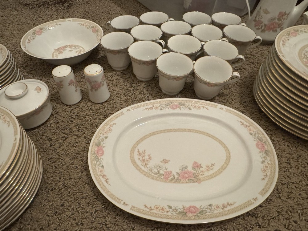 This stunning Fairfield Symphony China Set is absolutely perfect for hosting! The elegant design and generous 60-piece collection—including teapot, plates, bowls, and serving dishes—make it ideal for dinner parties or family gatherings. The pristine condition (never used!) ensures it looks brand new, and the variety of pieces covers every dining need. A fantastic value for such a beautiful, complete set!