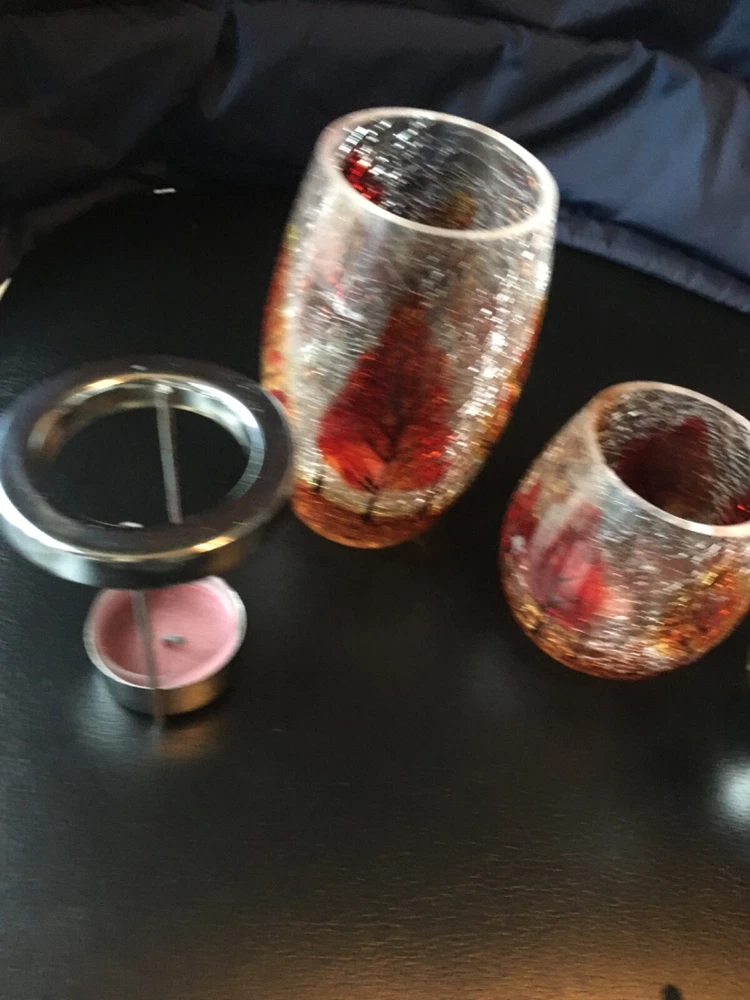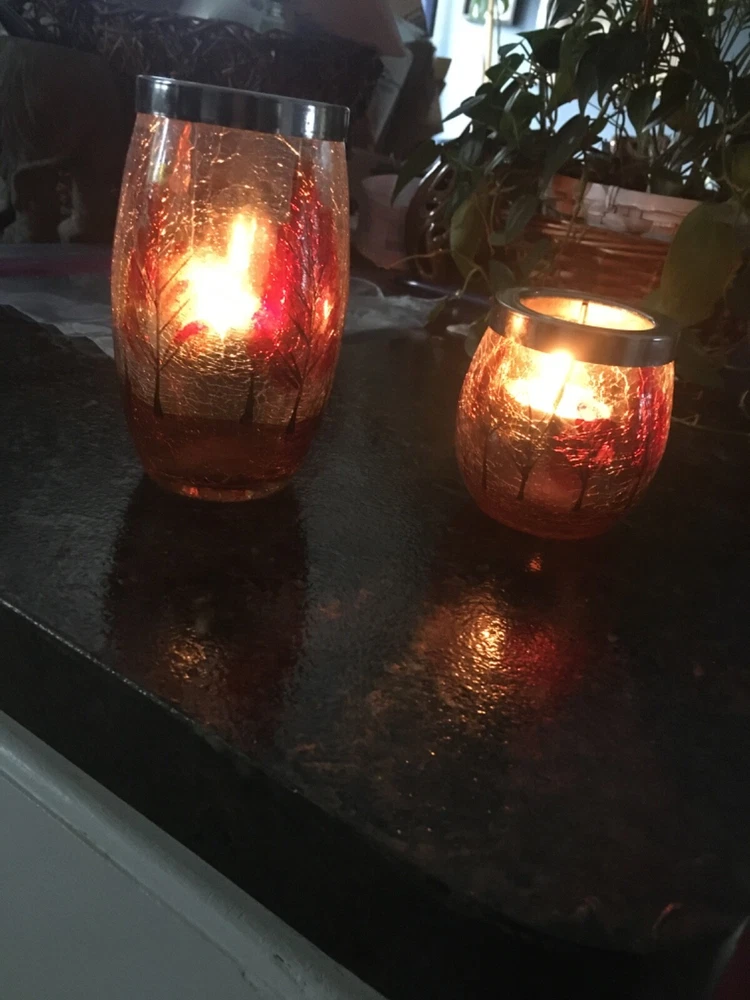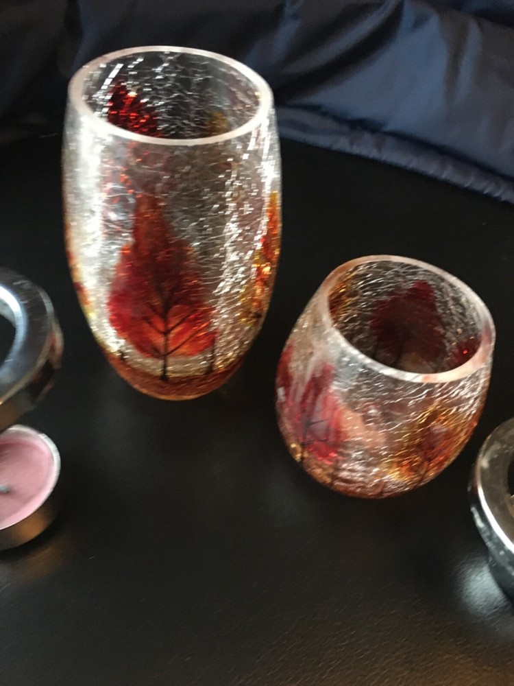 Yea light holders 5 inch and 3 inch candle holders table decorations shattered glass look fall tress